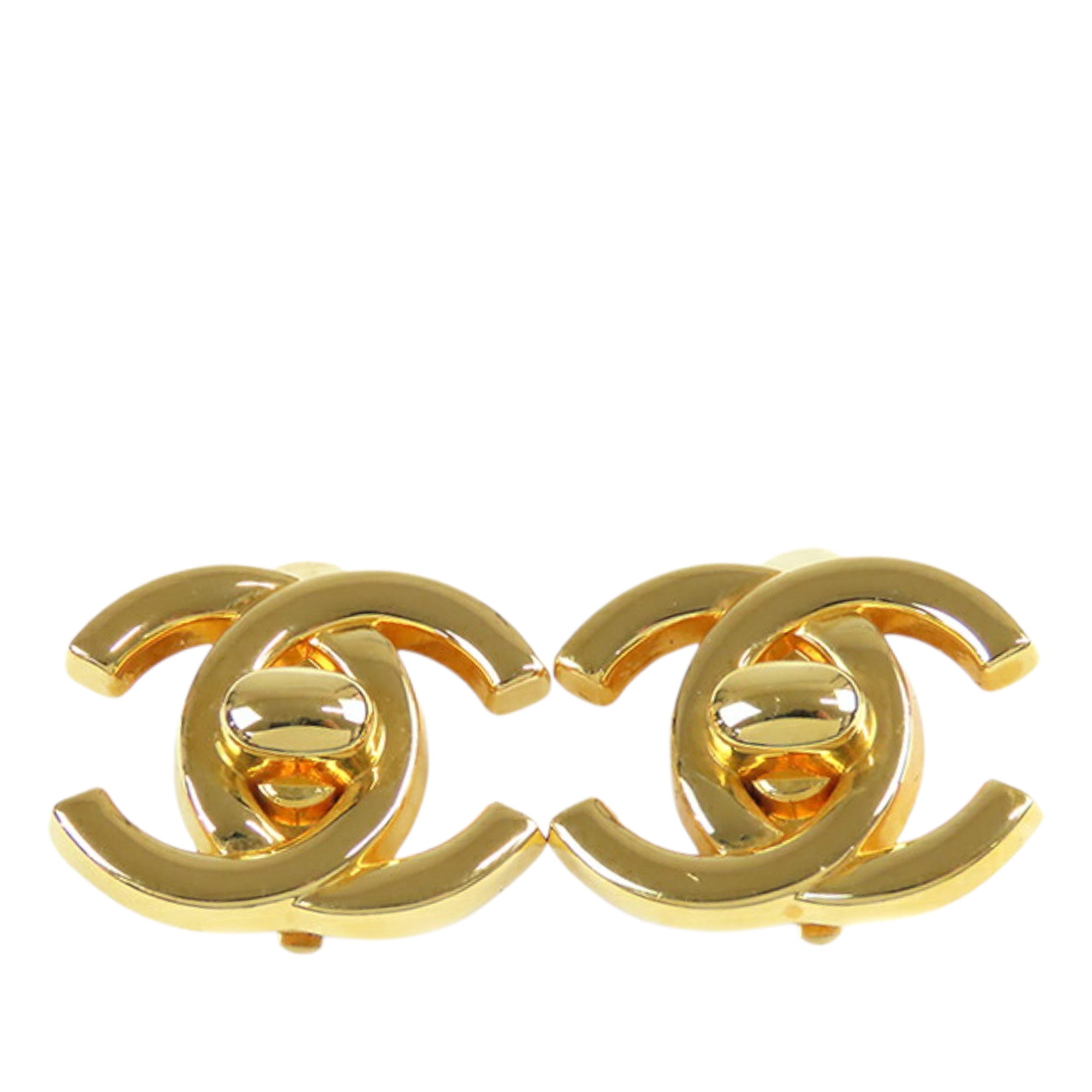 Chanel Gold Plated CC Turn Lock Clip on Earrings