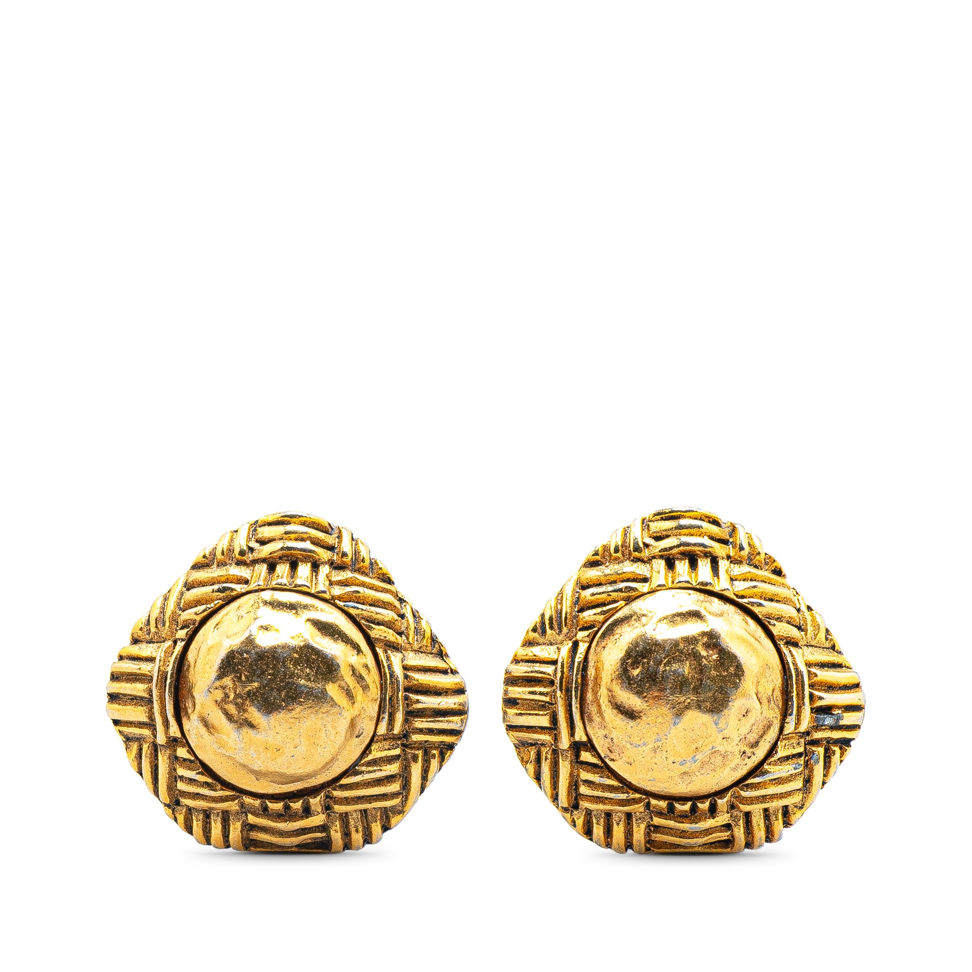 These earrings feature a gold-plated metal body and clip-on closures. Retail Price: 350.00