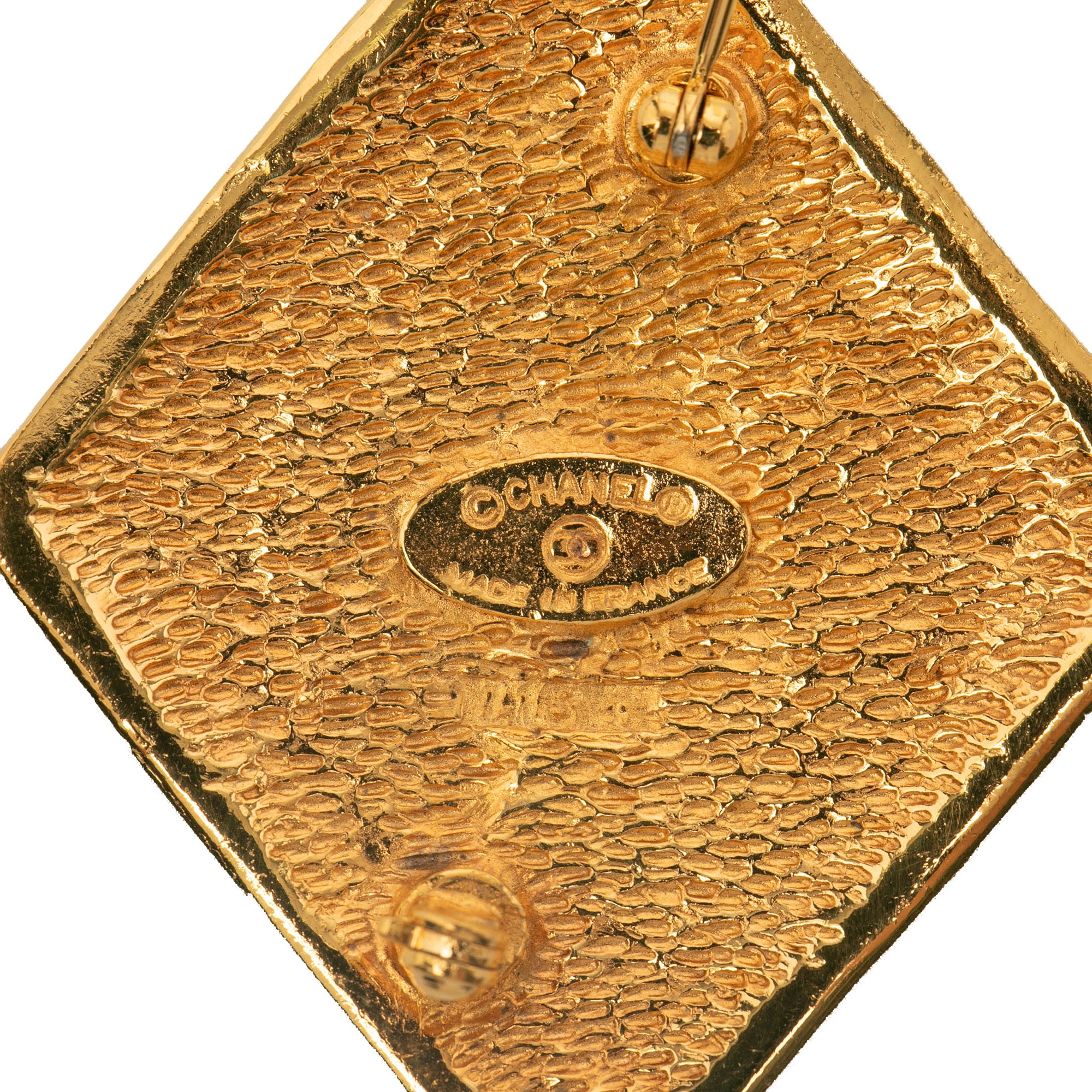 This brooch features a gold-plated metal body with diamond CC logo and pin back closure. Retail Price: 874.00