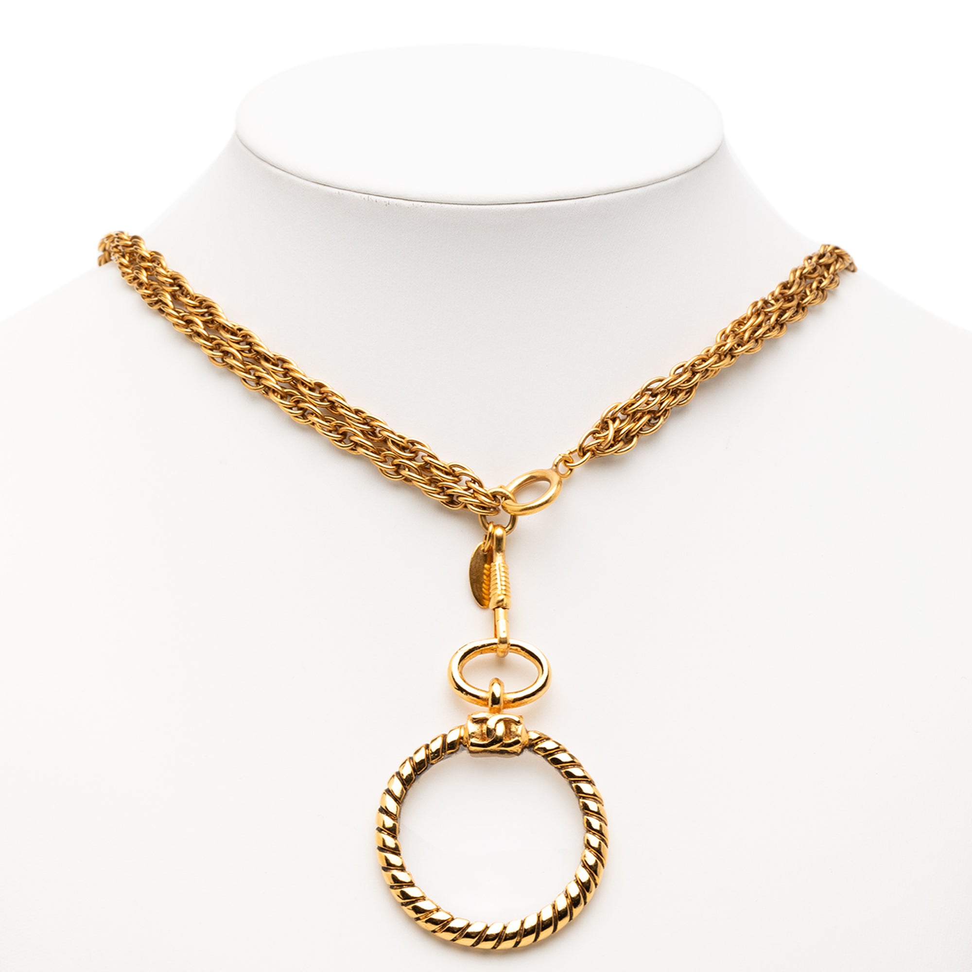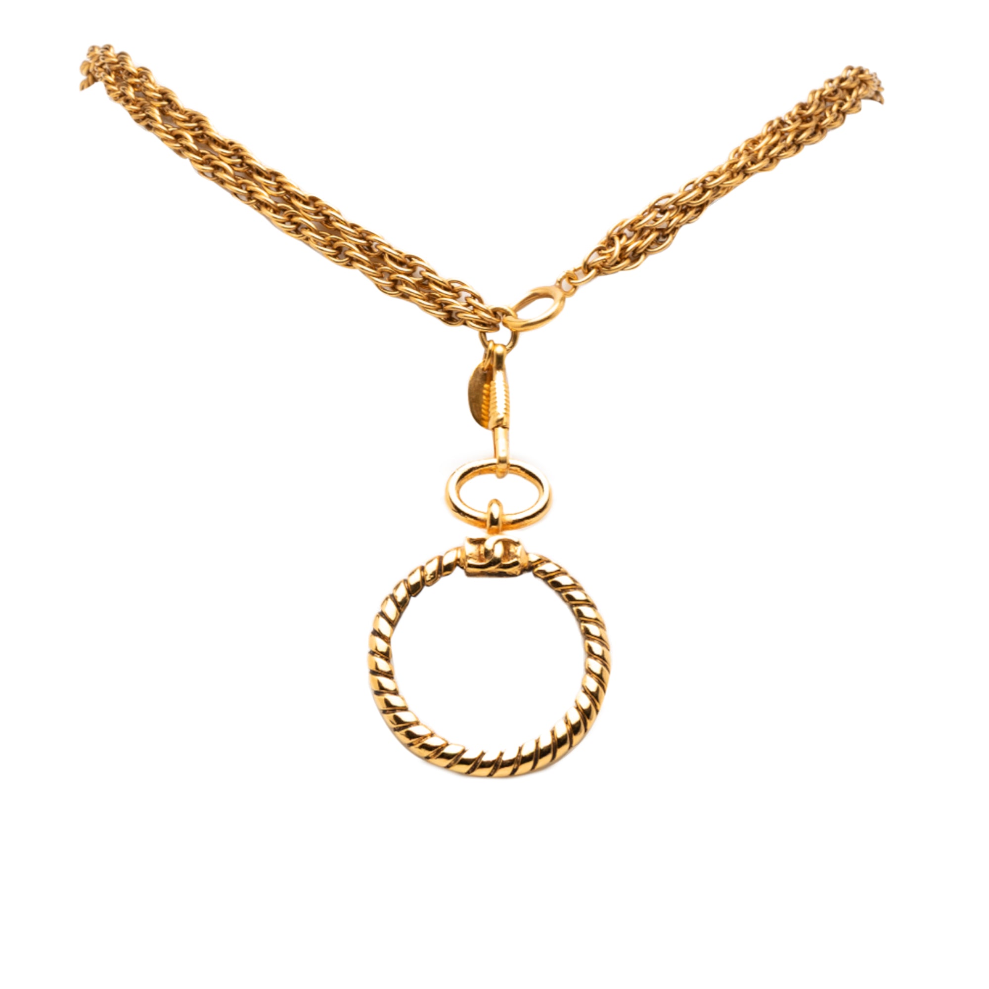 Chanel Gold Plated Double Chain Loupe Magnifying Glass Pendant Necklace
