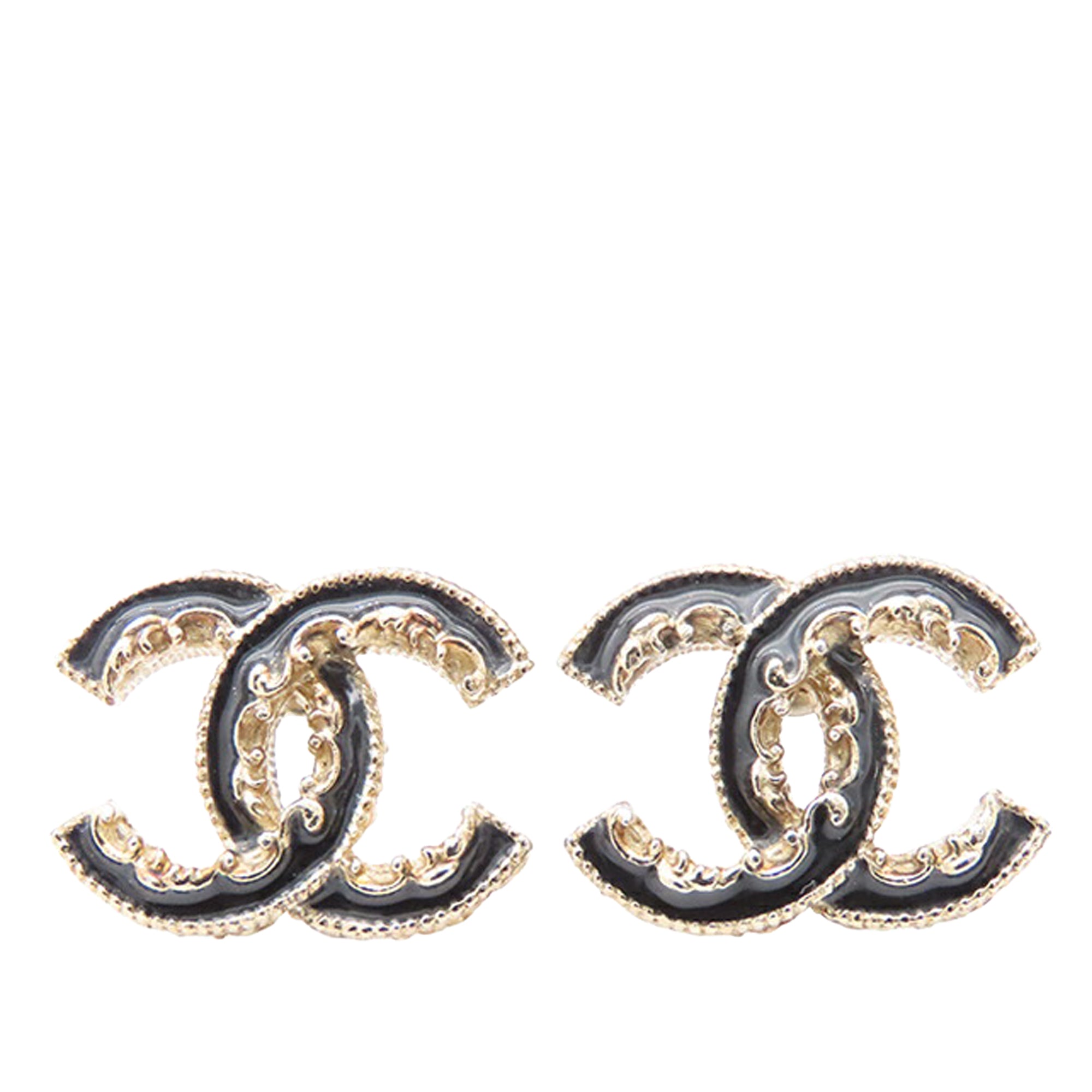 Chanel Gold Plated Enamel CC Baroque Push Back Earrings