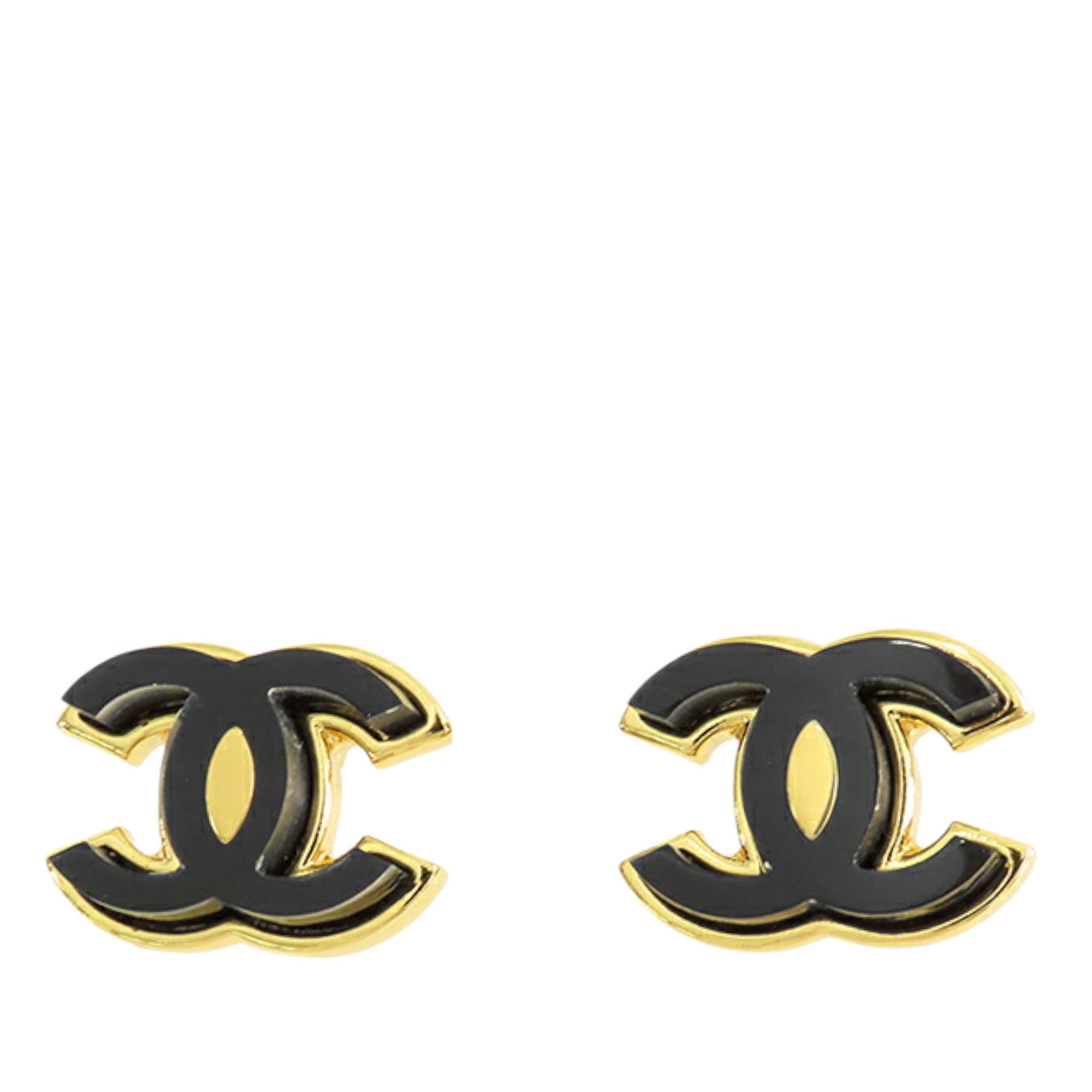 Chanel Gold Plated Enamel CC Push Back Earrings