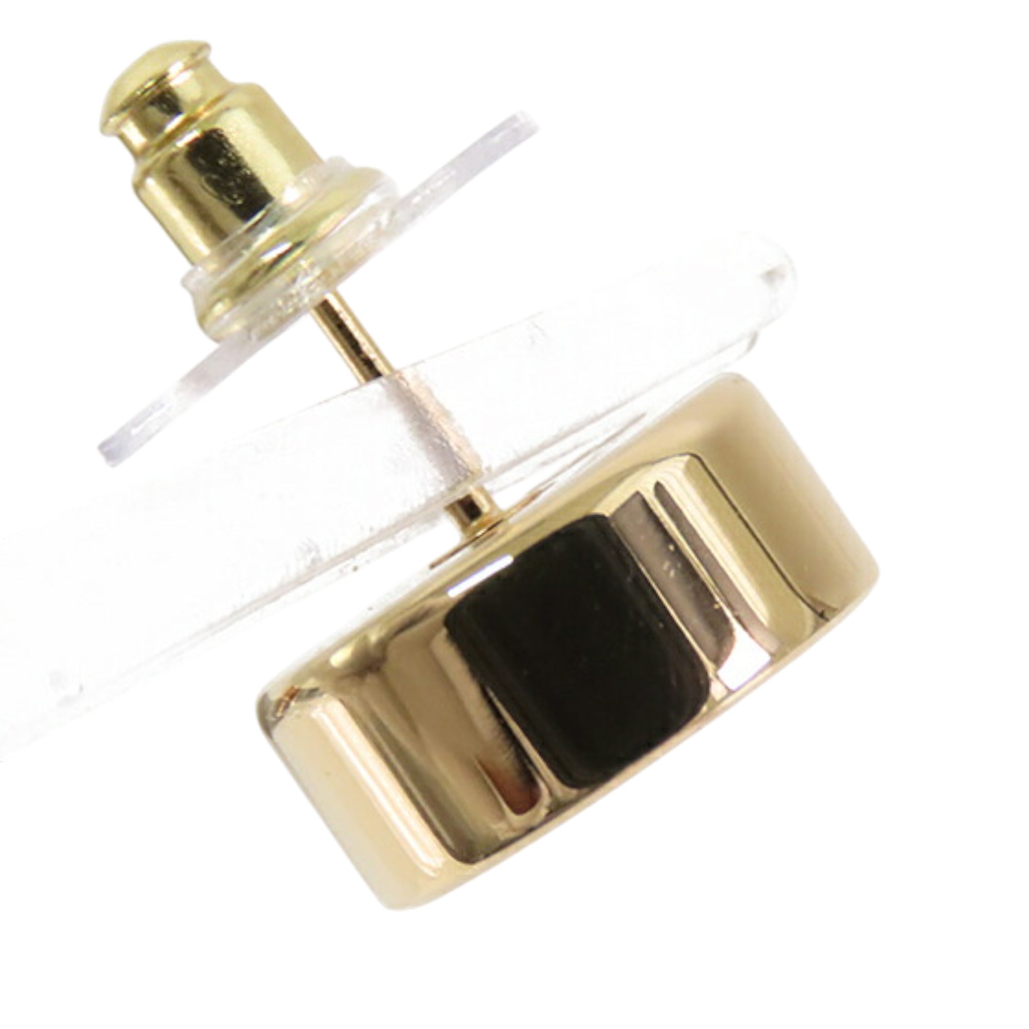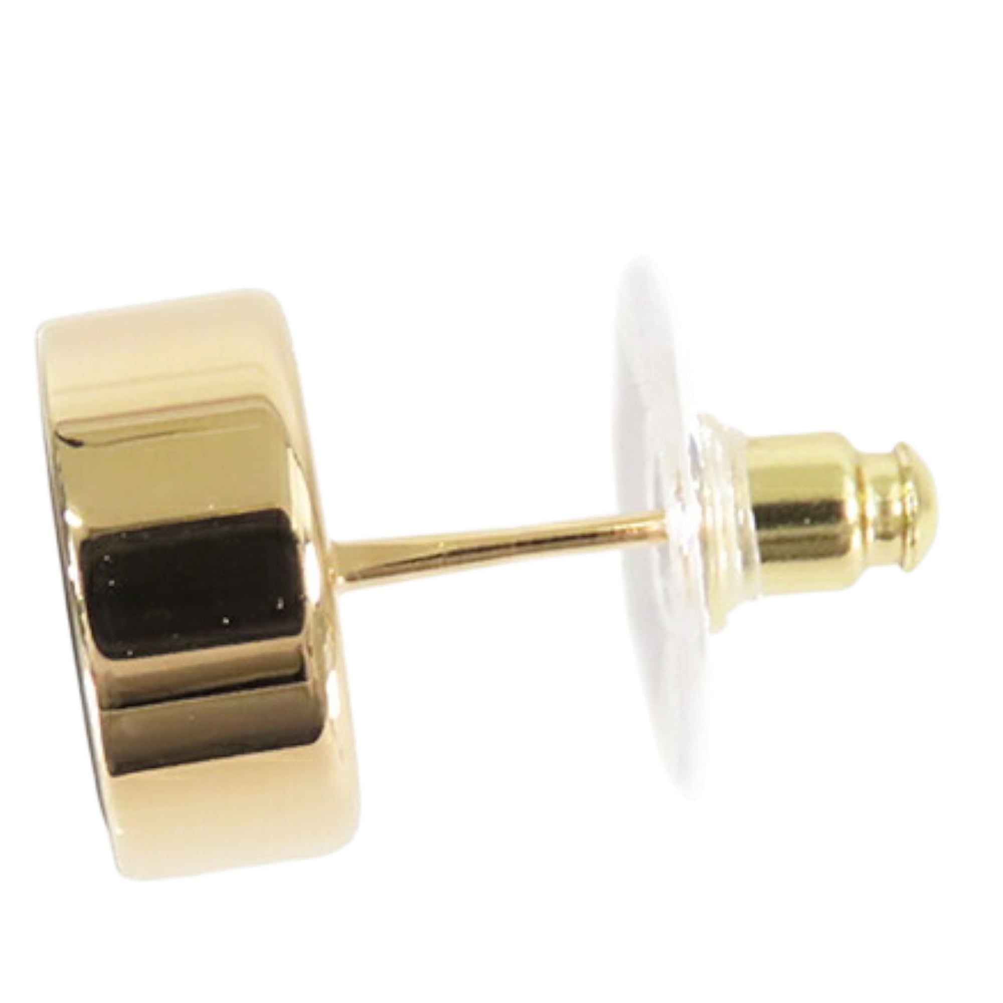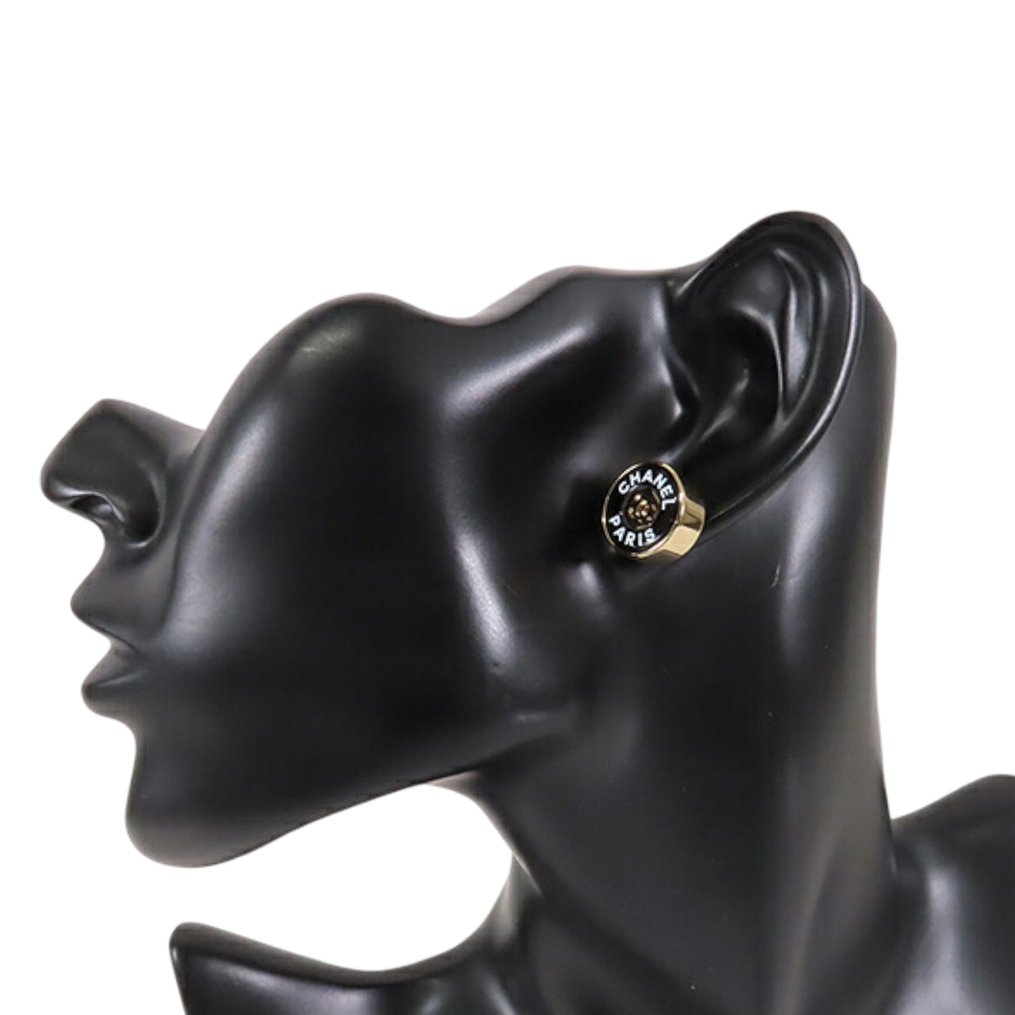 Chanel Gold Plated Enamel Logo Button Bullet Back Earrings
