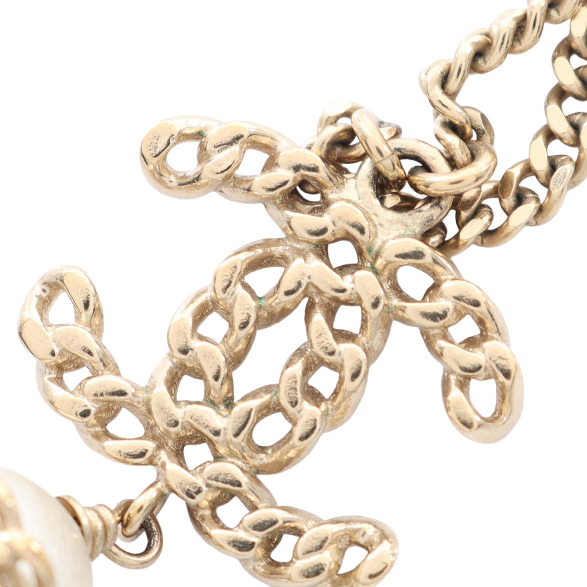 Chanel Gold Plated Faux Pearl CC Pendant Necklace