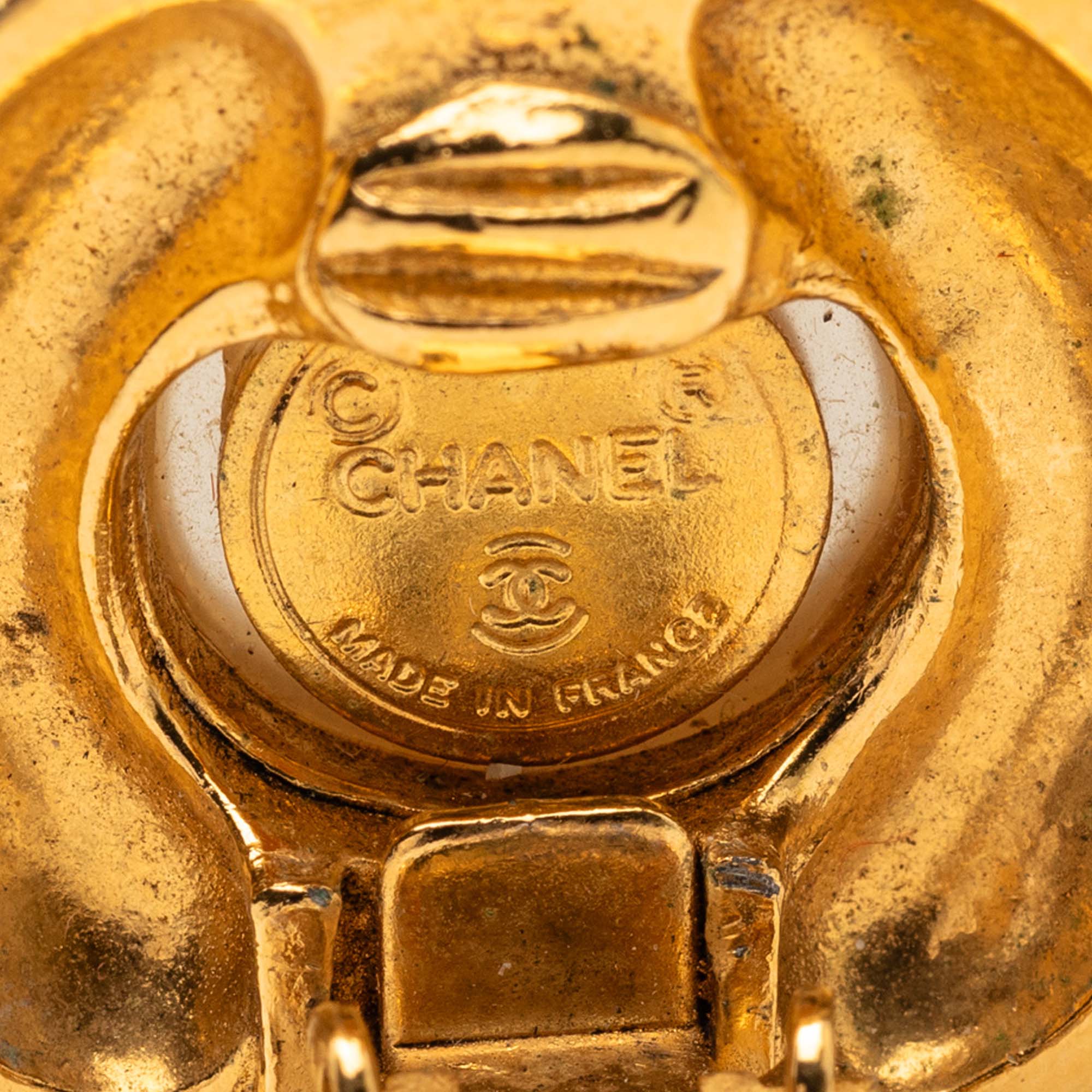 Chanel Gold Plated Faux Pearl Clip On Earrings