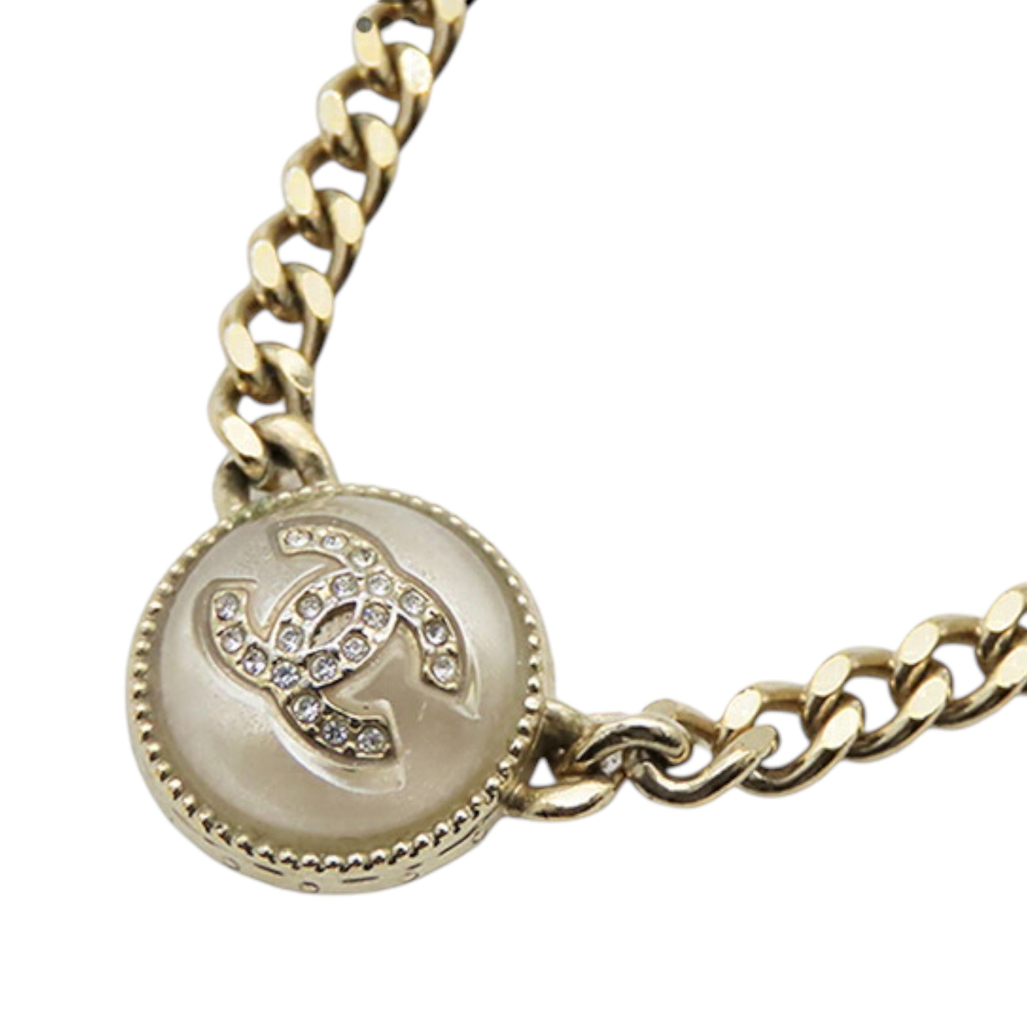 Chanel Gold Plated Resin CC Rhinestones Pendant Necklace