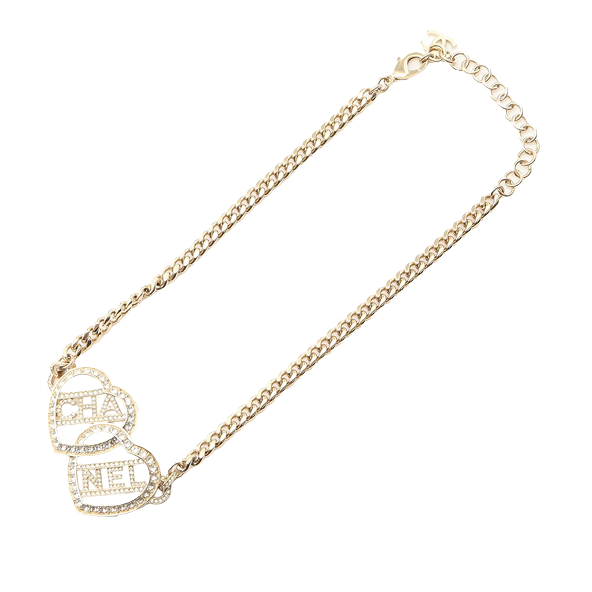 Chanel Gold Plated Rhinestones Heart Logo Choker Necklace