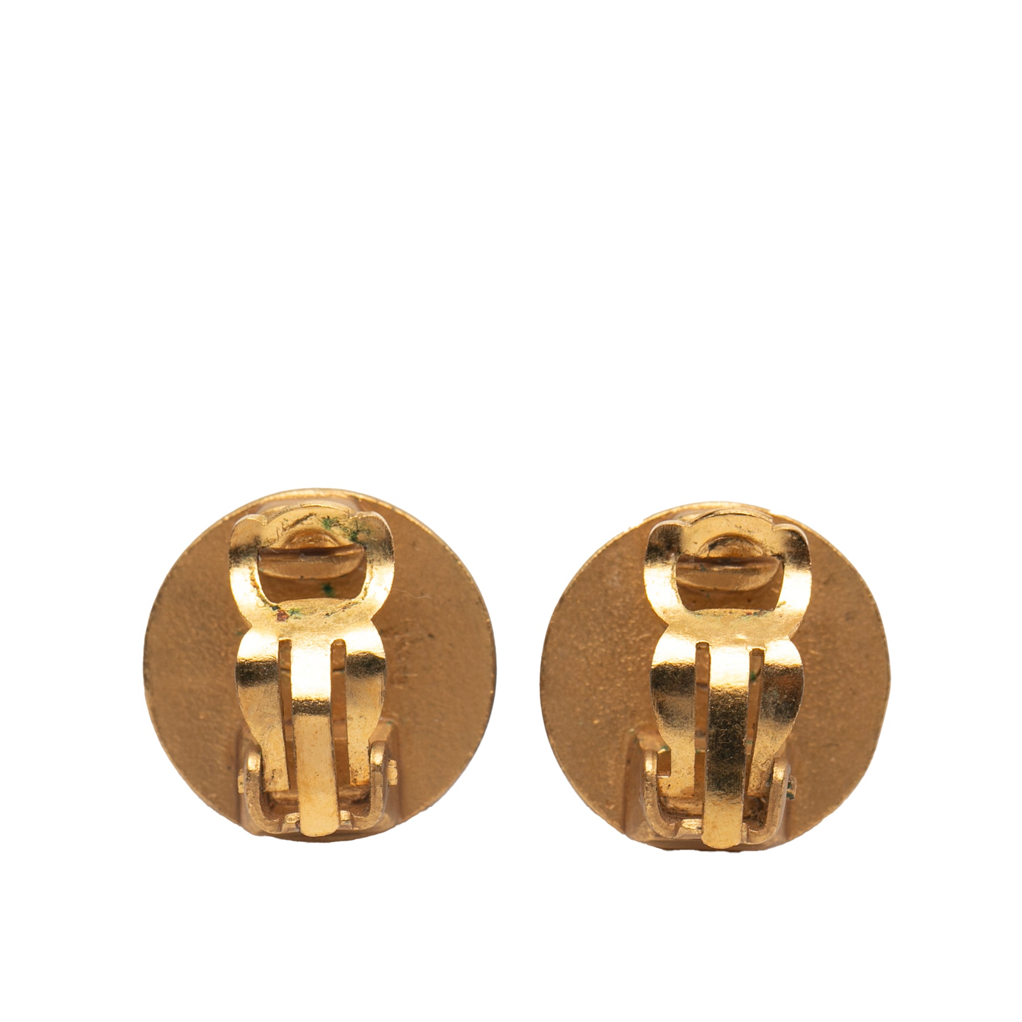 Chanel Gold Plated Rhinestones Lion Head Clip On Earrings
