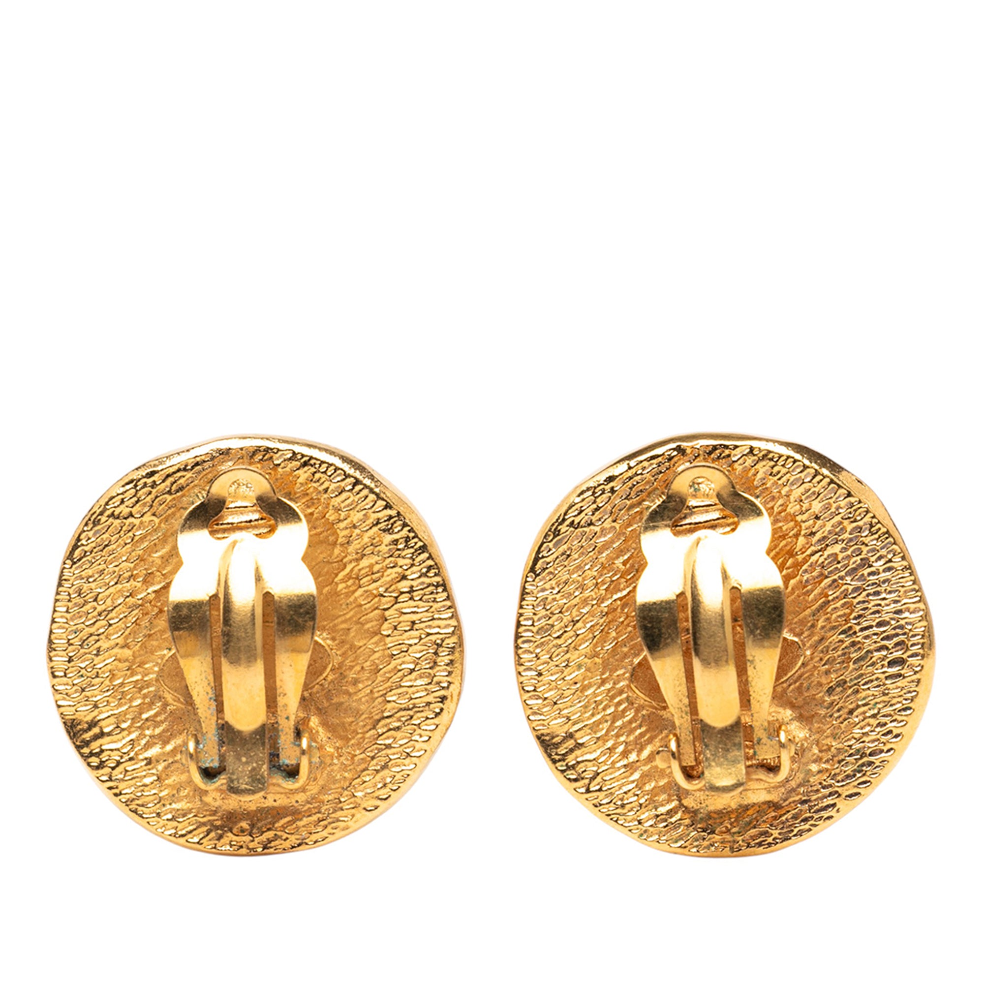 Chanel Gold Plated Rue Cambon Round Clip on Earrings