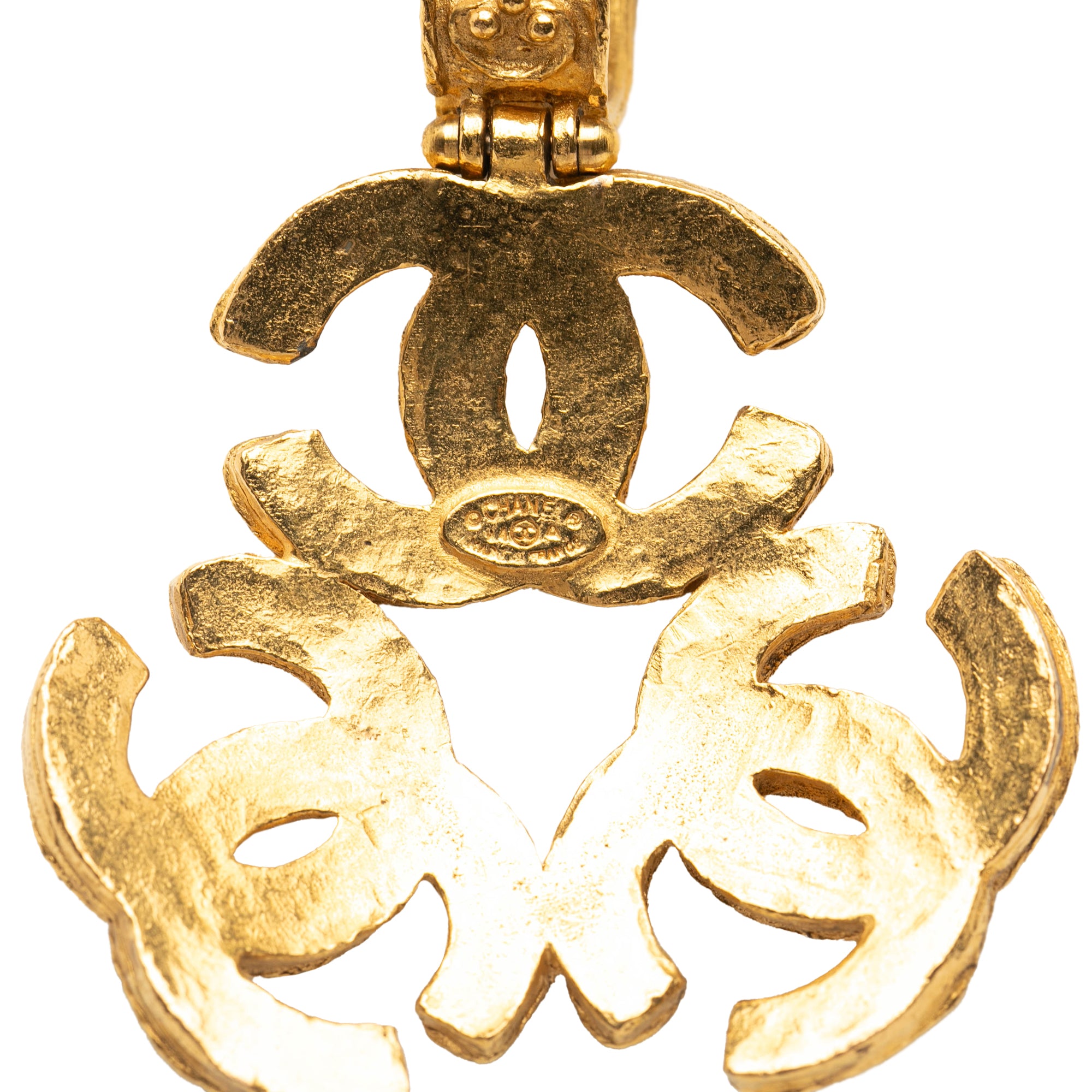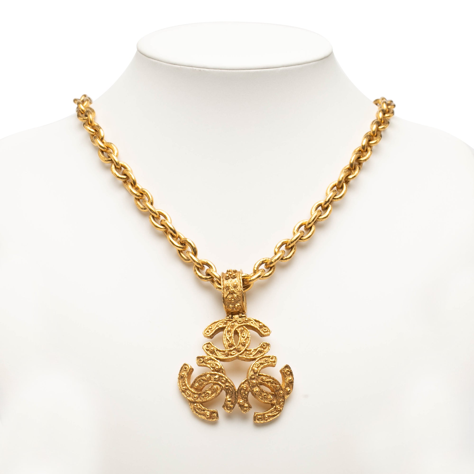 This necklace features a gold-metal body, a gold-tone curb chain with CC logo pendant and spring ring closure. Inclusion: box. Retail Price: 1500.00