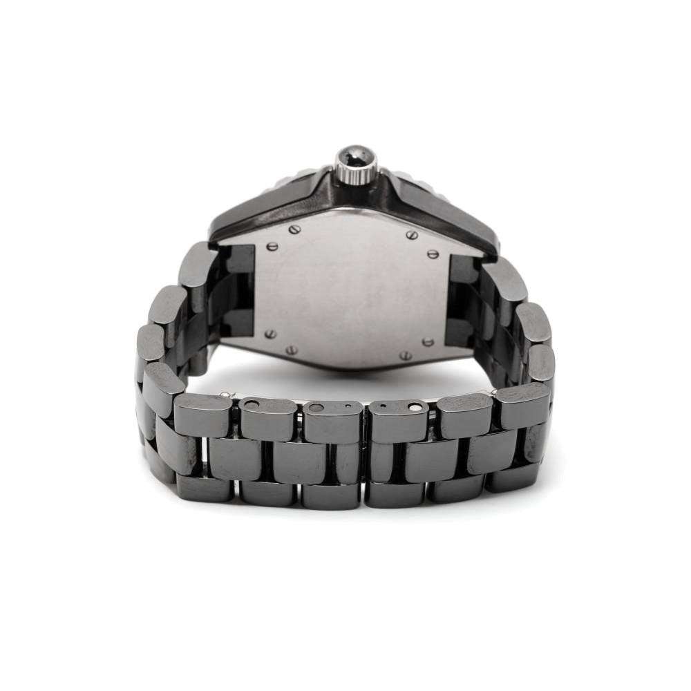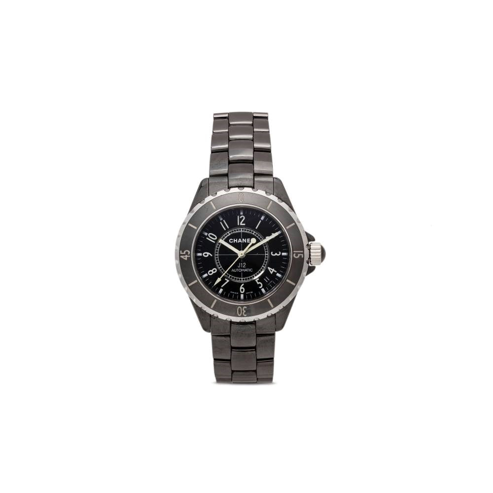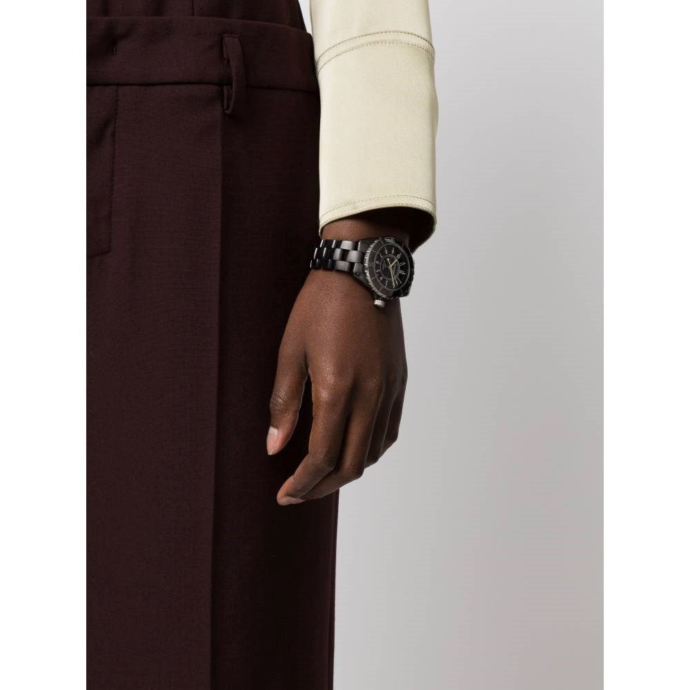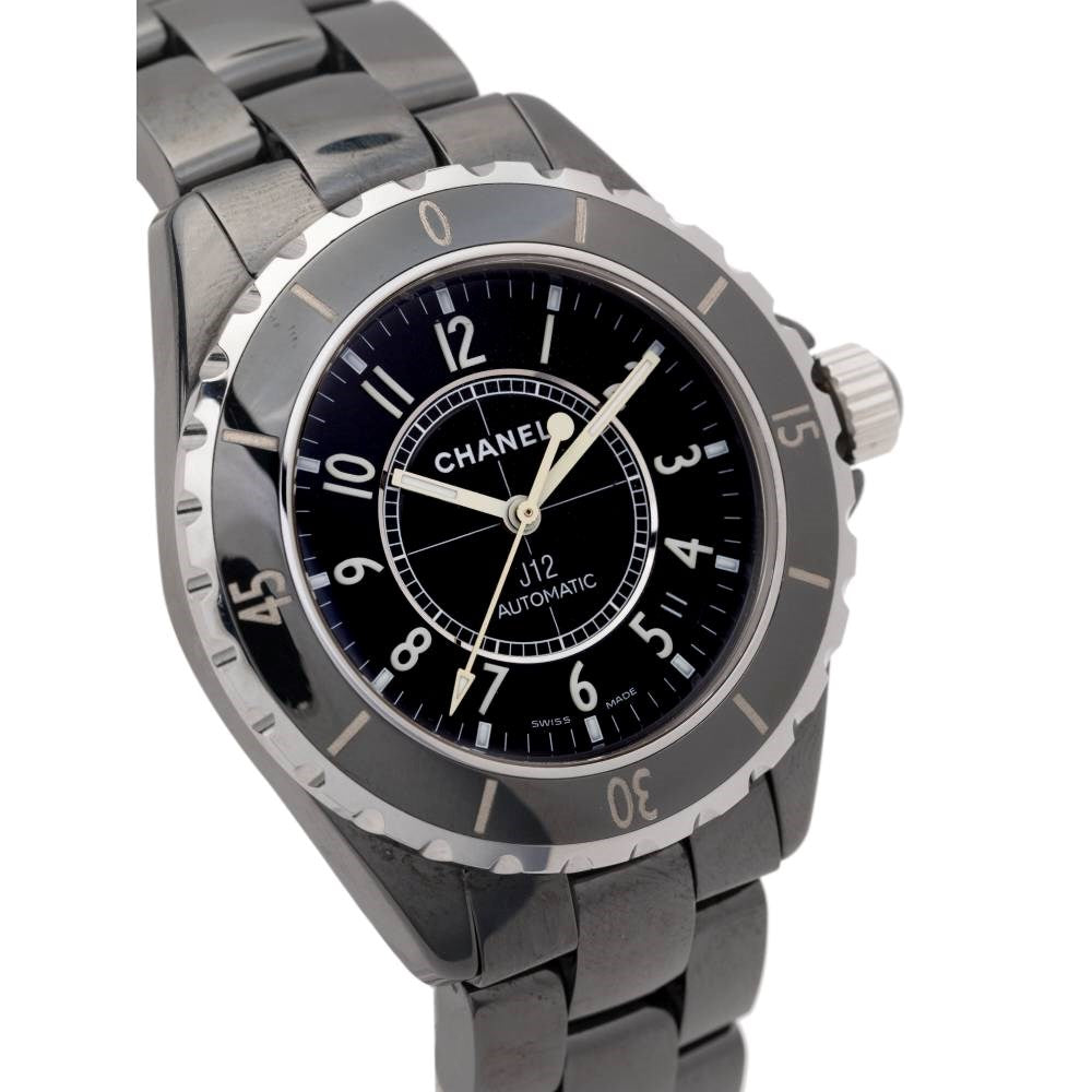 Chanel watch "J12 38mm" 2000s. Stick hands round case, engraved bezel, black dial, automatic movement. Closure with deployante buckle.