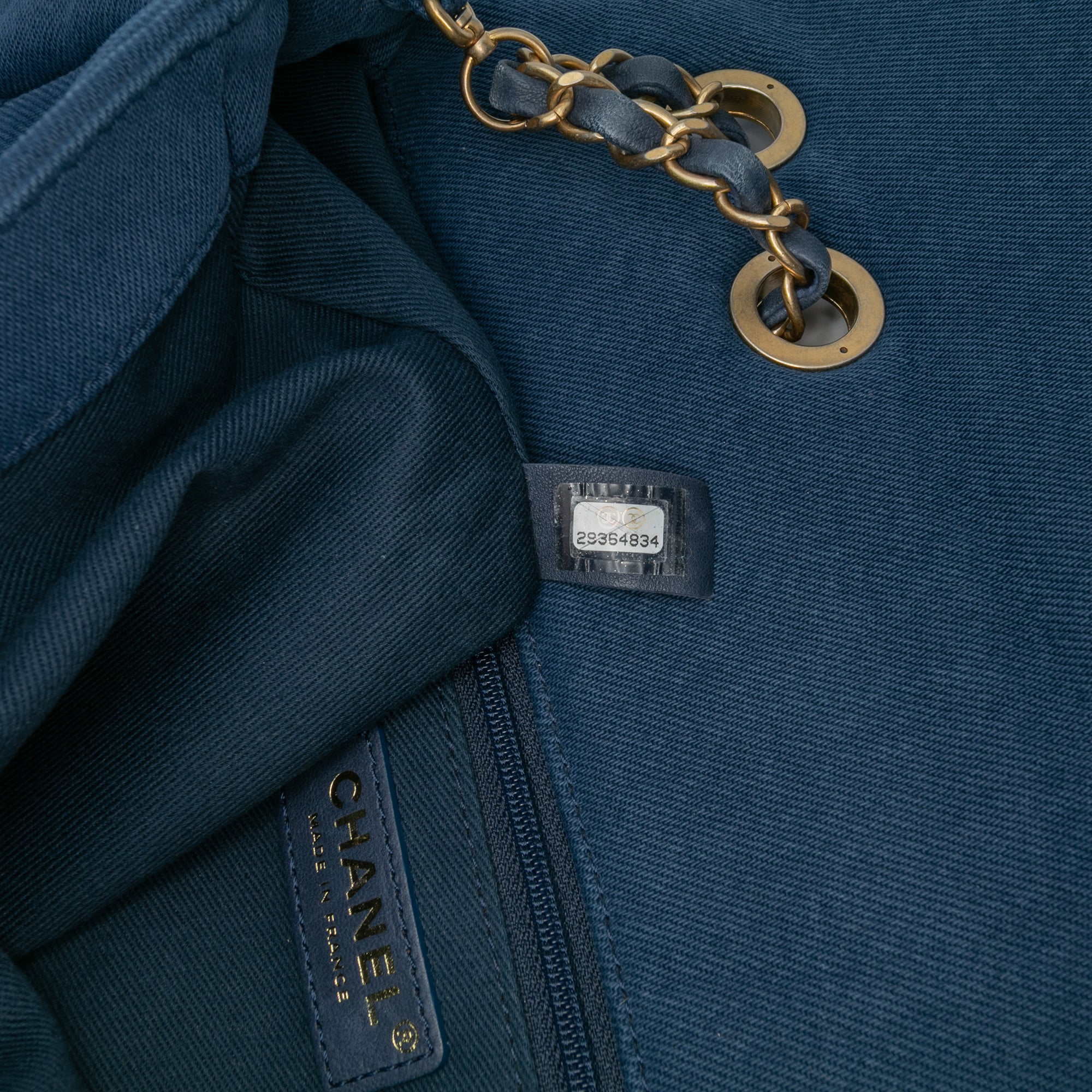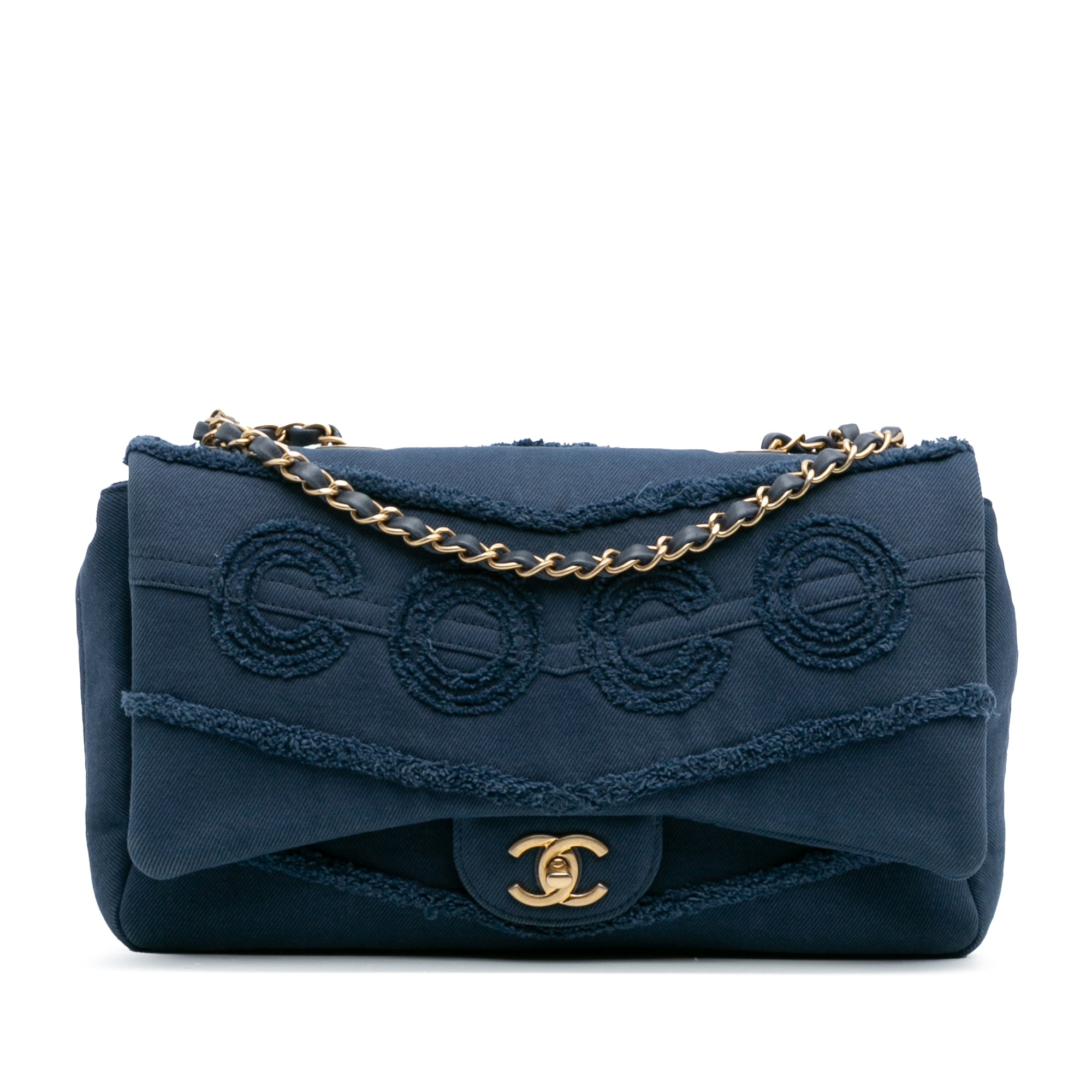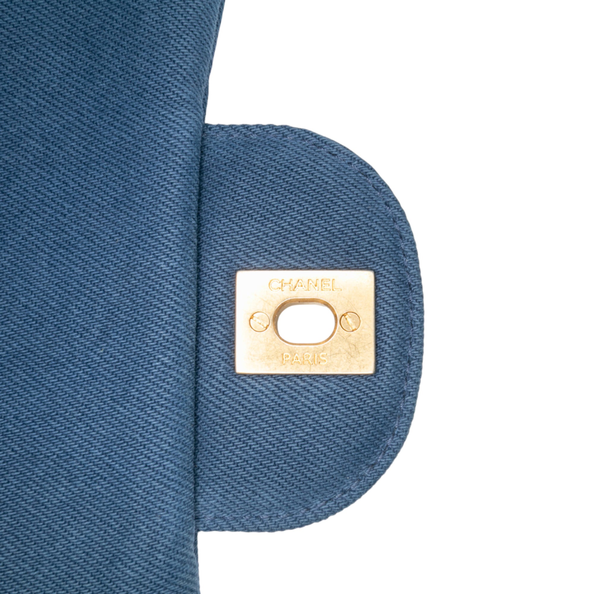 Chanel Jumbo Chevron Denim Fringe Coco Flap