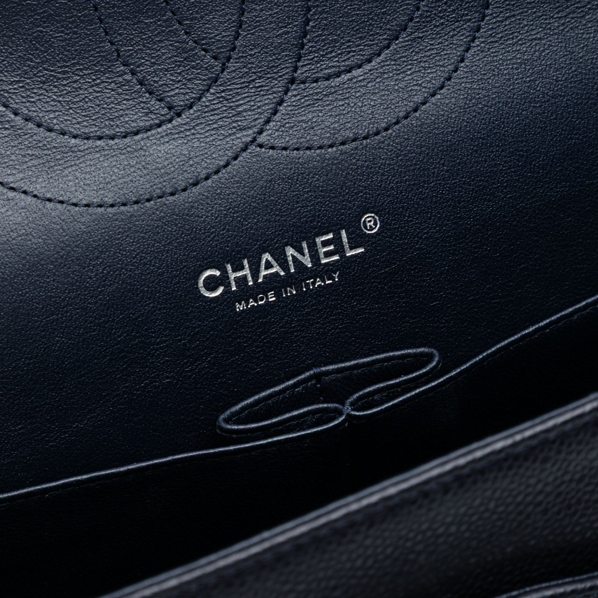 This shoulder bag features a quilted caviar leather body, leather woven chain straps, a double top flap with CC turn-lock closure, an exterior back slip pocket, and interior zip and slip pockets. Retail Price: 10200.00