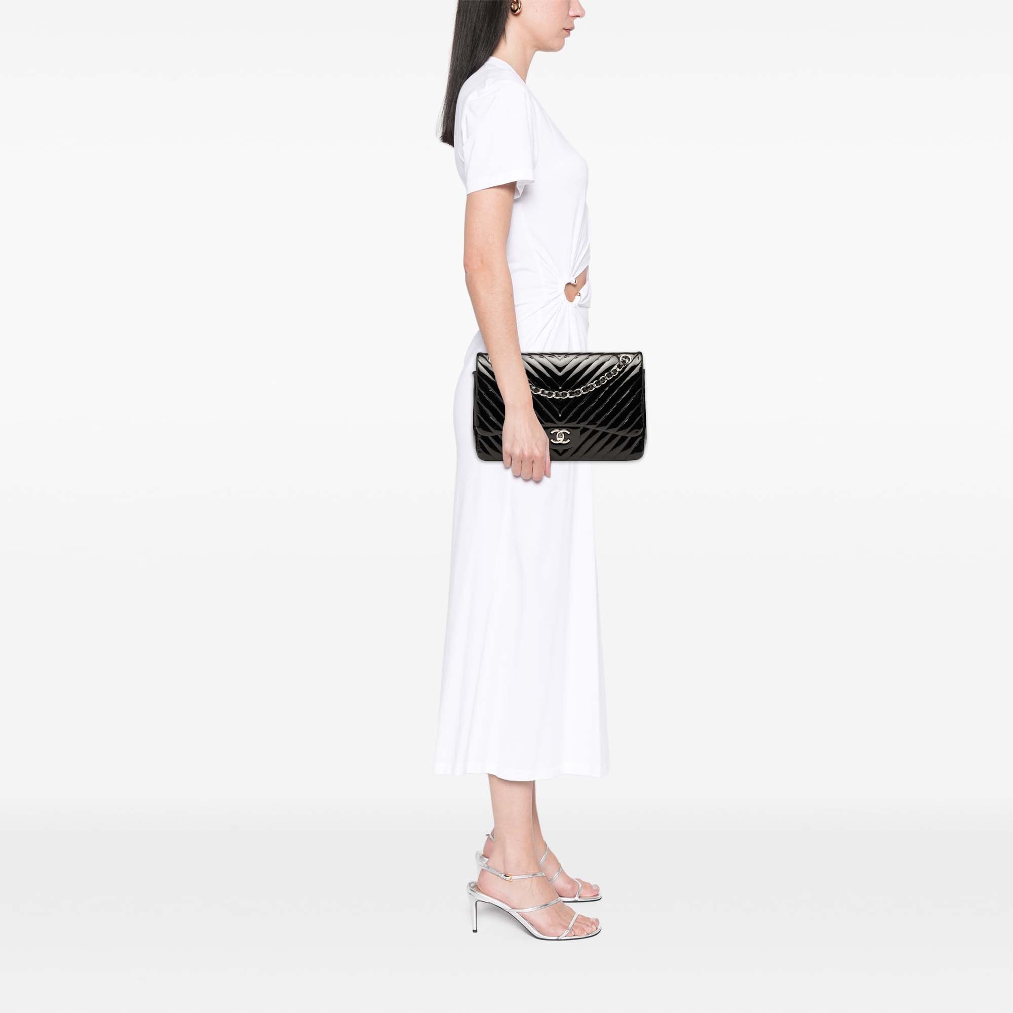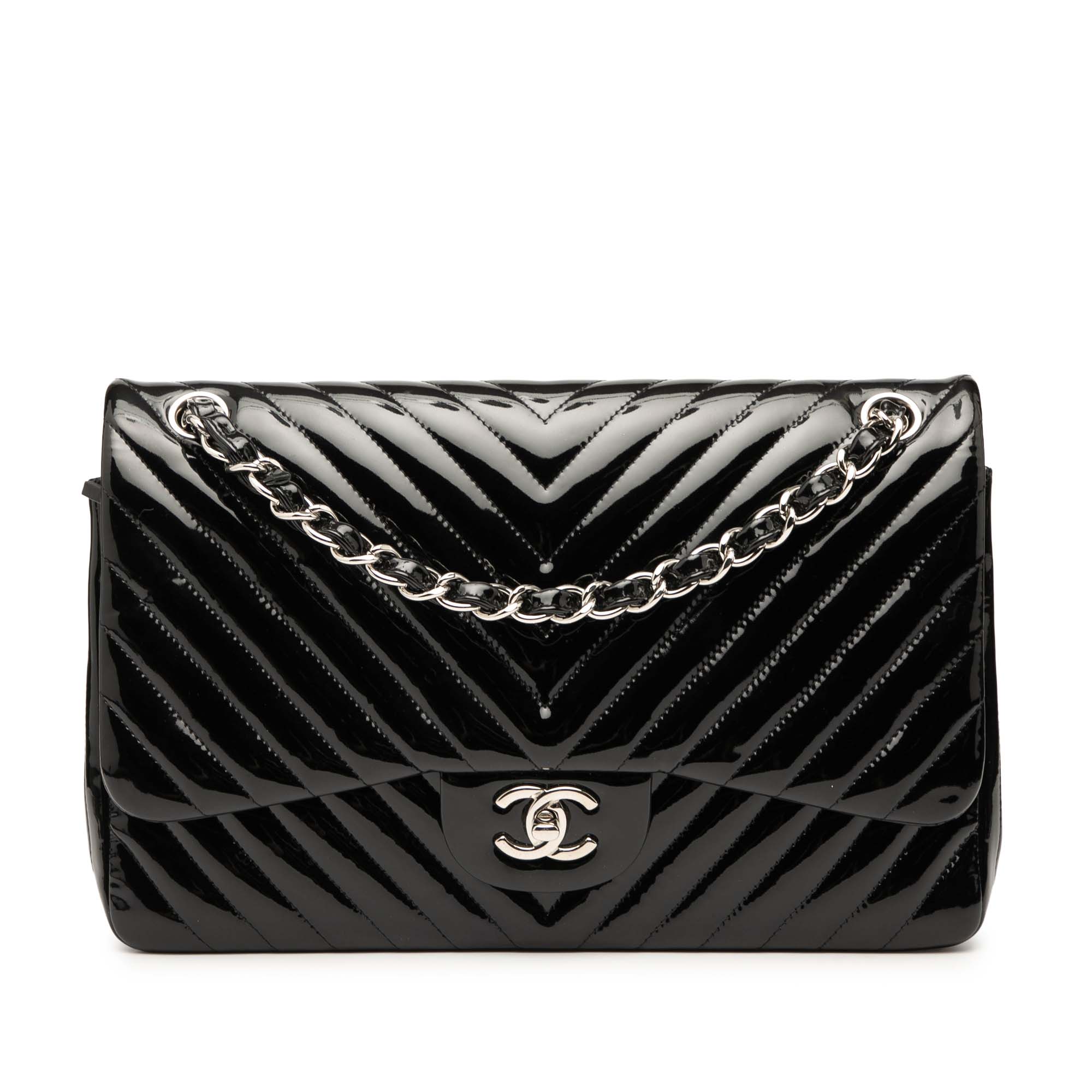 Chanel Jumbo Classic Chevron Patent Double Flap