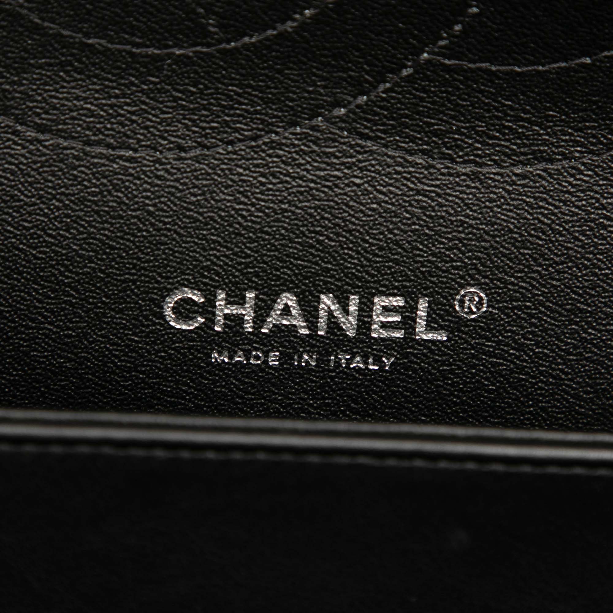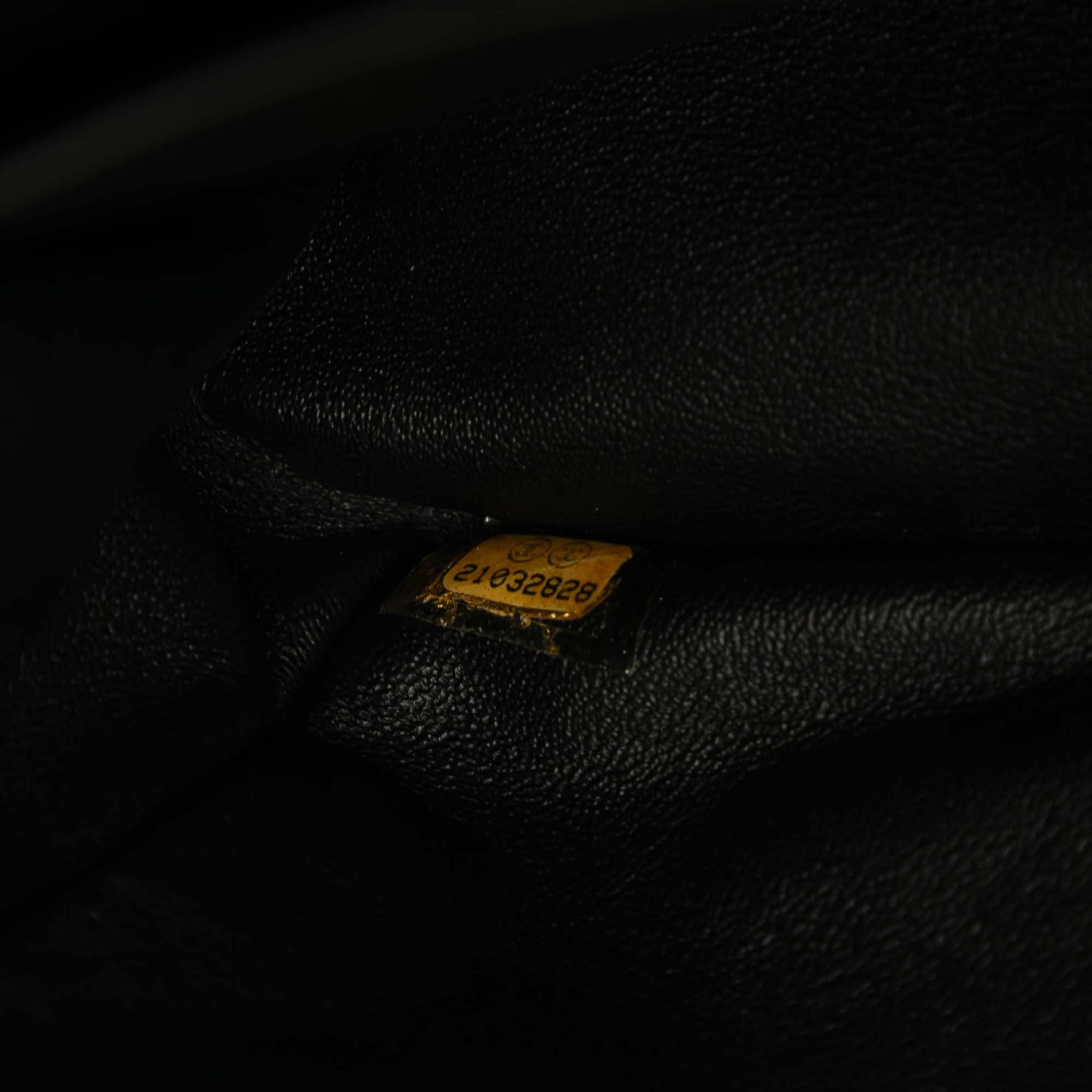 This shoulder bag features a quilted patent leather body, leather-woven chain link shoulder strap, a double front flap with interlocking Cs and twist lock closure, an exterior back slip pocket, and interior zip and slip pockets. Inclusion: Dust bag. Retail Price: 9500.00