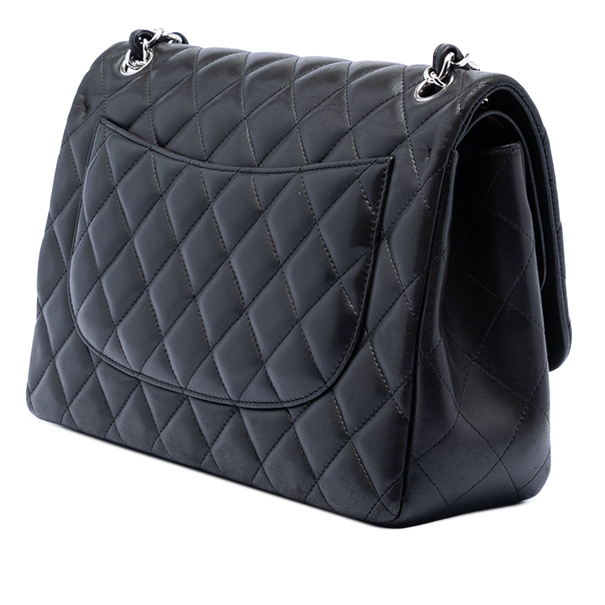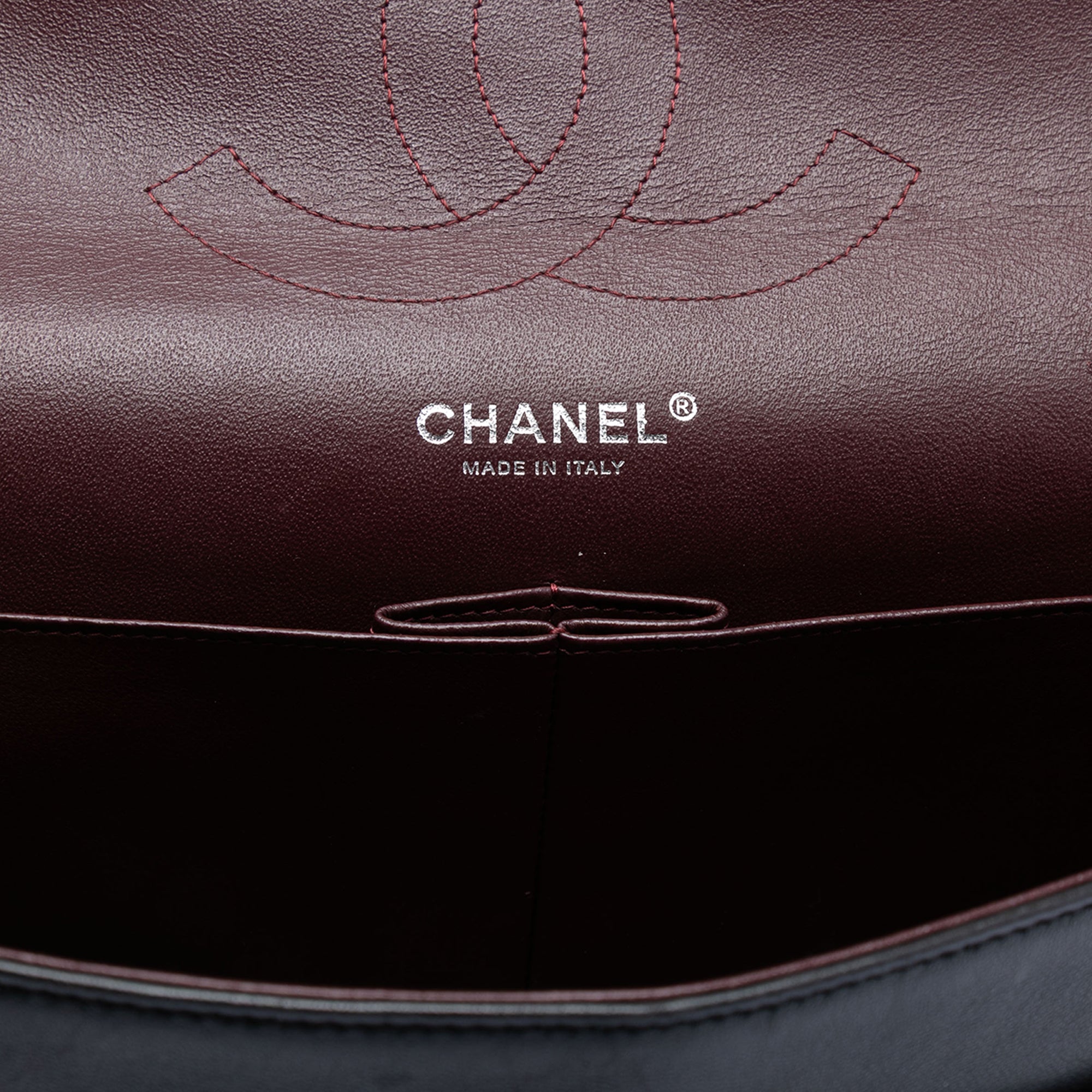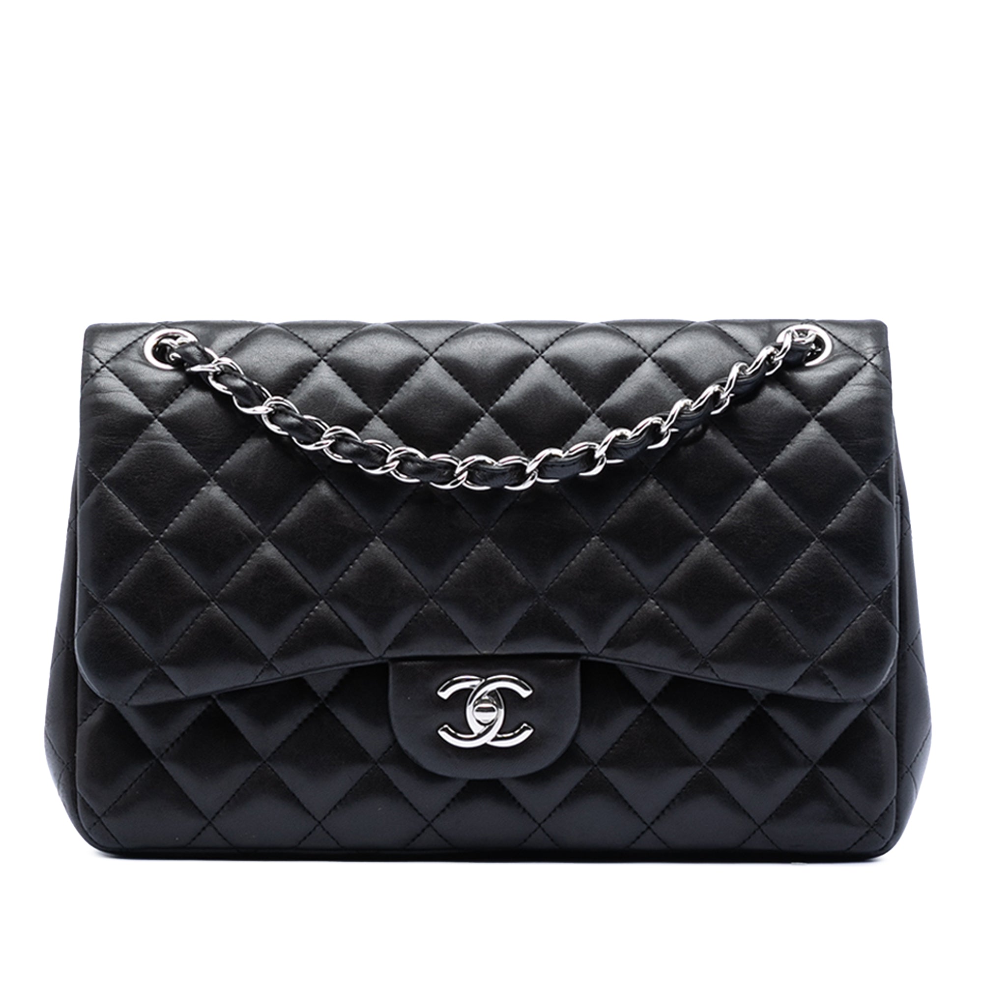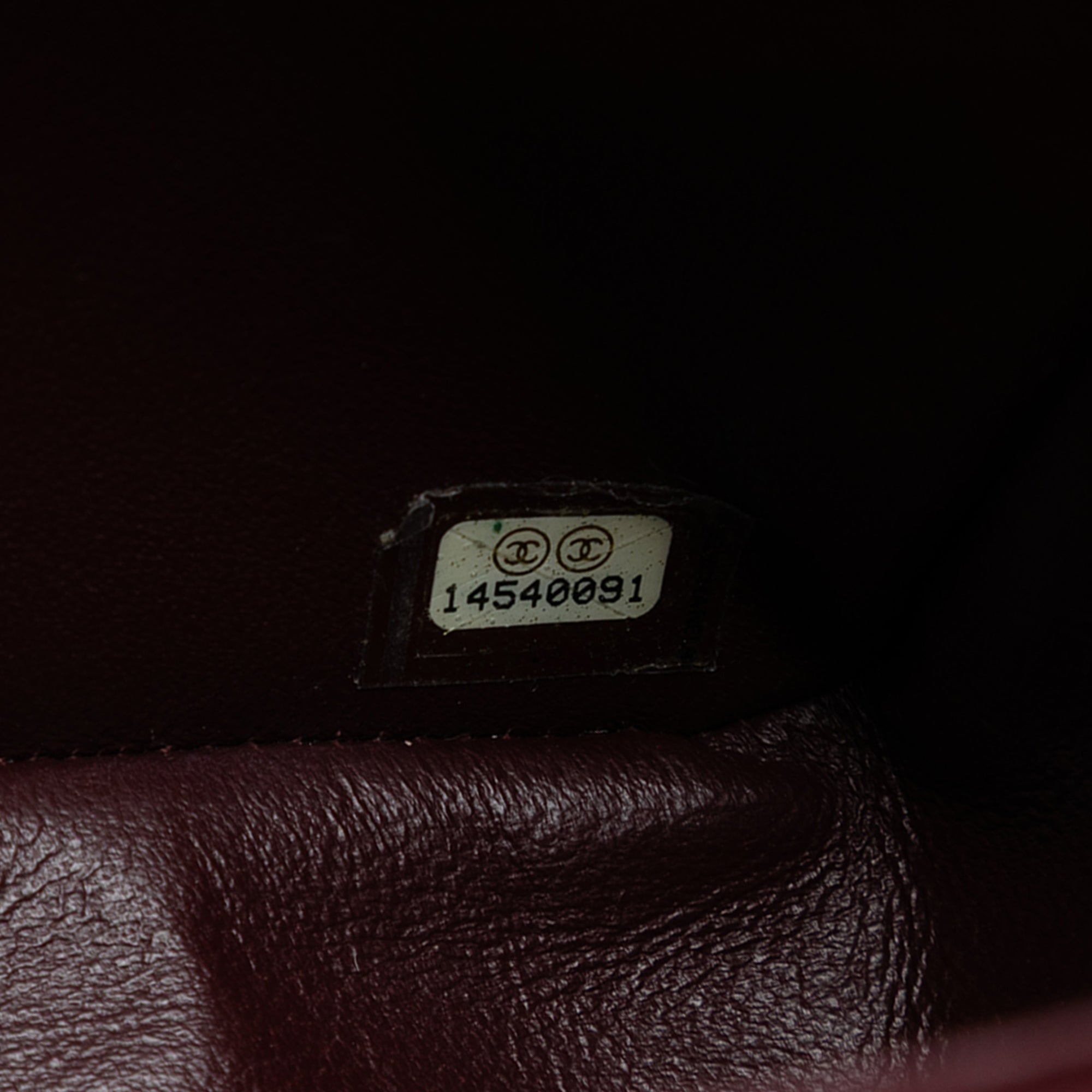 This shoulder bag features a quilted lambskin leather body, an exterior back slip pocket, leather-woven chain straps, double front flaps with CC turnlock closure, and interior zip and slip pockets. Inclusion: authenticity card. Retail Price: 11700.00