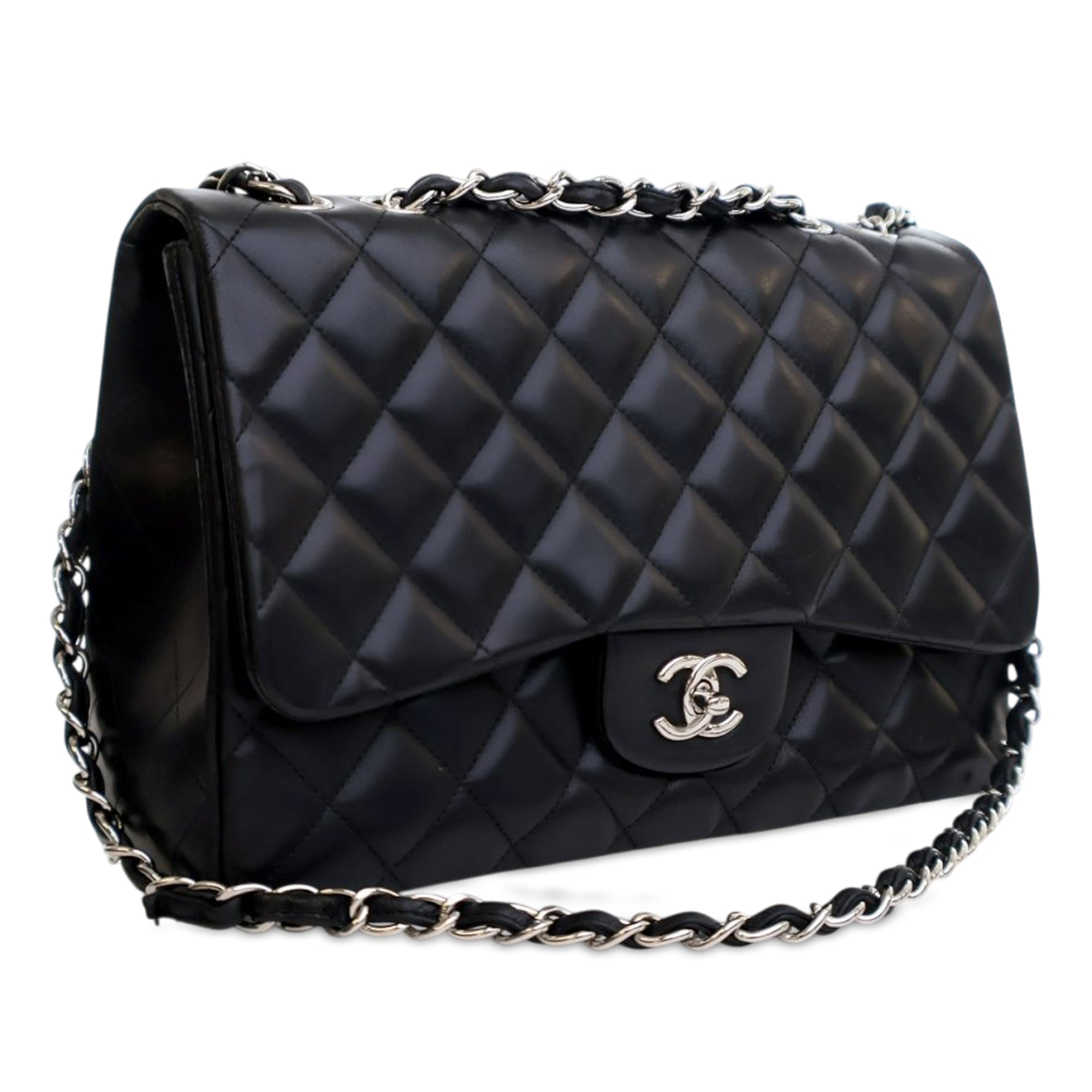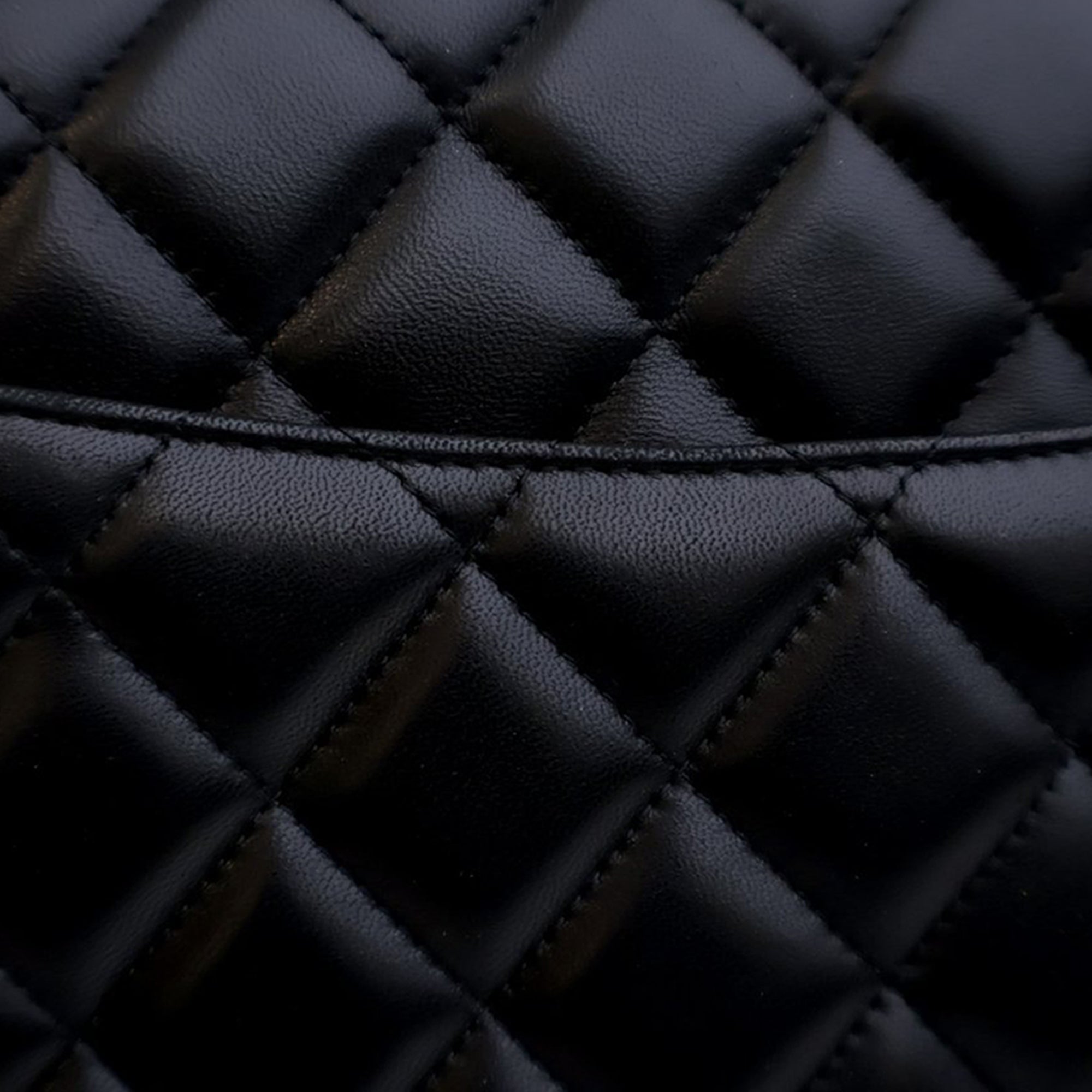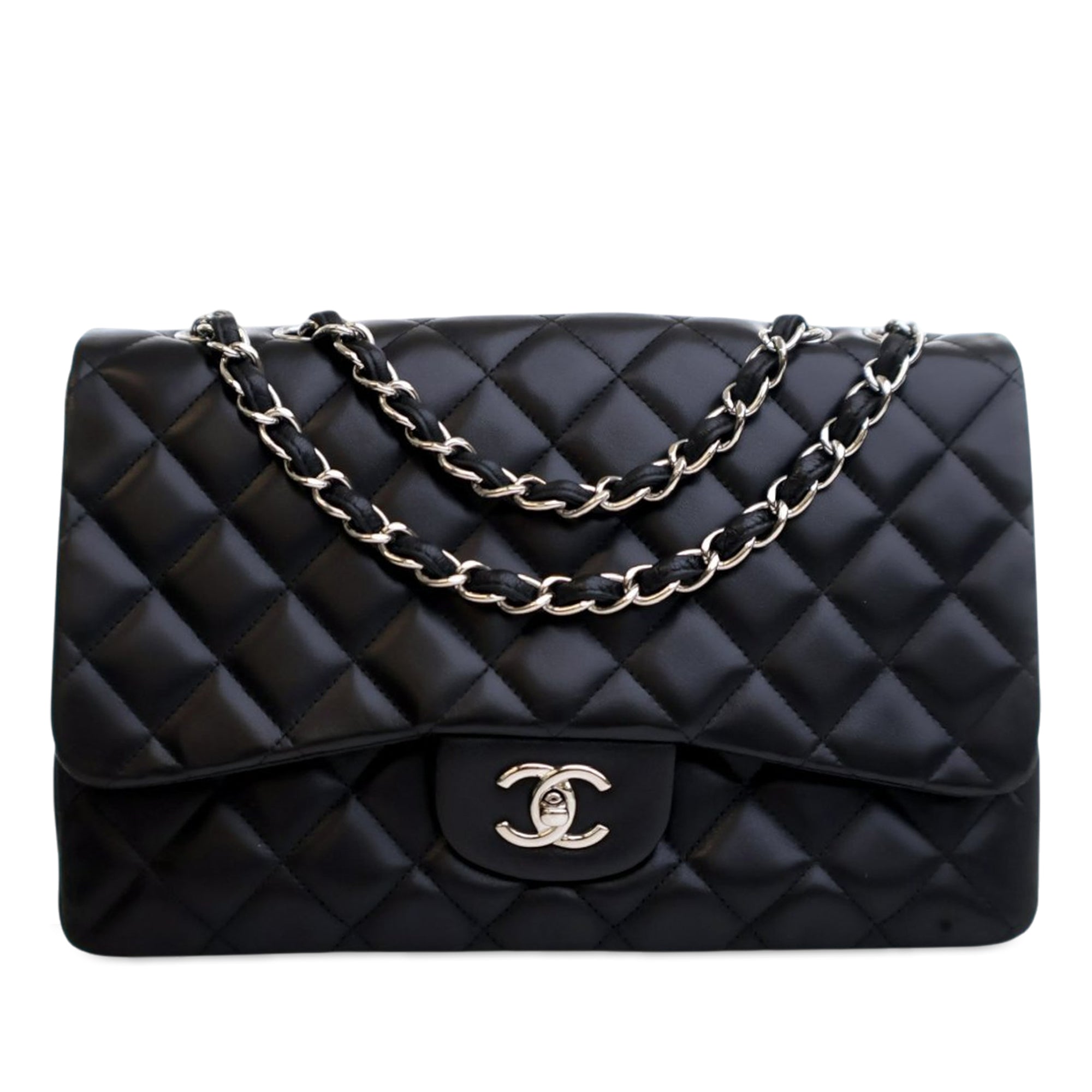 This shoulder bag features a quilted lambskin leather body, leather-woven chain straps, double front flaps with CC turnlock closure, an exterior back slip pocket, and interior zip and slip pockets. Inclusion: Dust bag, authenticity card. Retail Price: 11700.00