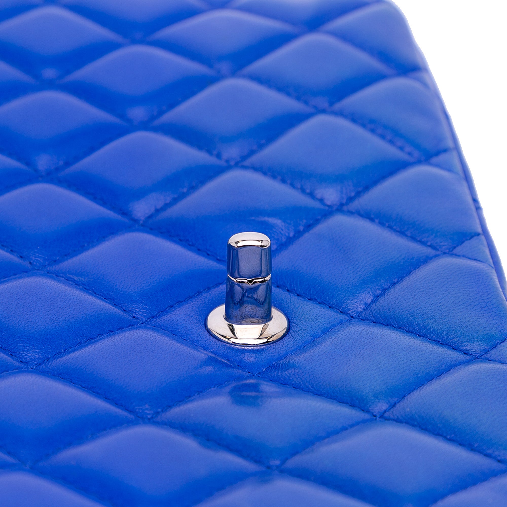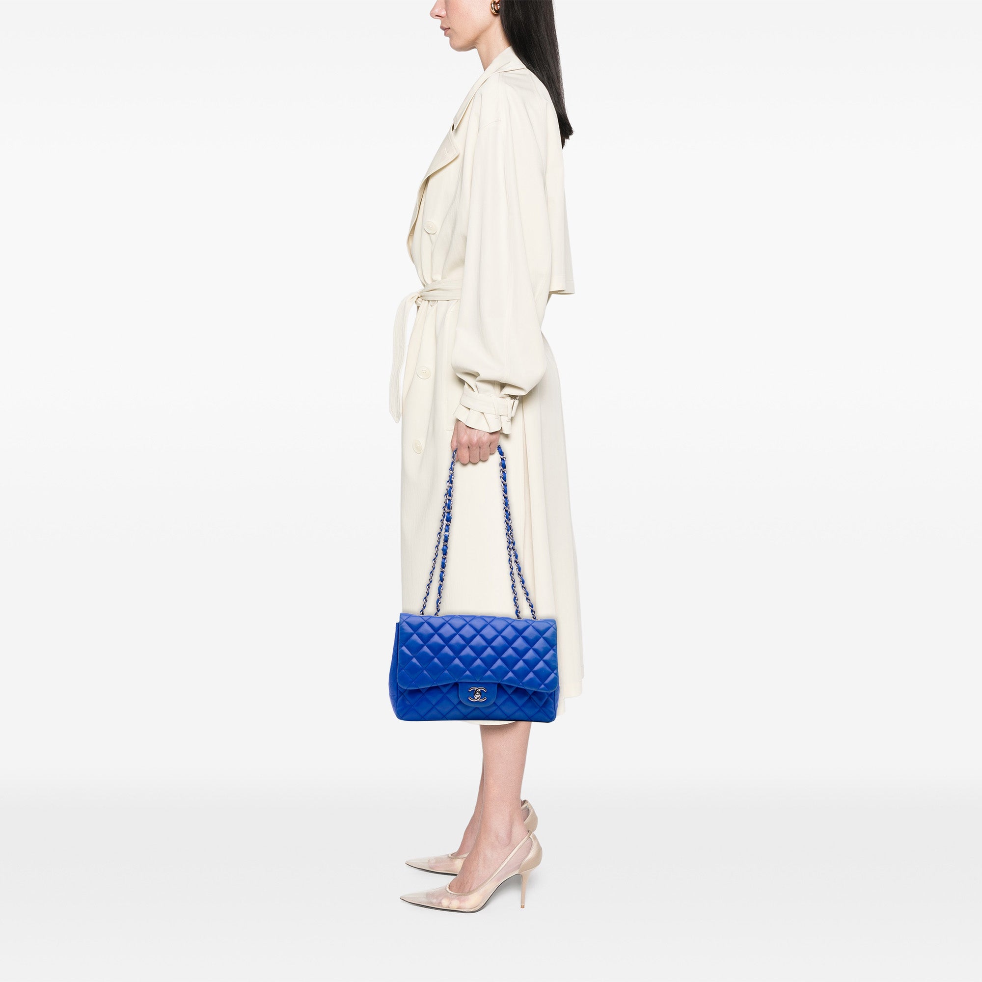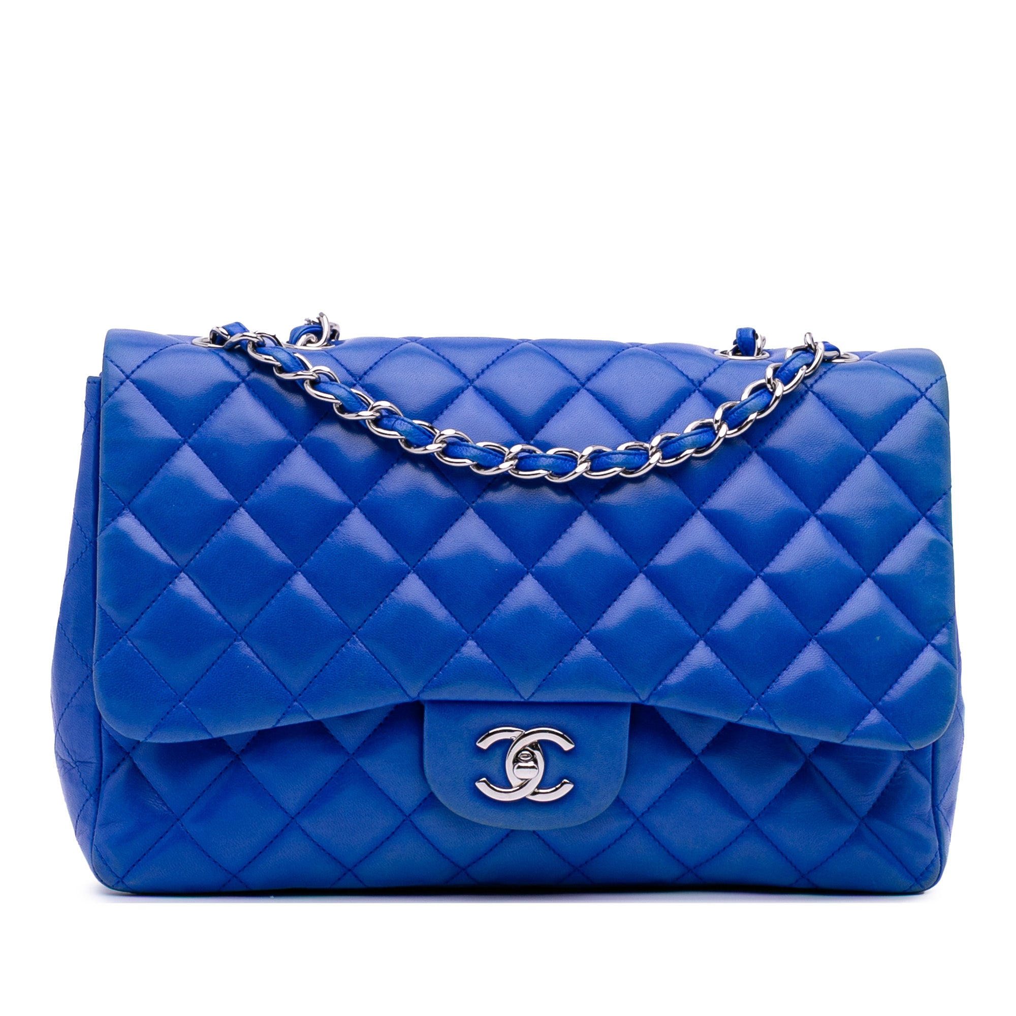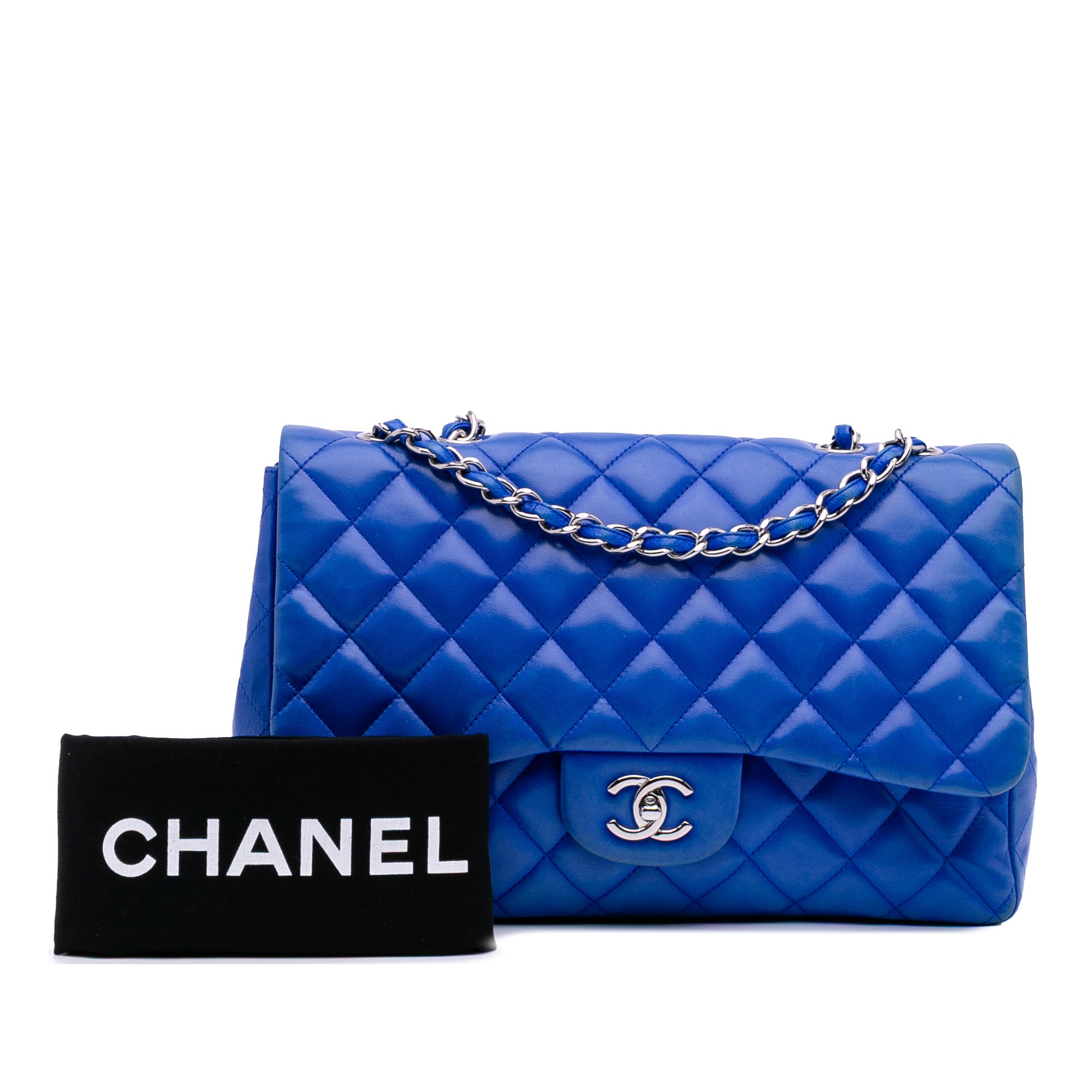 This shoulder bag features a quilted lambskin body, leather woven chain link shoulder straps, a front flap with interlocking Cs and a twist lock closure, an exterior back slip pocket, and interior zip and slip pockets. Inclusion: Dust bag. Retail Price: 9600.00
