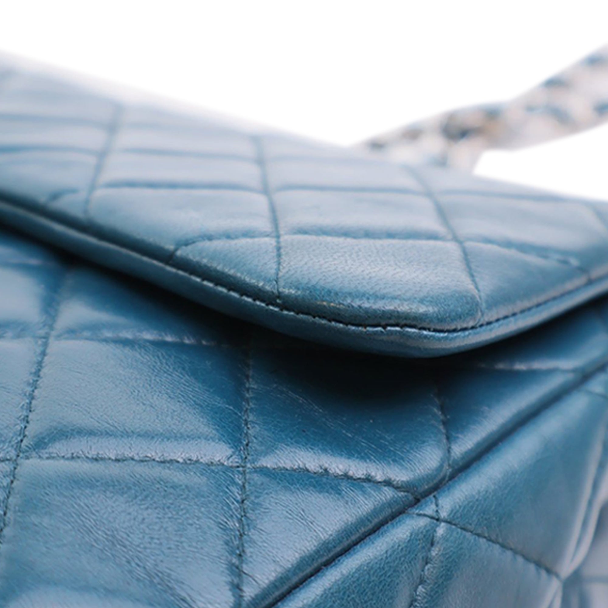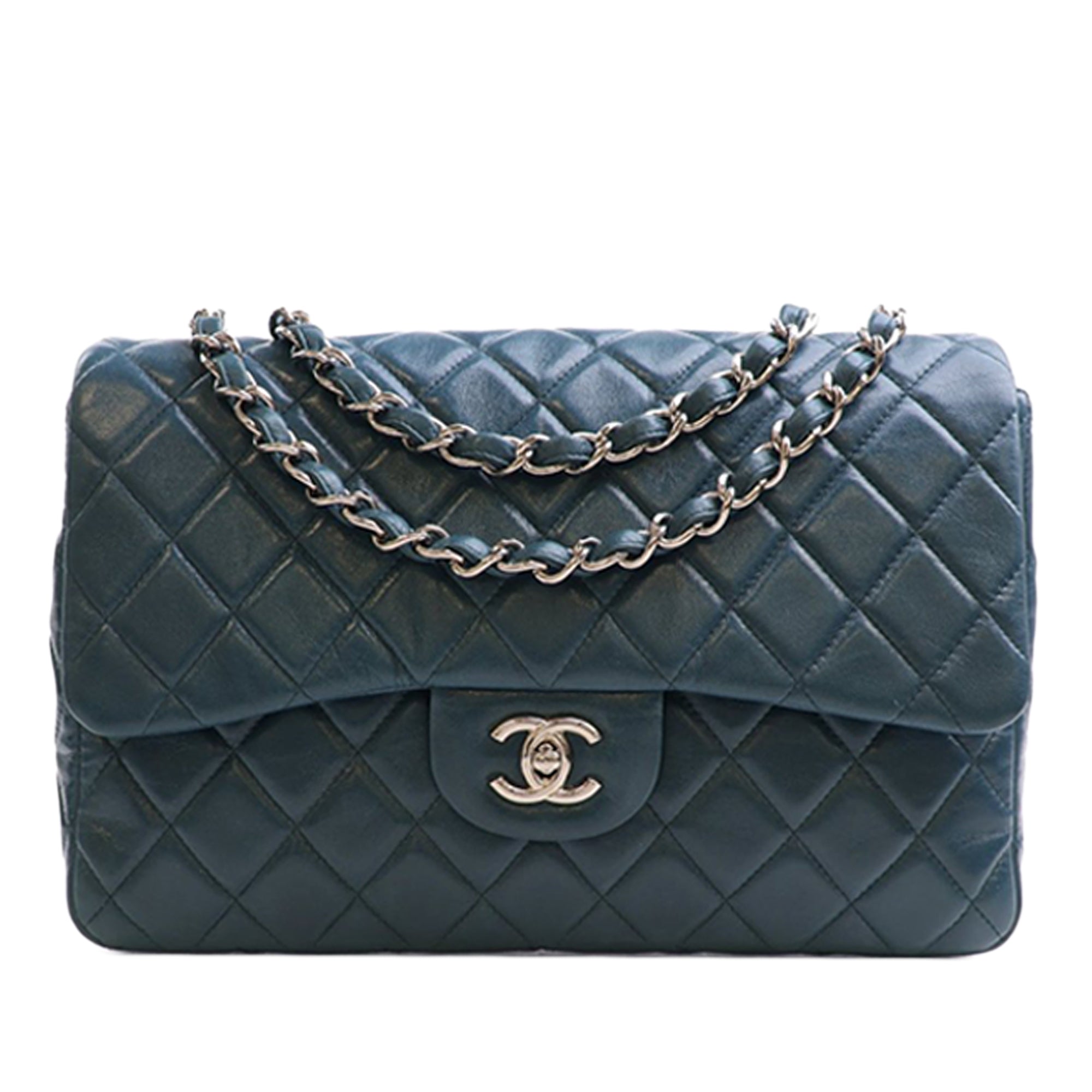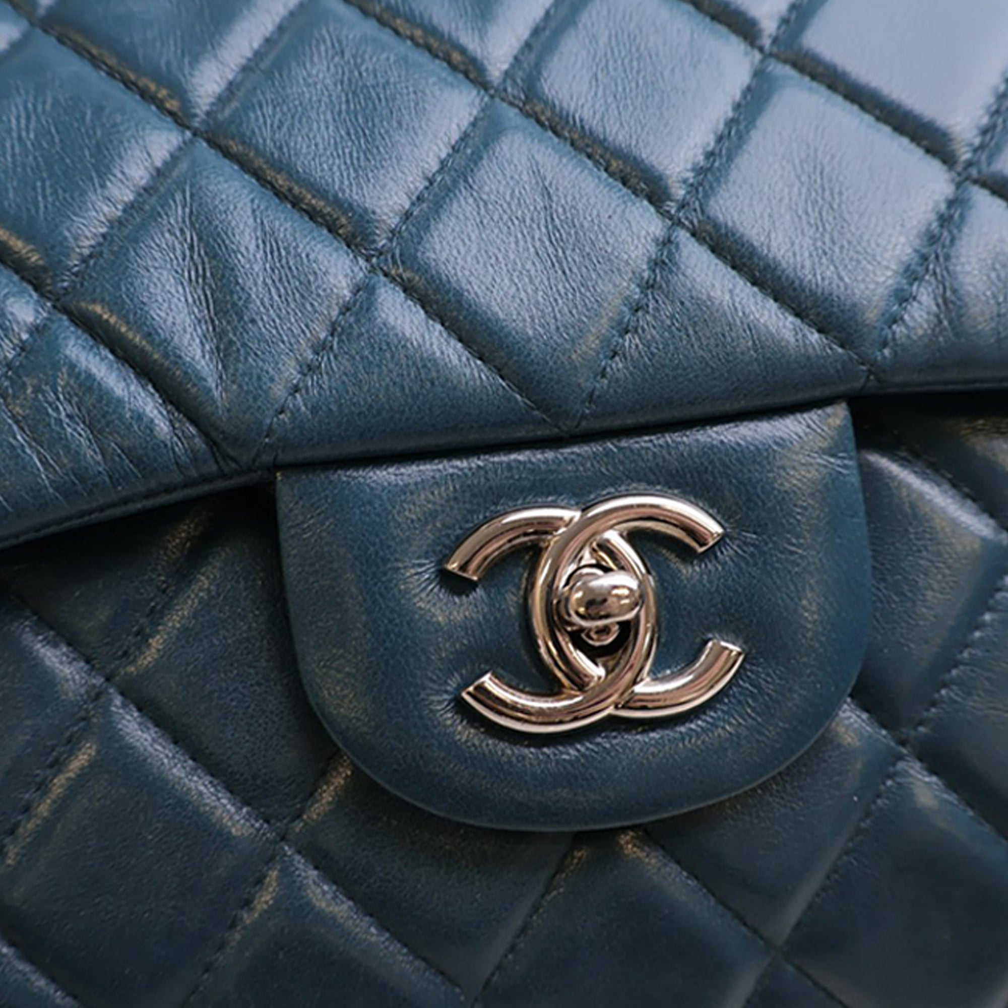 This shoulder bag features a quilted lambskin leather body, leather-woven chain straps, double front flaps with CC turnlock closure, an exterior back slip pocket, and interior zip and slip pockets. Inclusion: Dust bag, box. Retail Price: 9600.00