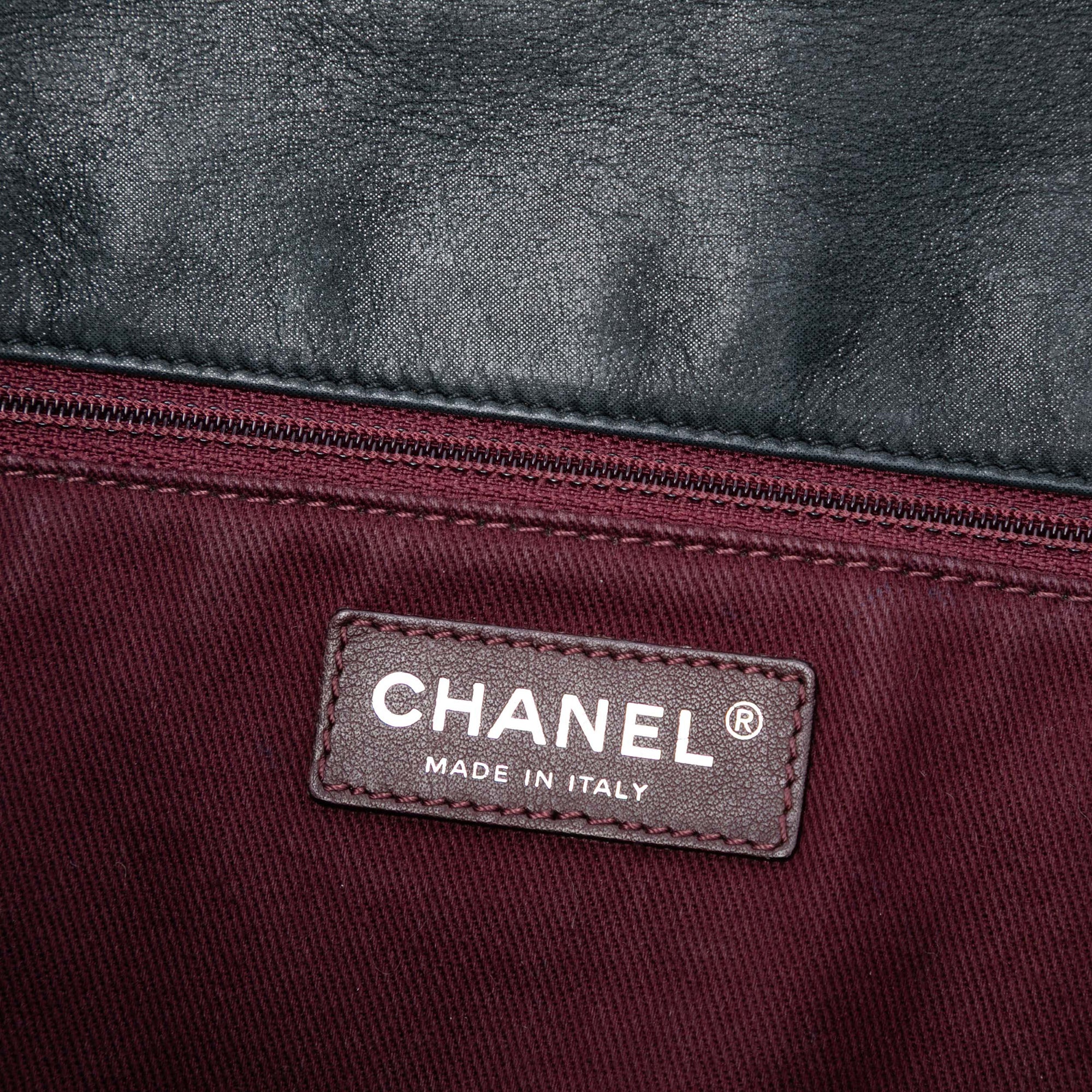 This satchel features a quilted leather body, a flat top handle, a leather-woven chain strap, a front flap with CC turn lock closure, and an interior zip pocket. Retail Price: 3150.00