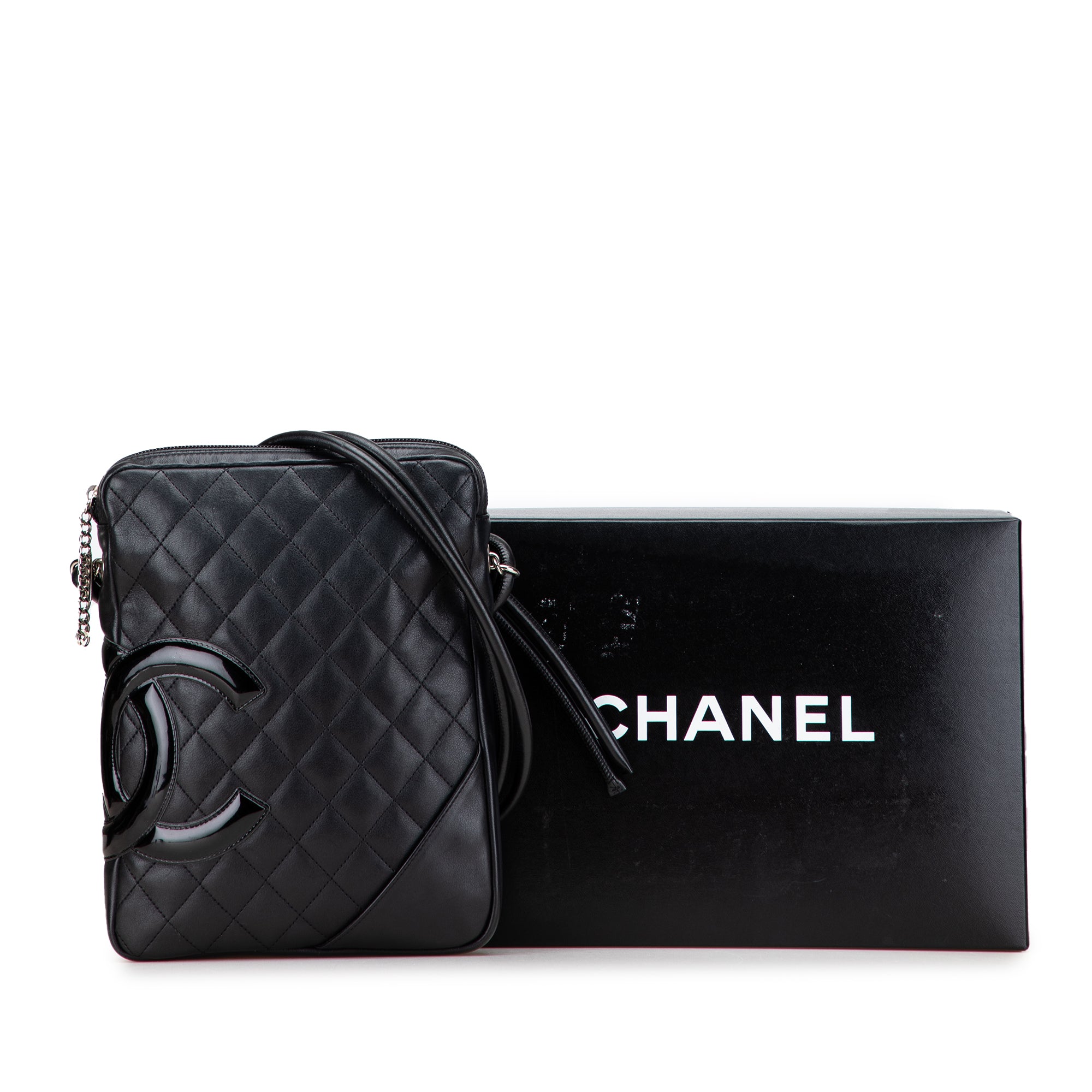 The Cambon Ligne crossbody features a quilted lambskin leather body and interlocking Cs, rolled leather straps, a top zip closure, an exterior back slip pocket, and an interior zip pocket. Inclusion: box. Retail Price: 1895.00