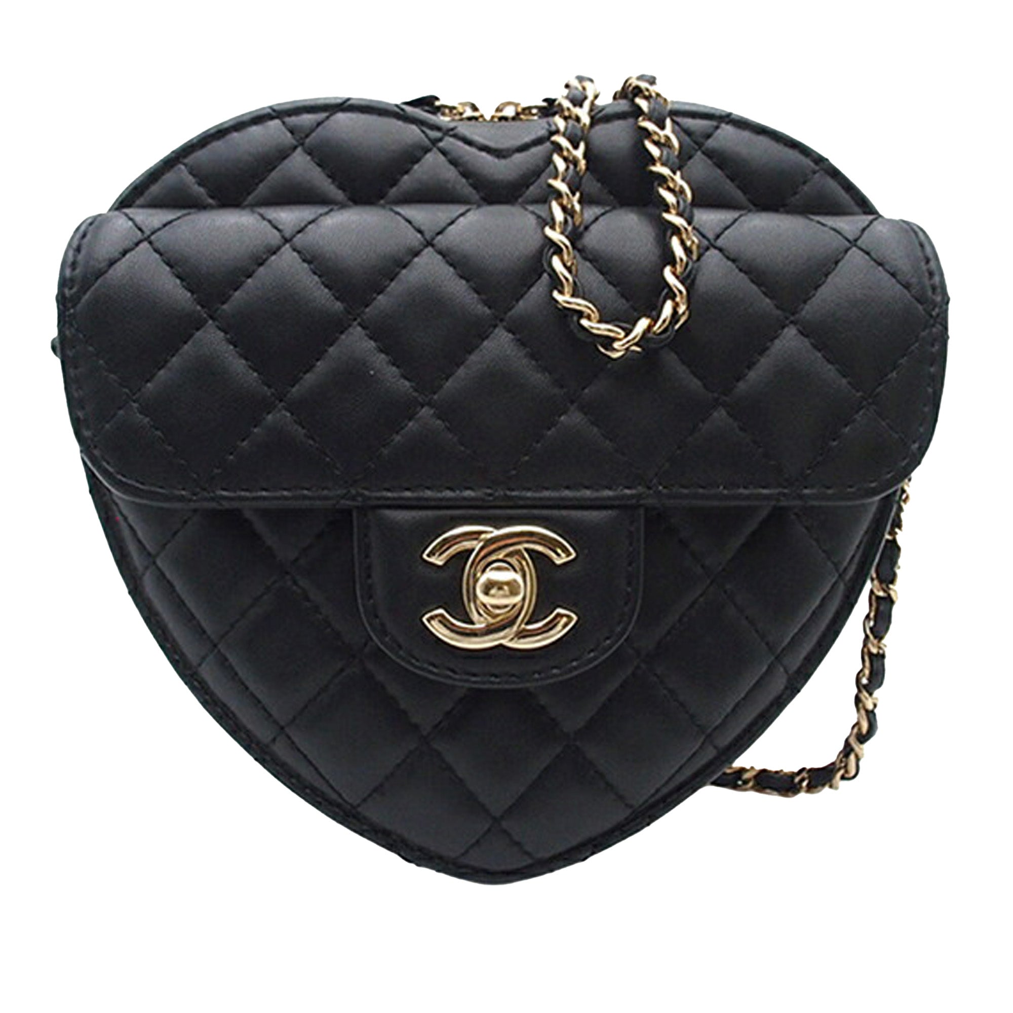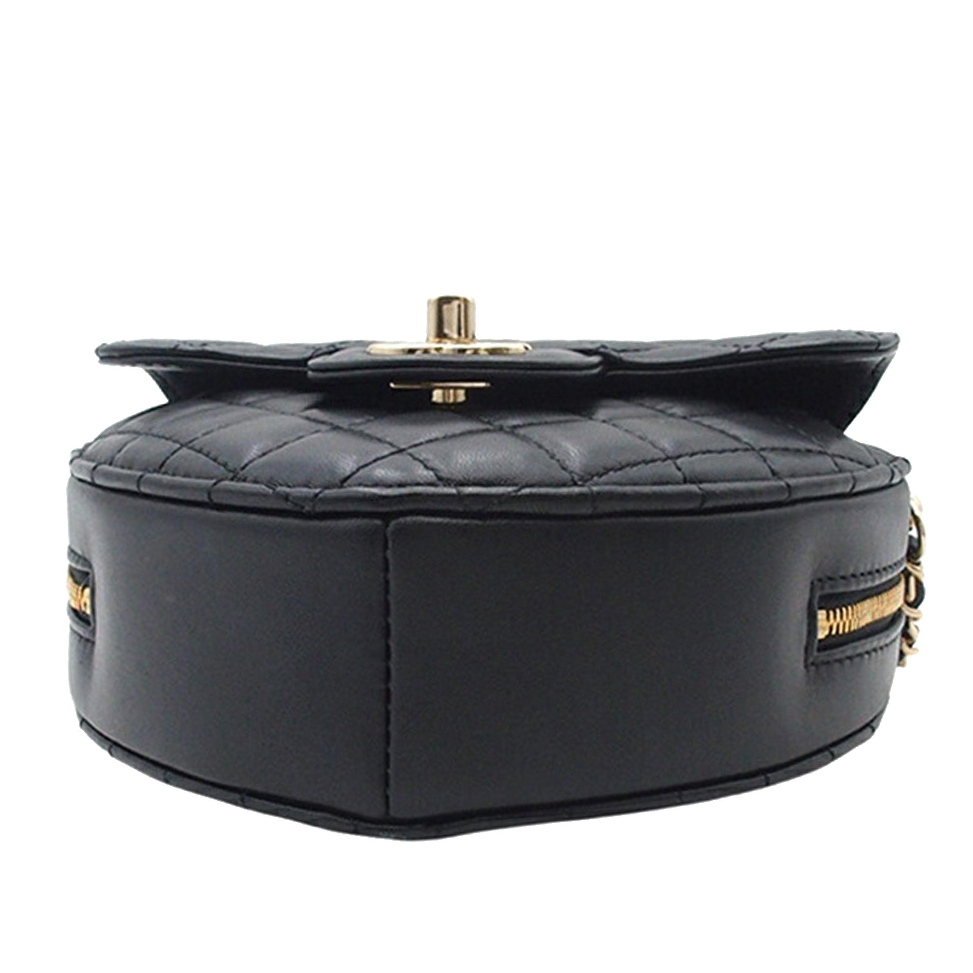 This crossbody bag features a quilted lambskin leather body, a leather woven chain shoulder strap, a top zip closure, an exterior front flap pocket with CC turn-lock closure, an exterior back zip pocket, and interior slip pockets. Inclusion: Dust bag, box. Retail Price: 10200.00