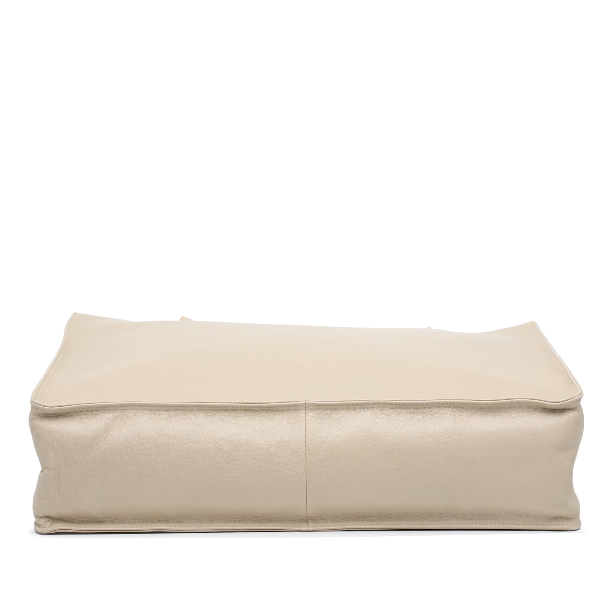 This tote features a lambskin leather body, flat leather straps, a top zip closure, and an interior pocket. Retail Price: 3000.00