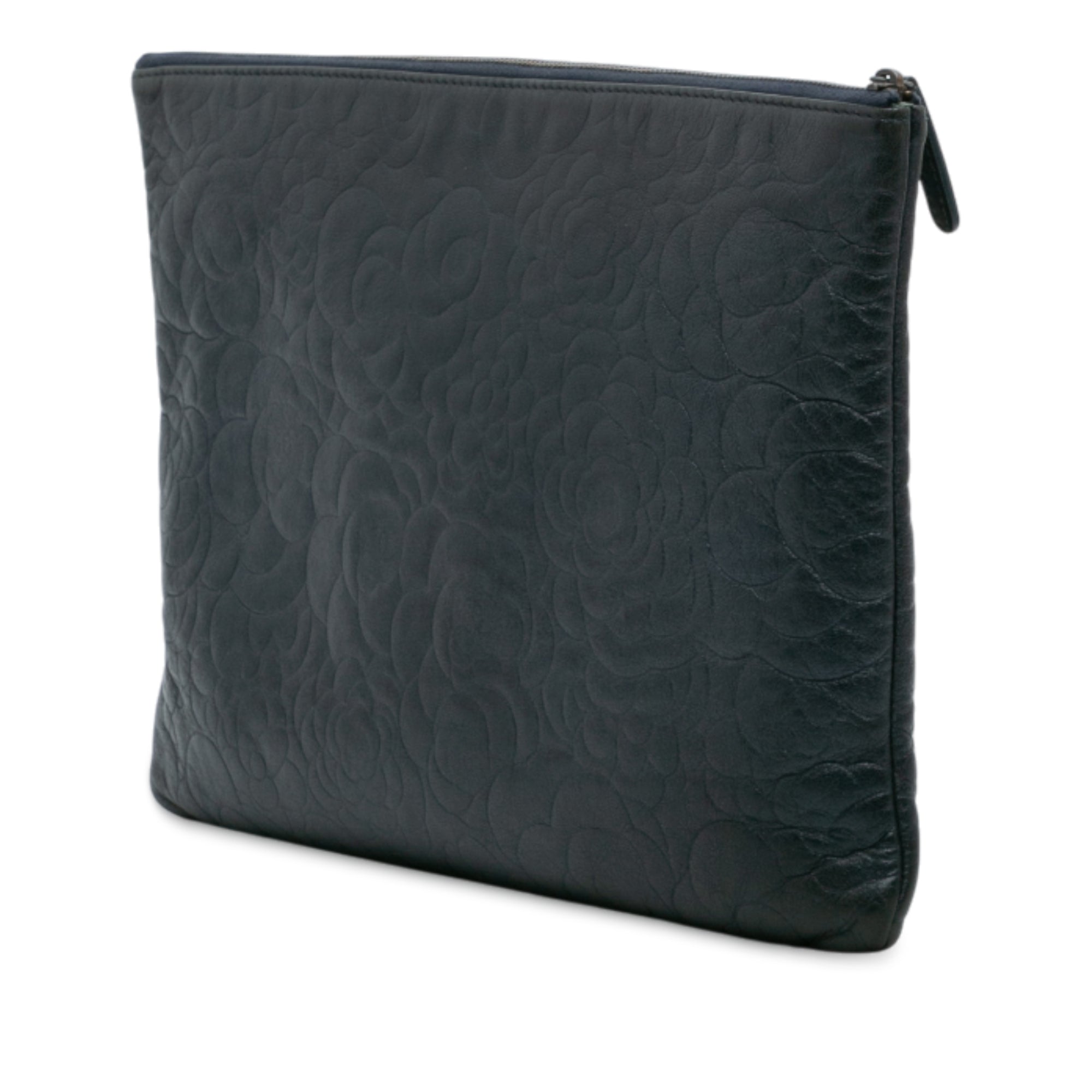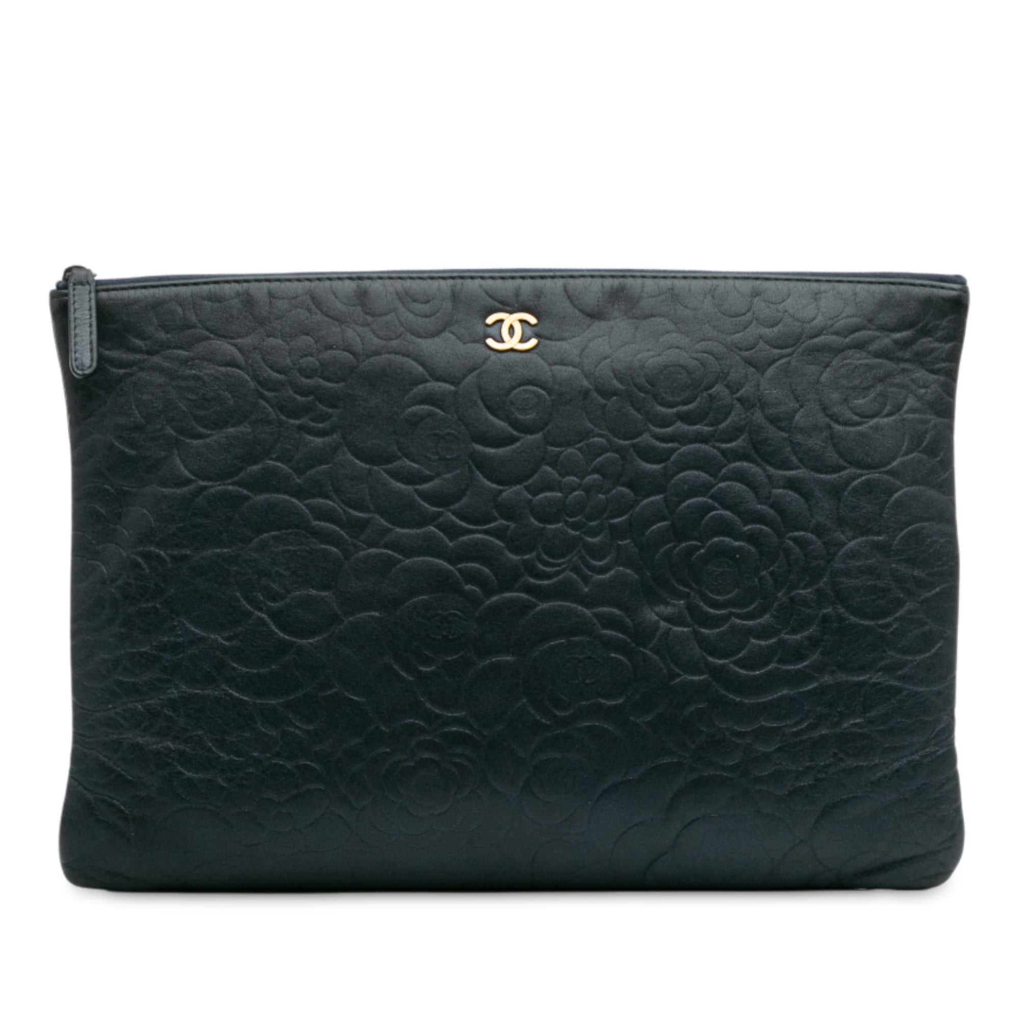 Chanel Large CC Embossed Lambskin Camellia O Case Clutch