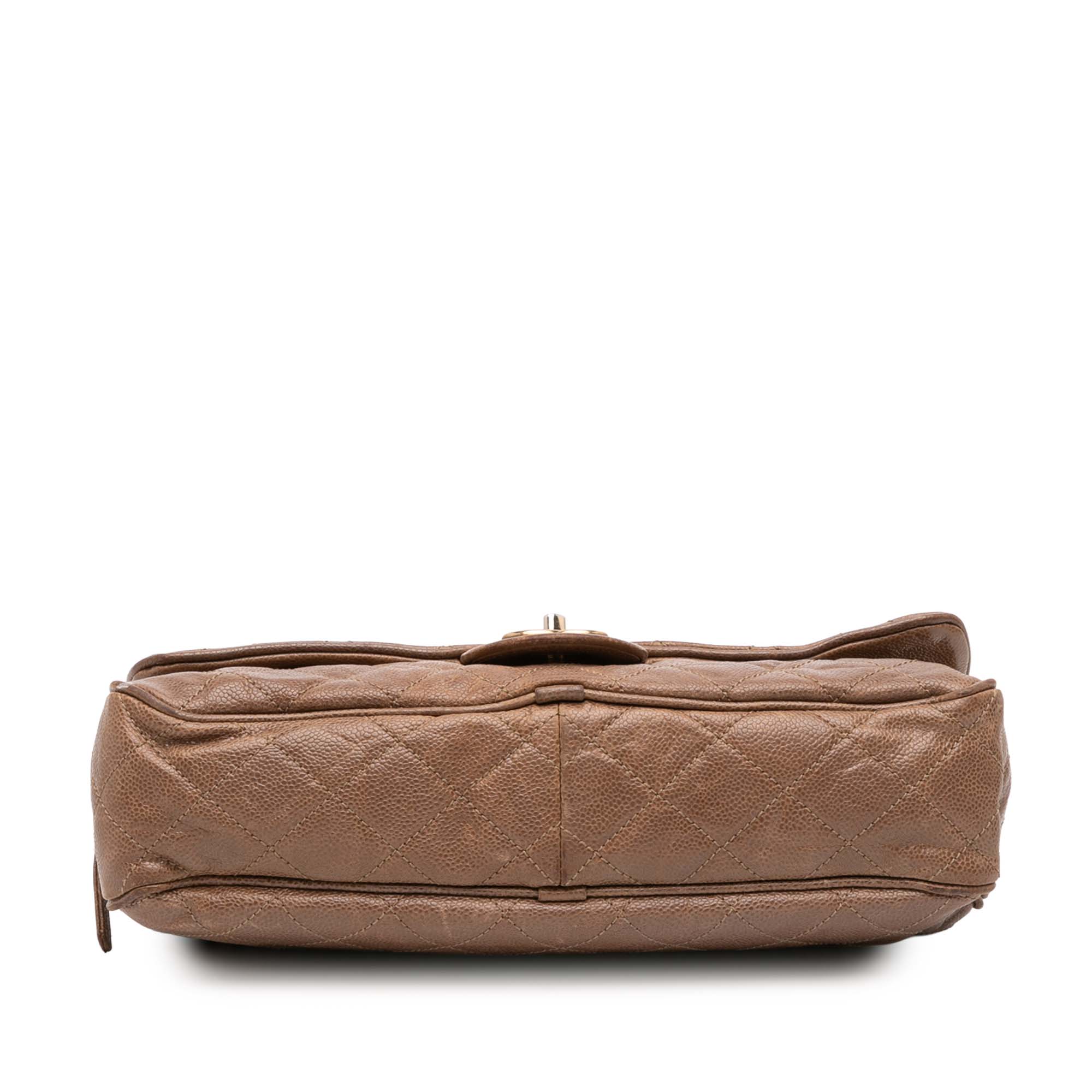 This flap bag features a quilted caviar leather body, a leather-woven chain link strap with leather shoulder guard, a flap with CC turn-lock closure, a top zip closure, and an interior zip pocket. Inclusion: authenticity card. Retail Price: 4800.00