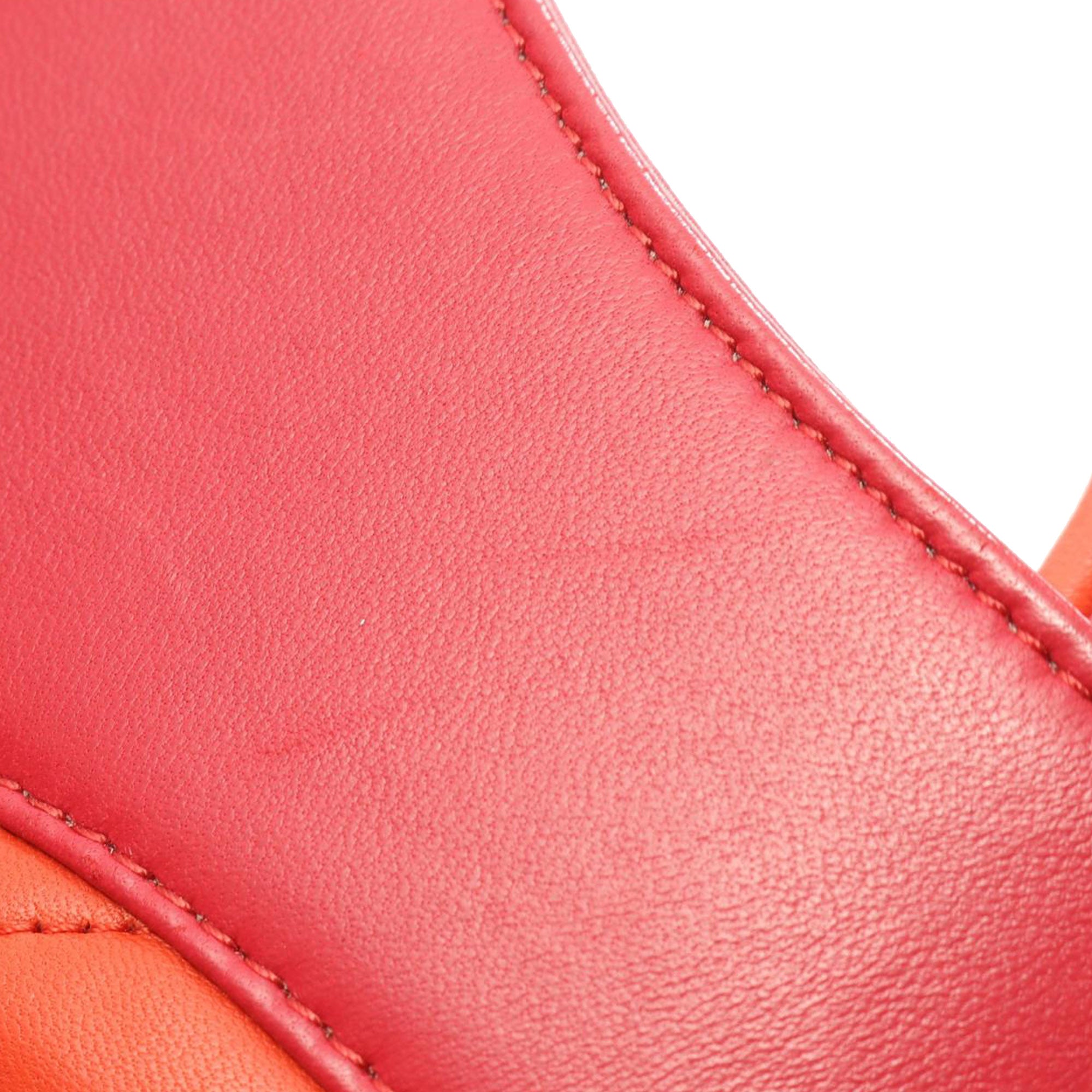This satchel features a lambskin leather body, flat cutout handles, detachable leather straps, an open top with CC turn lock closure, and interior zip pockets. Retail Price: 4400.00