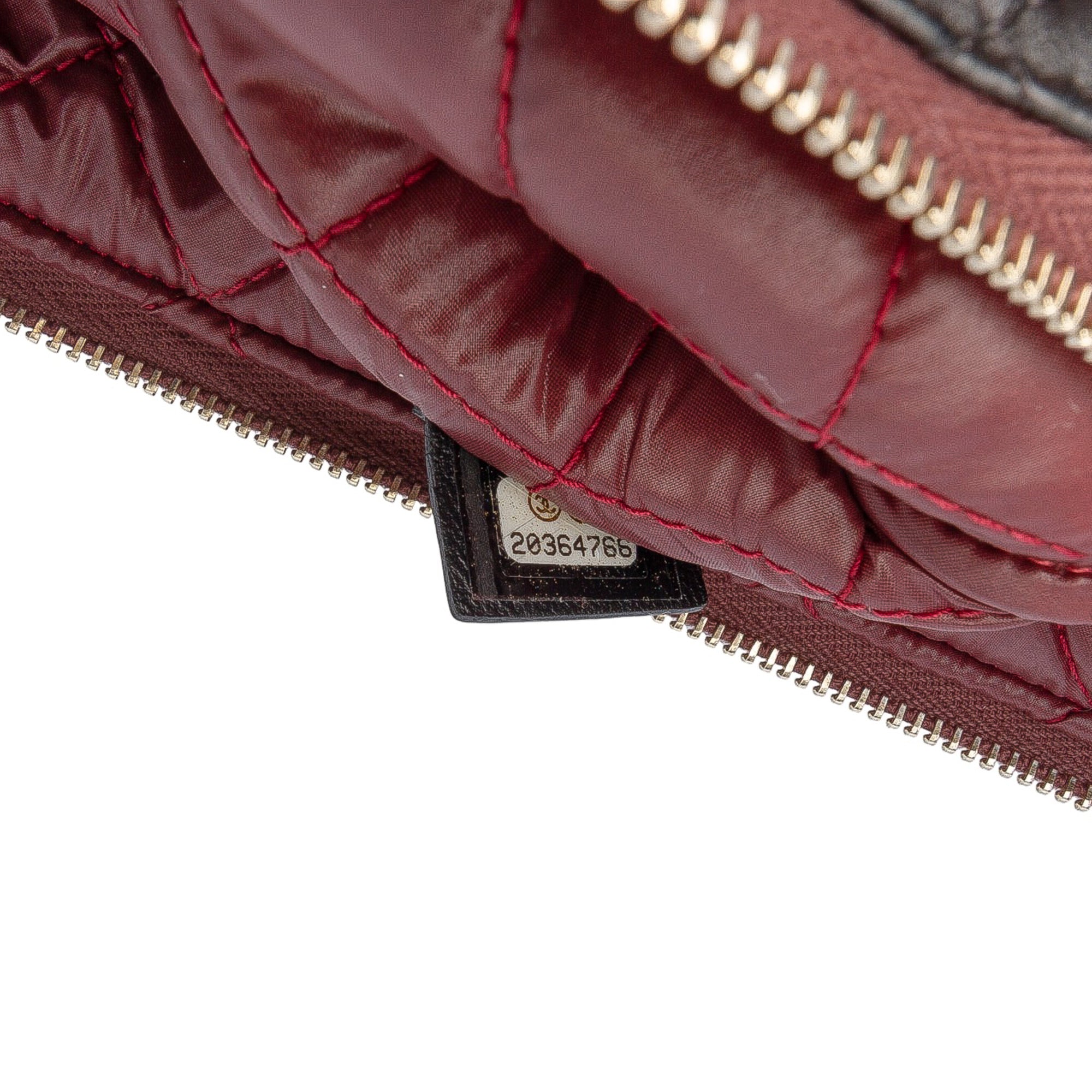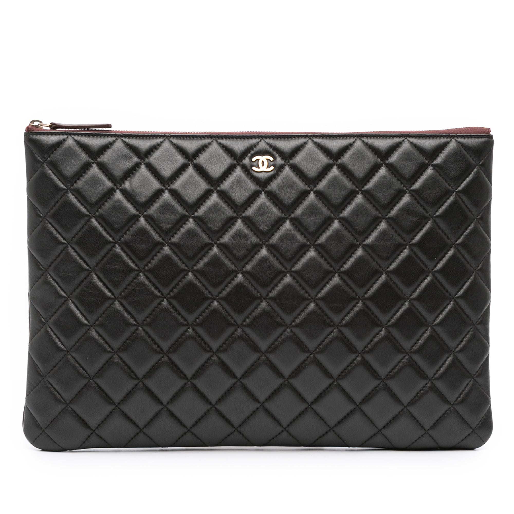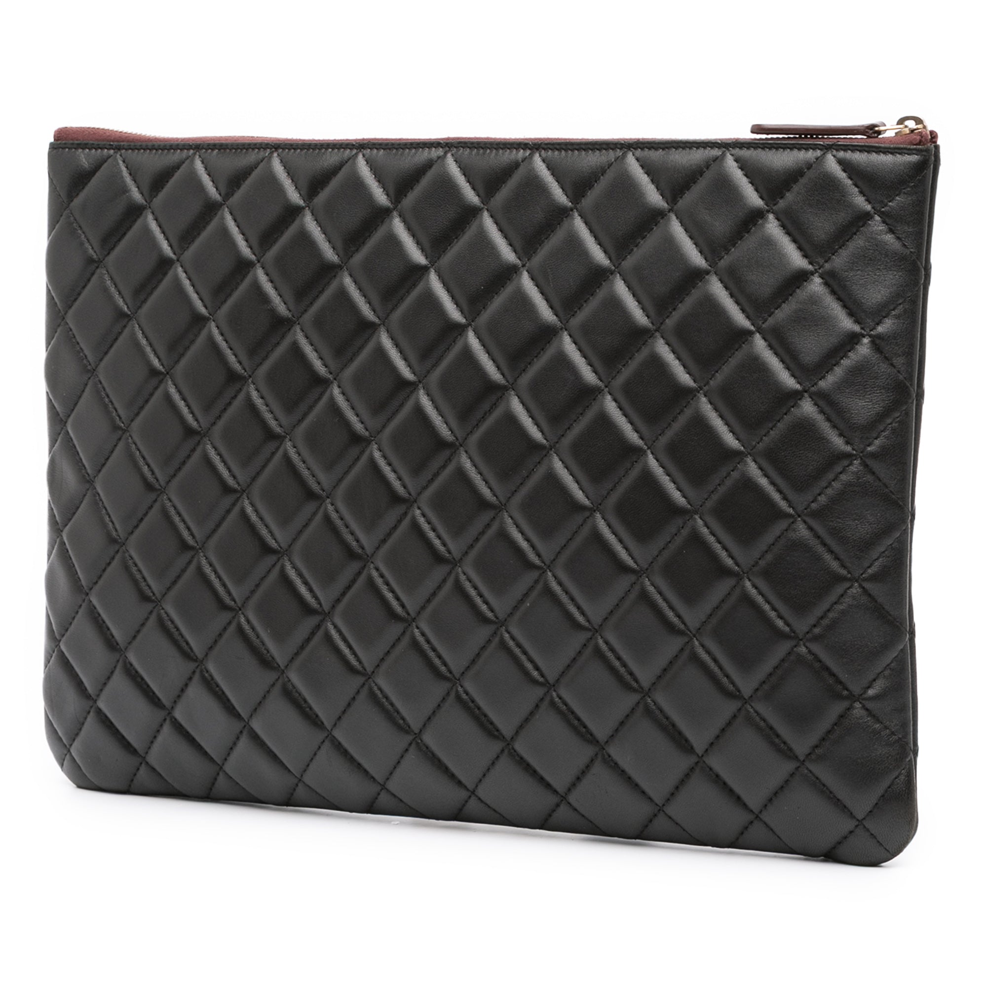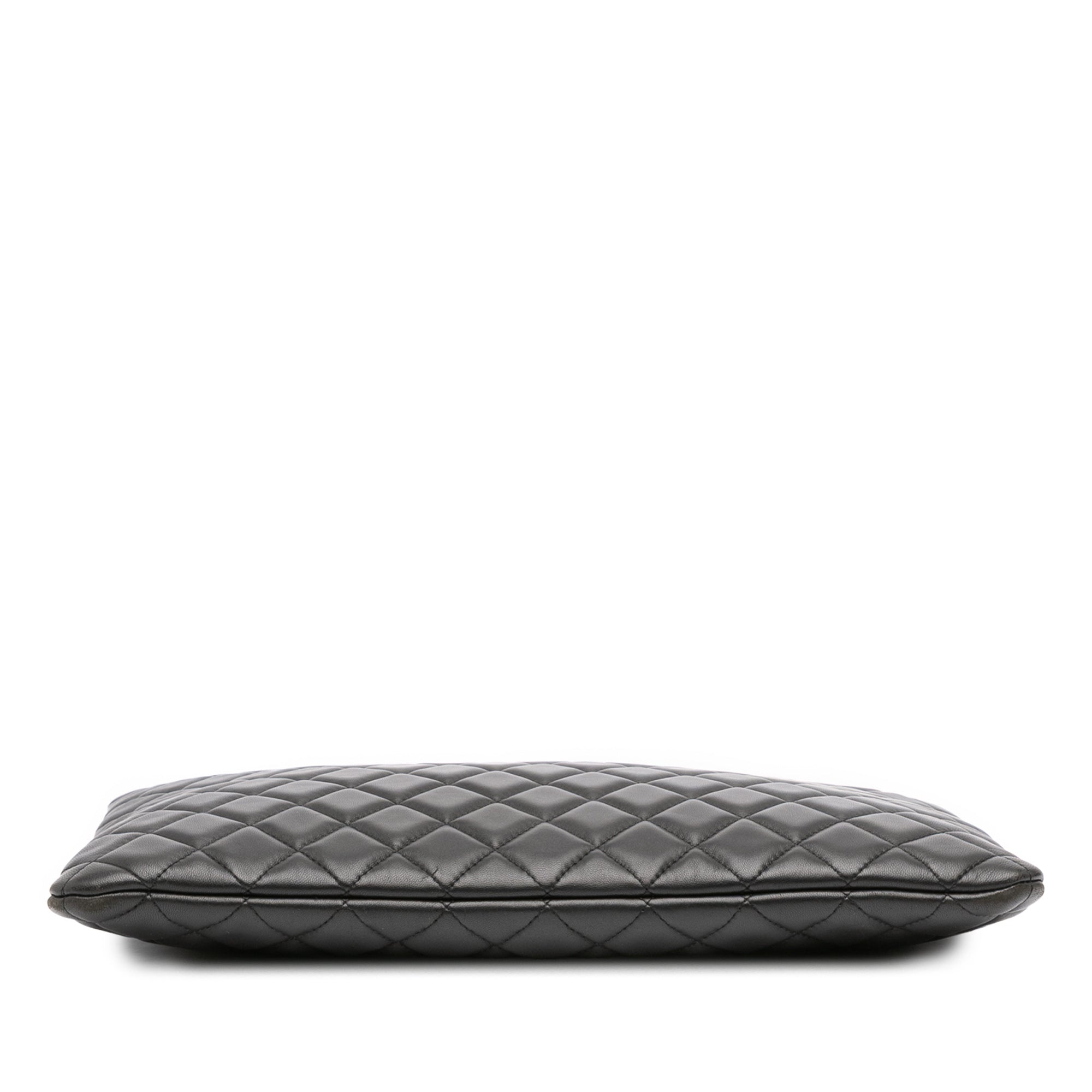 This clutch features a quilted lambskin leather body and a top zip closure. Retail Price: 1535.00