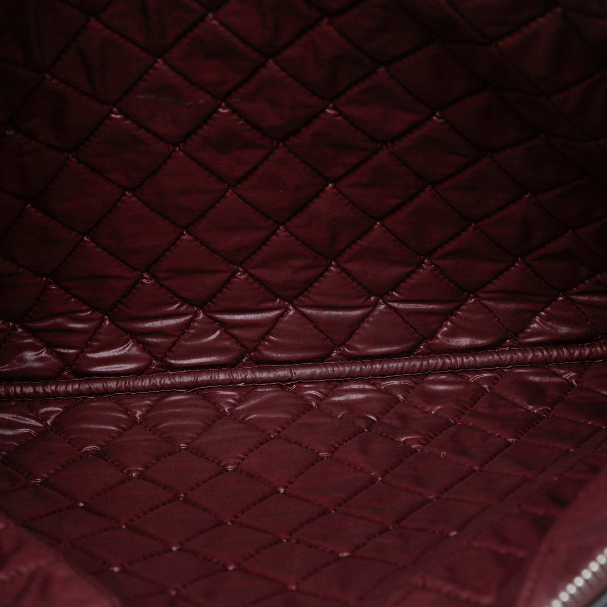 This clutch features a quilted lambskin leather body and a top zip closure. Retail Price: 1535.00