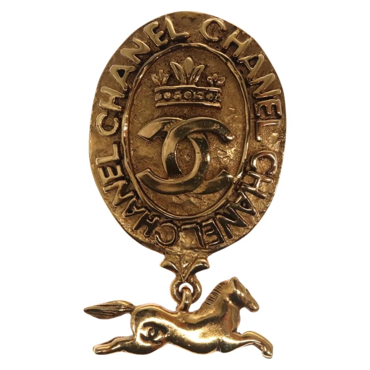 Chanel Logo Brooch Gold Metal Jewelry