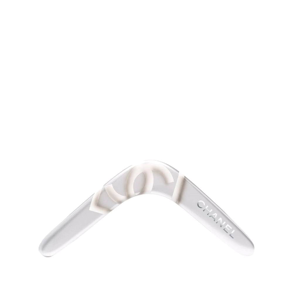 Chanel silver-tone and white plastic 2000s boomerang decorated with a frontal logo print. - Year: 2017