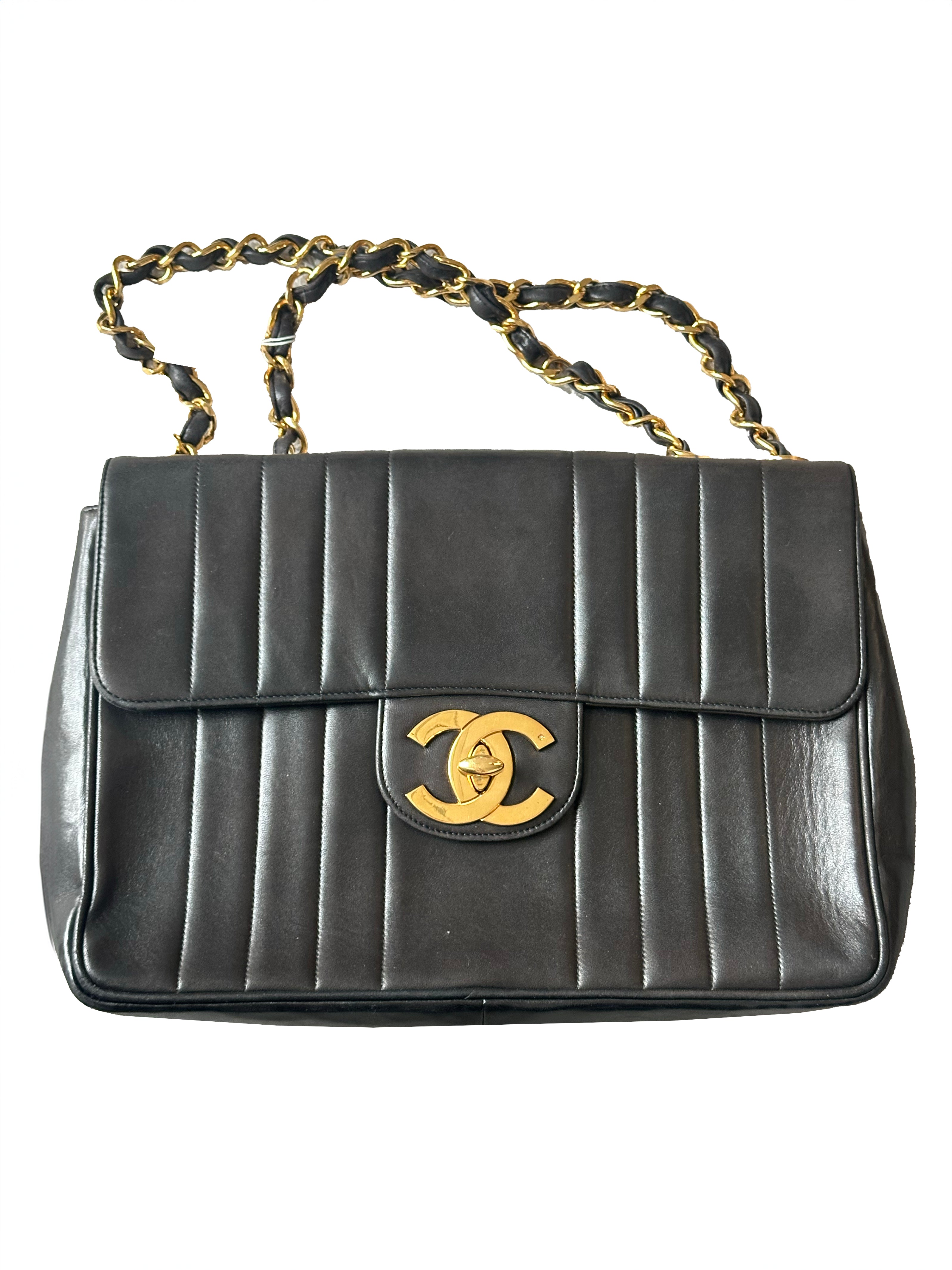 Brand : Chanel Model : Mademoiselle flap shoulder bag Style : Vertical quilt lambskin Dimensions (W x H x D) : 9cm x 24cm x 30cm Serial number : M/a