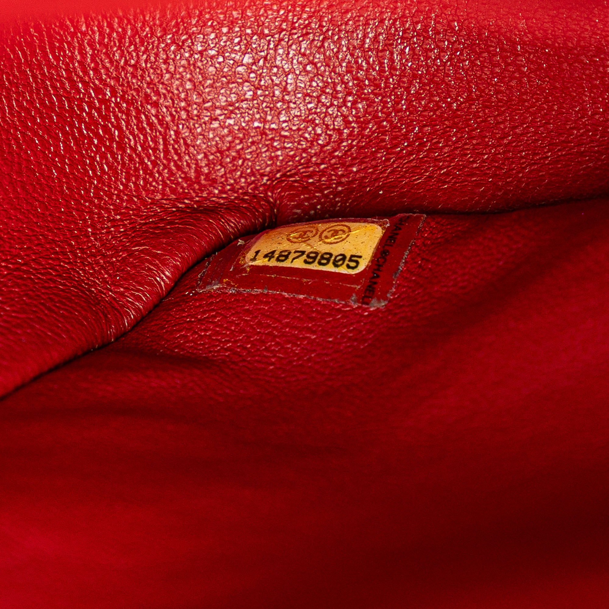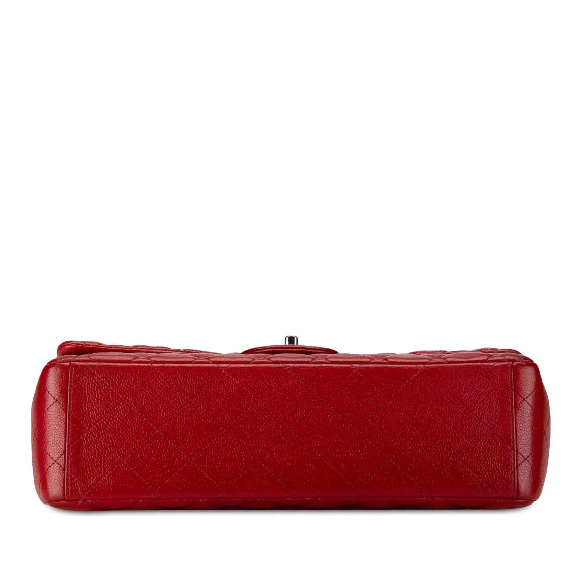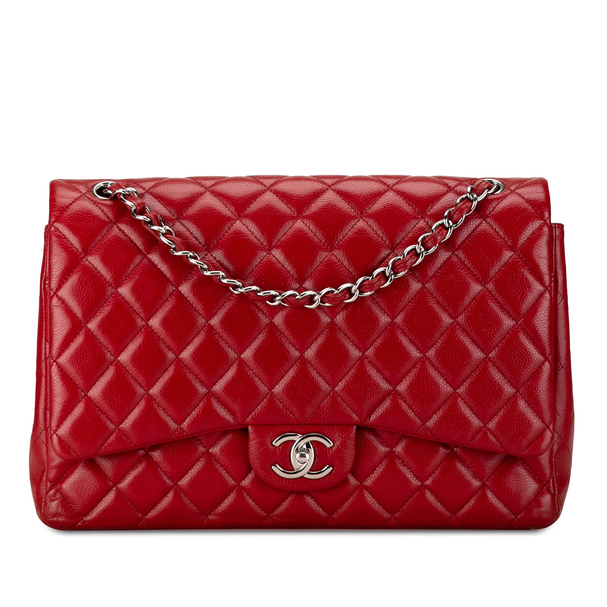 This shoulder bag features a quilted caviar leather body, leather-woven chain straps, double front flaps with interlocking Cs and a twist lock closure, an exterior back slip pocket, and interior zip and slip pockets. Retail Price: 11500.00