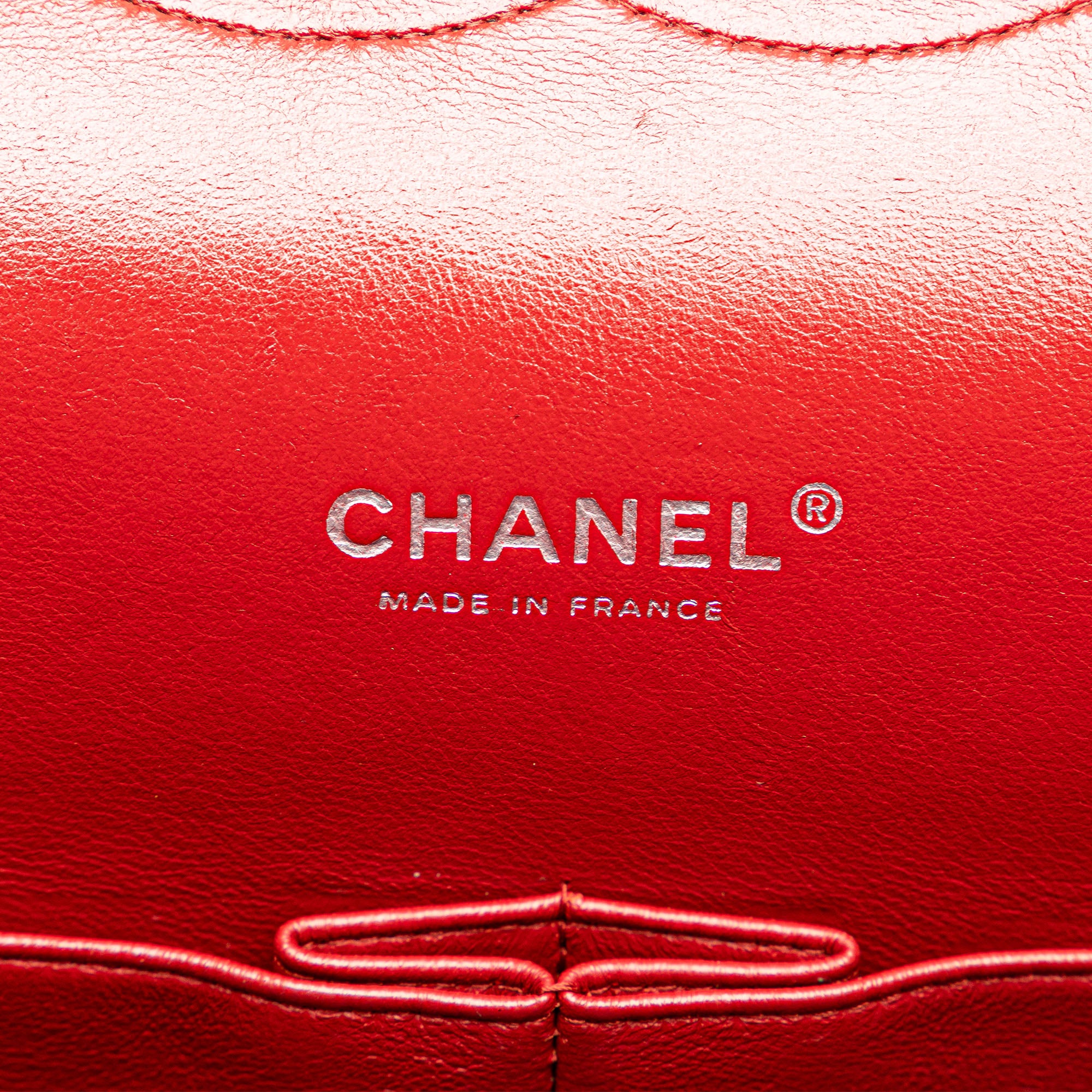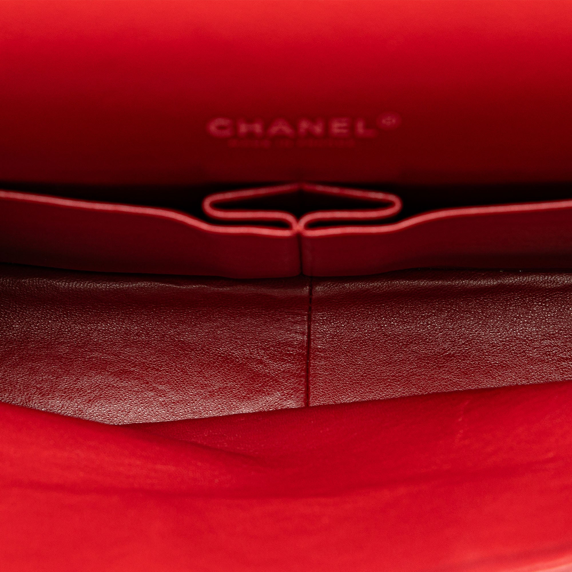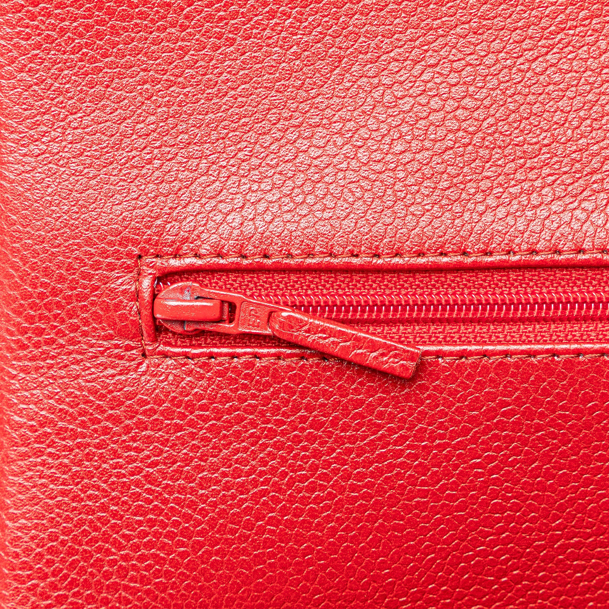 This shoulder bag features a quilted caviar leather body, leather-woven chain straps, double front flaps with interlocking Cs and a twist lock closure, an exterior back slip pocket, and interior zip and slip pockets. Retail Price: 11500.00