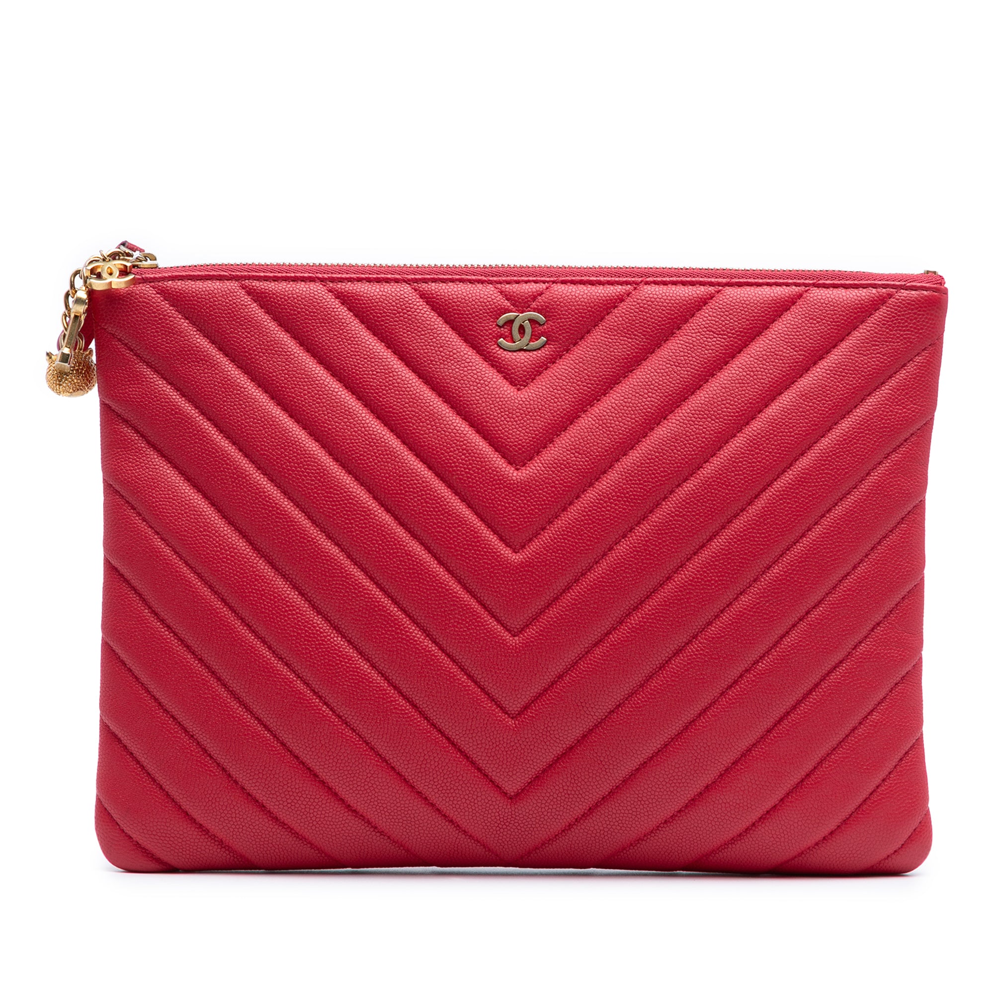 Chanel Medium Chevron Caviar Ancient Greek Charms O Case Clutch