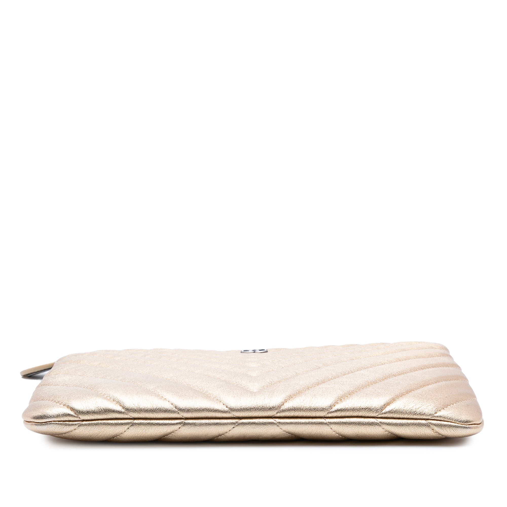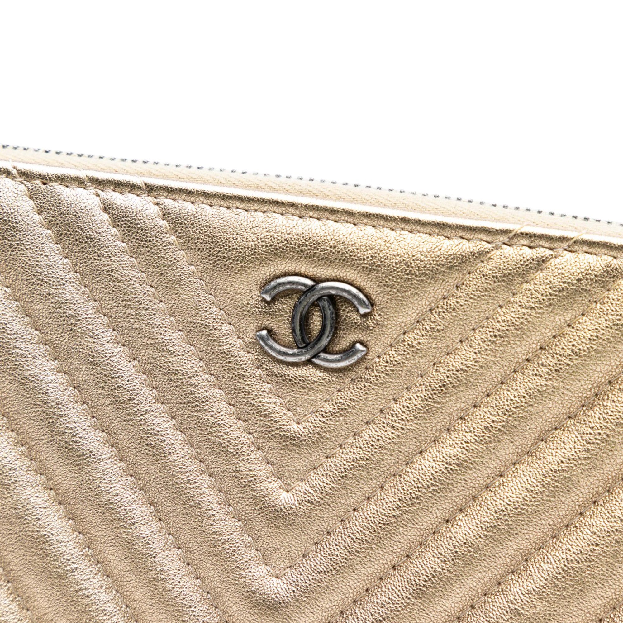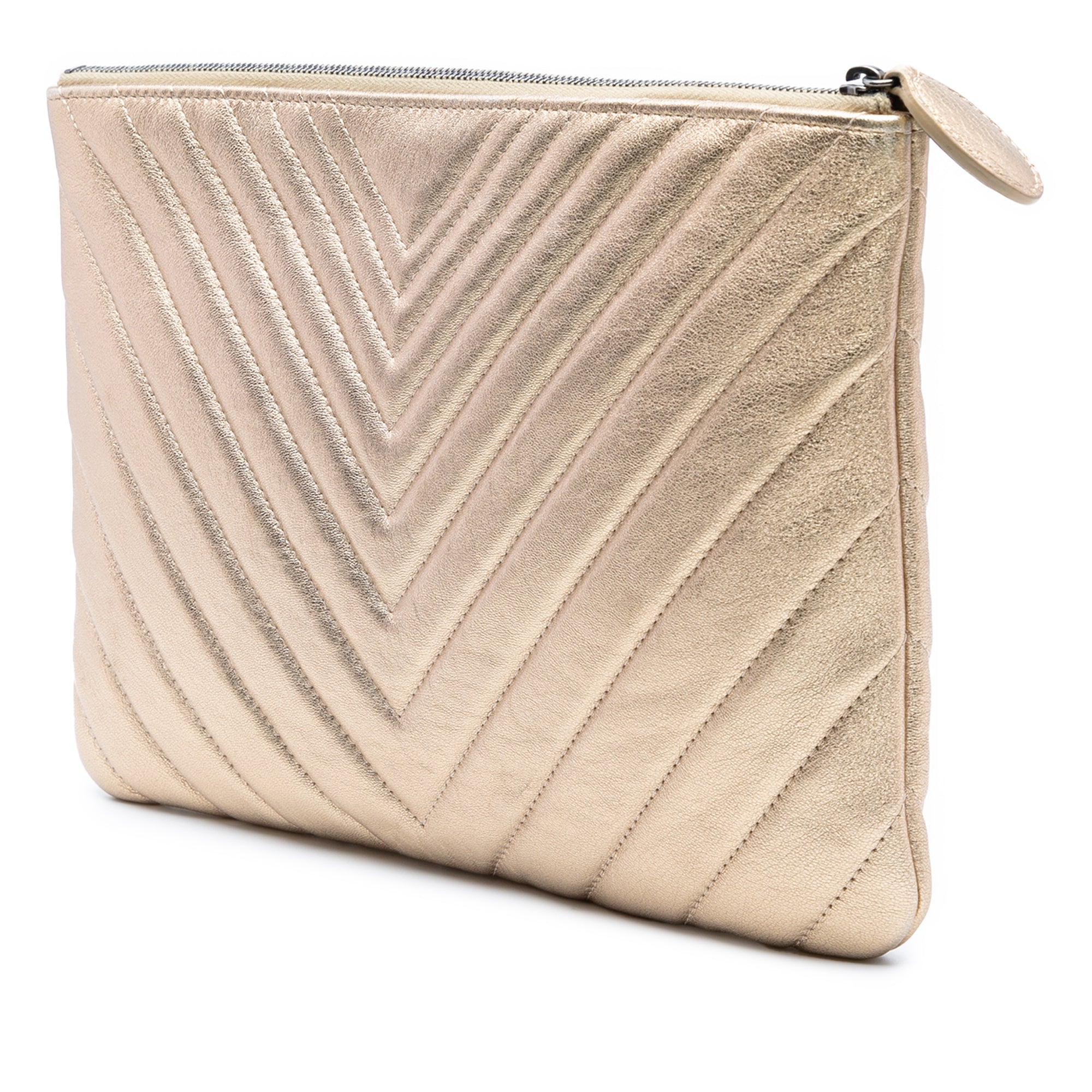 Chanel Medium Chevron Metallic Calfskin O Case Clutch