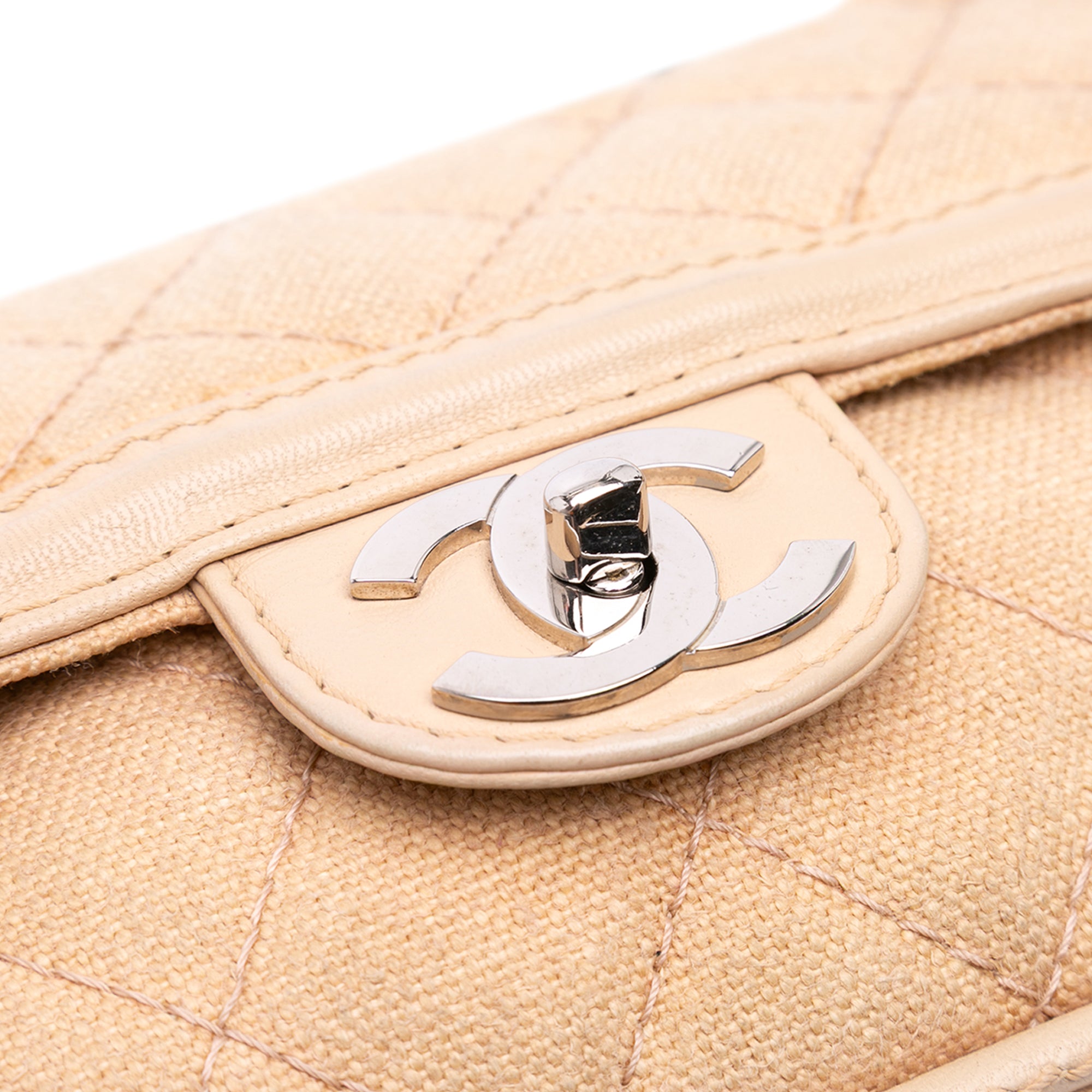 Chanel Medium Classic Canvas Lambskin Trimmed Double Flap