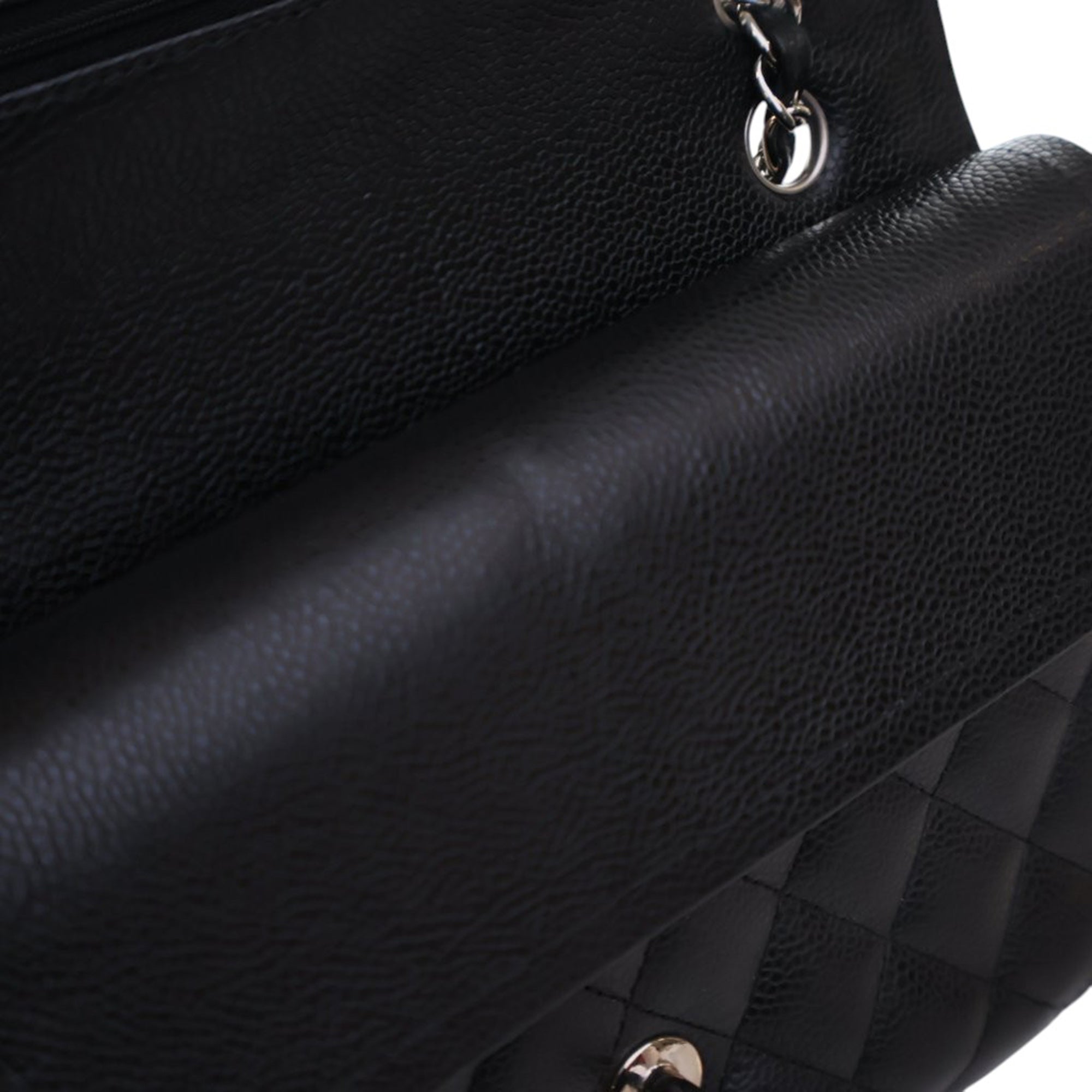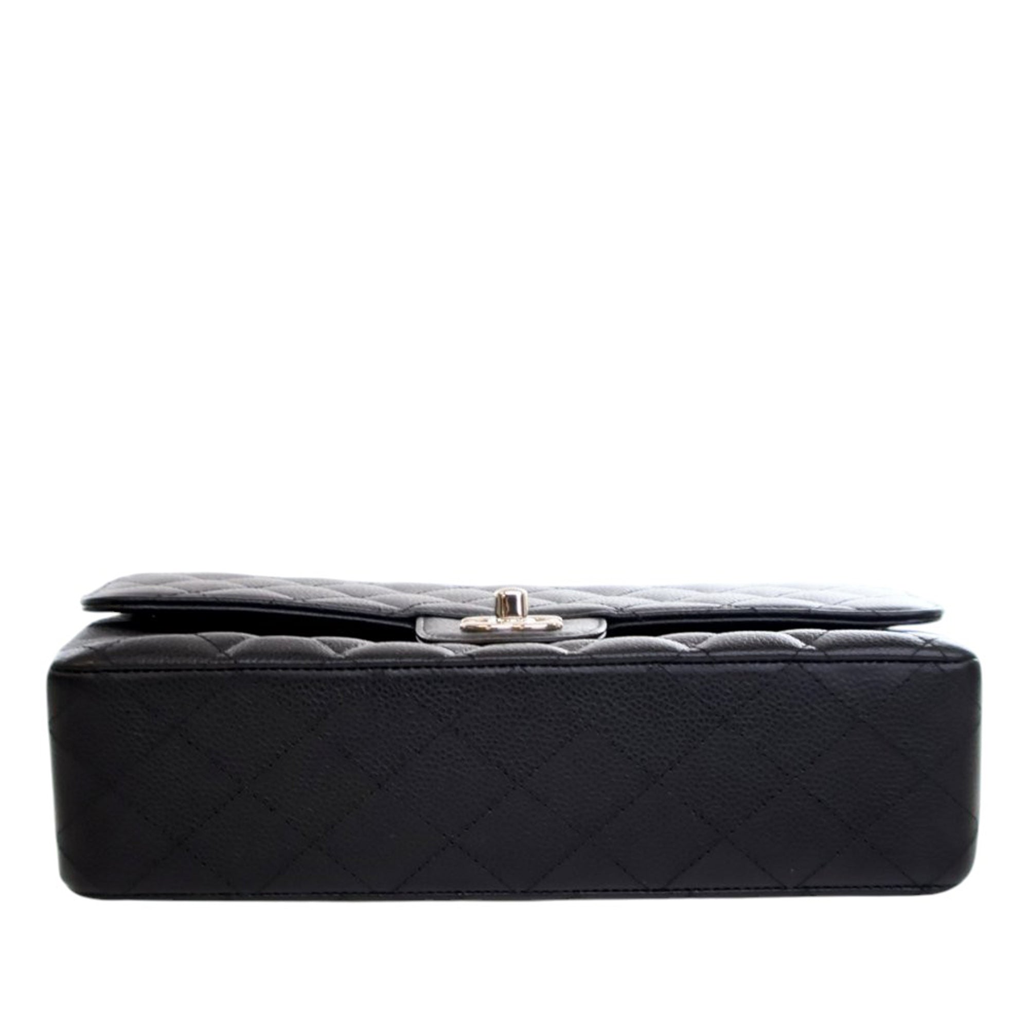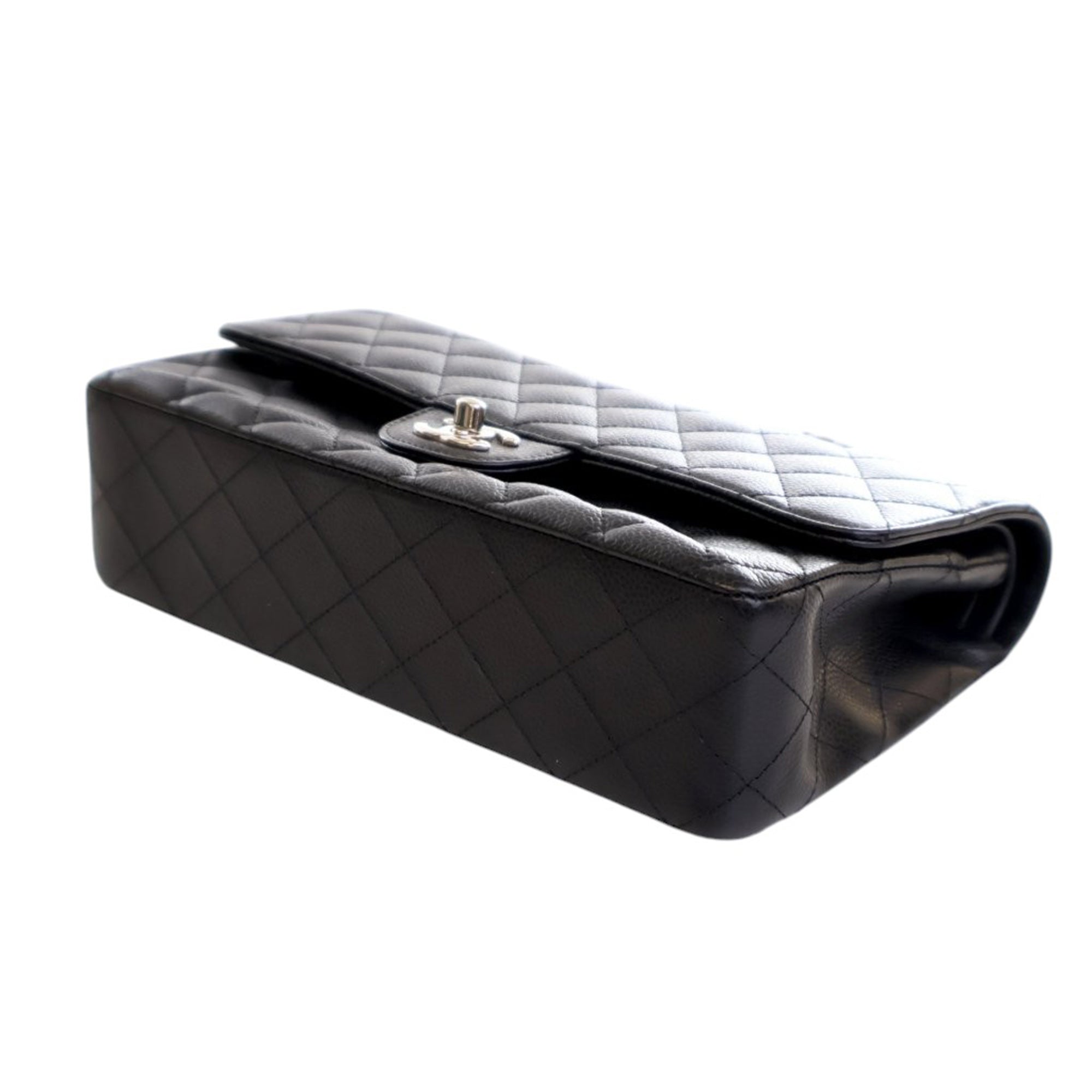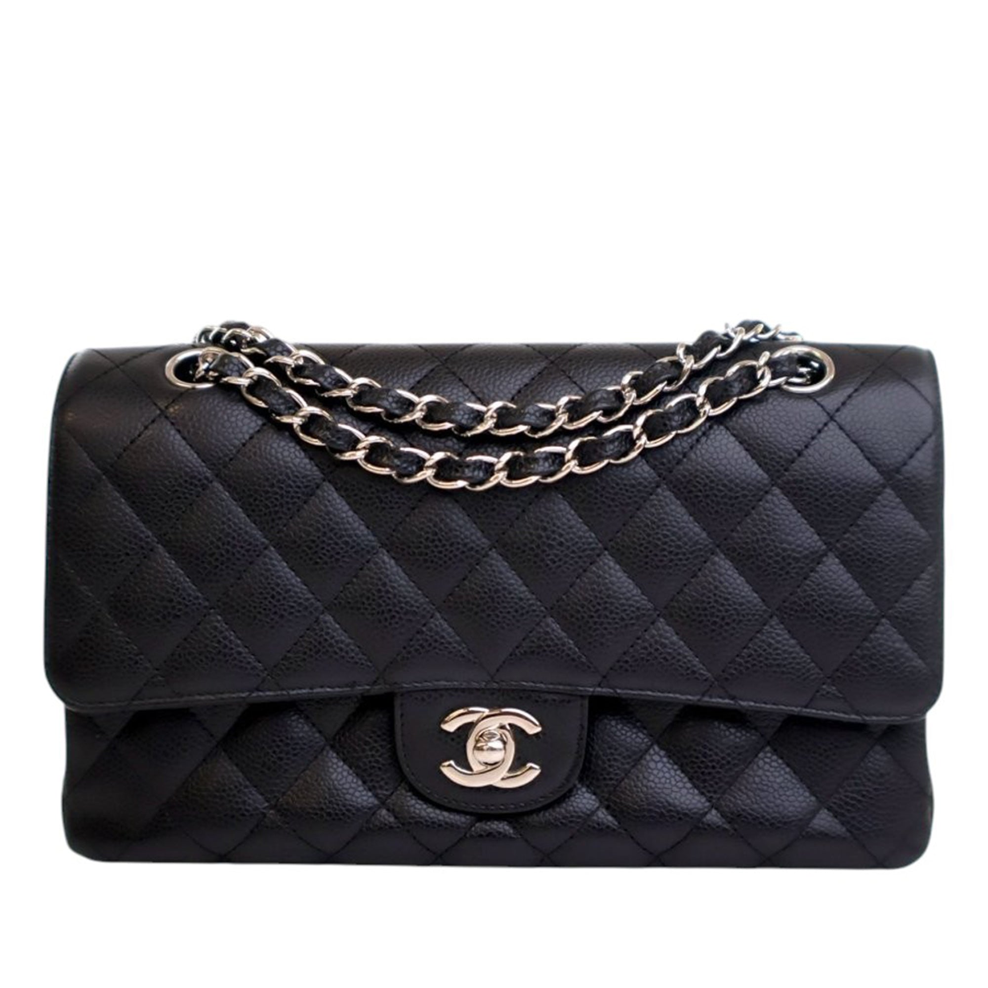 This shoulder bag features a quilted caviar leather body, an exterior back slip pocket, leather woven chain straps, double front flaps with interlocking Cs and a twist lock closure, and interior zip and slip pockets. Inclusion: Dust bag, authenticity card. Retail Price: 10200.00