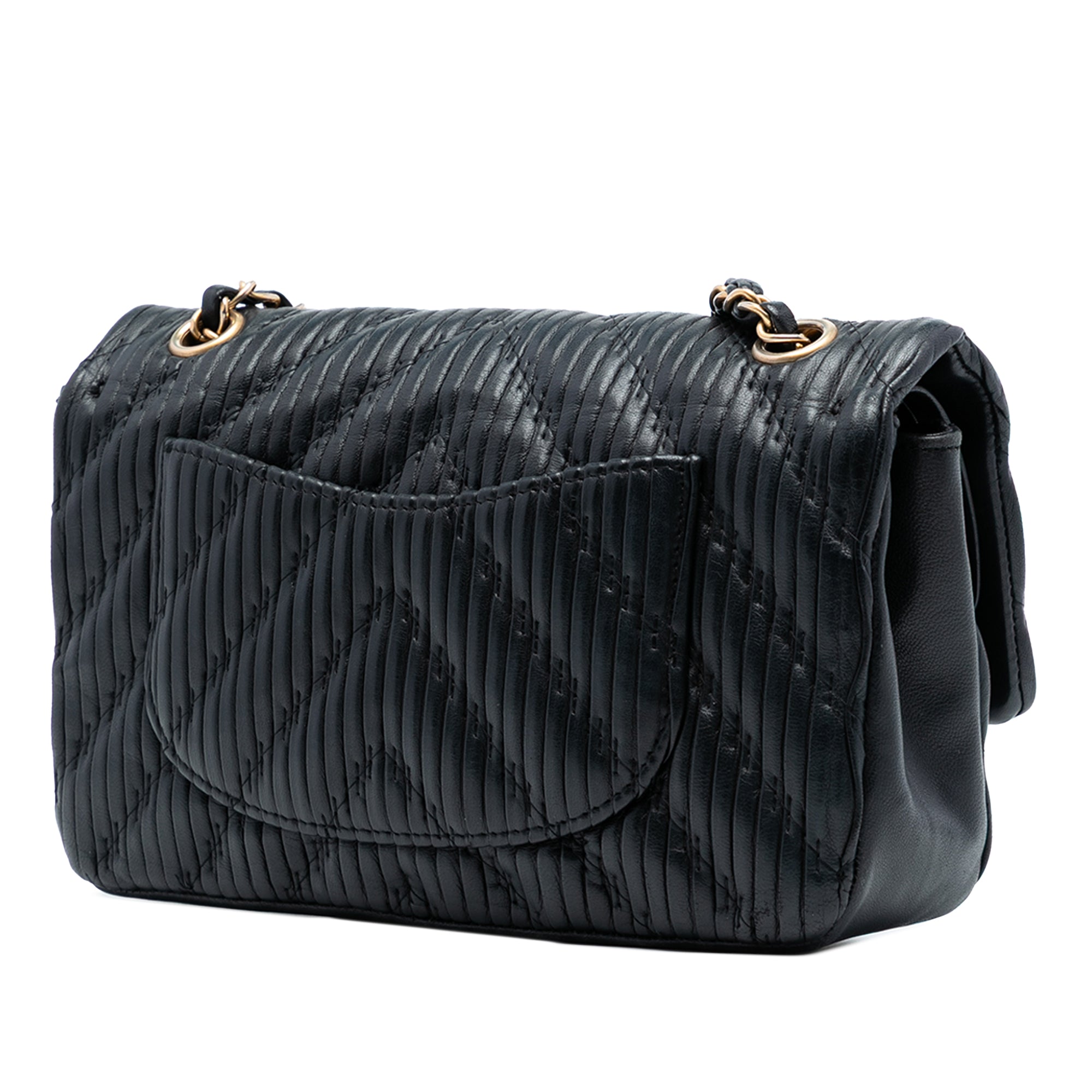 Chanel Medium Classic Chevron Calfskin Pleated Double Flap Secondhand