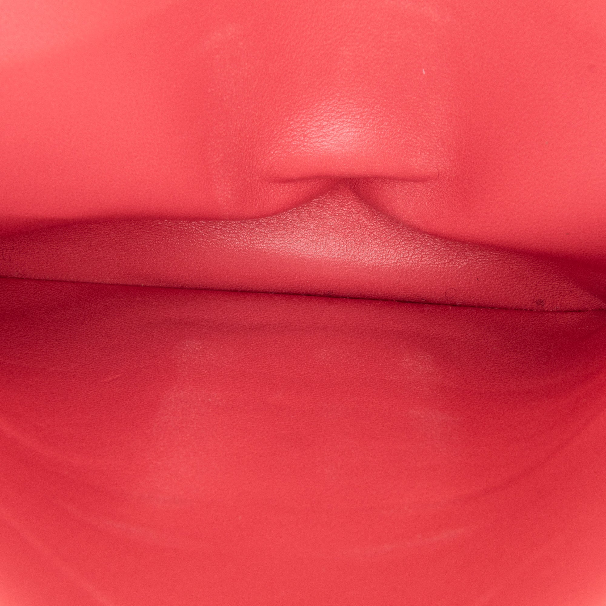This shoulder bag features a quilted lambskin leather body, a leather woven chain shoulder strap, front flaps with interlocking Cs and twist lock closure, an exterior back slip pocket, and interior zip and slip pockets. Retail Price: 8800.00
