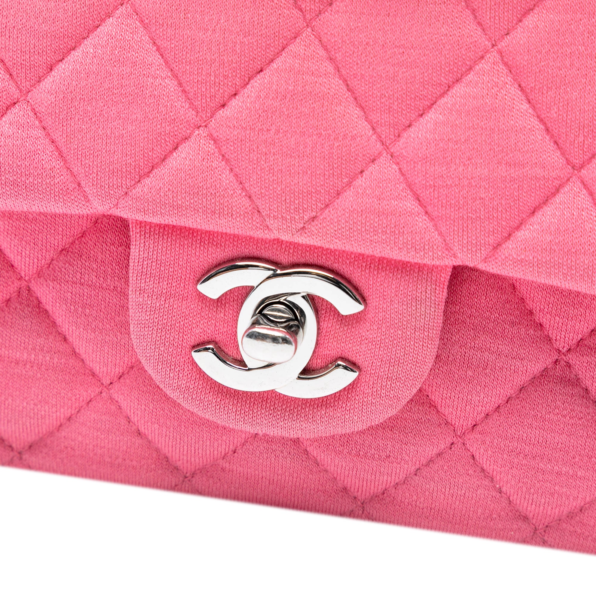 This shoulder bag features a quilted jersey body, cotton-woven chain shoulder straps, double front flaps with CC turn-lock closure, an exterior back slip pocket, and interior zip and slip pockets. Inclusion: authenticity card. Retail Price: 10800.00