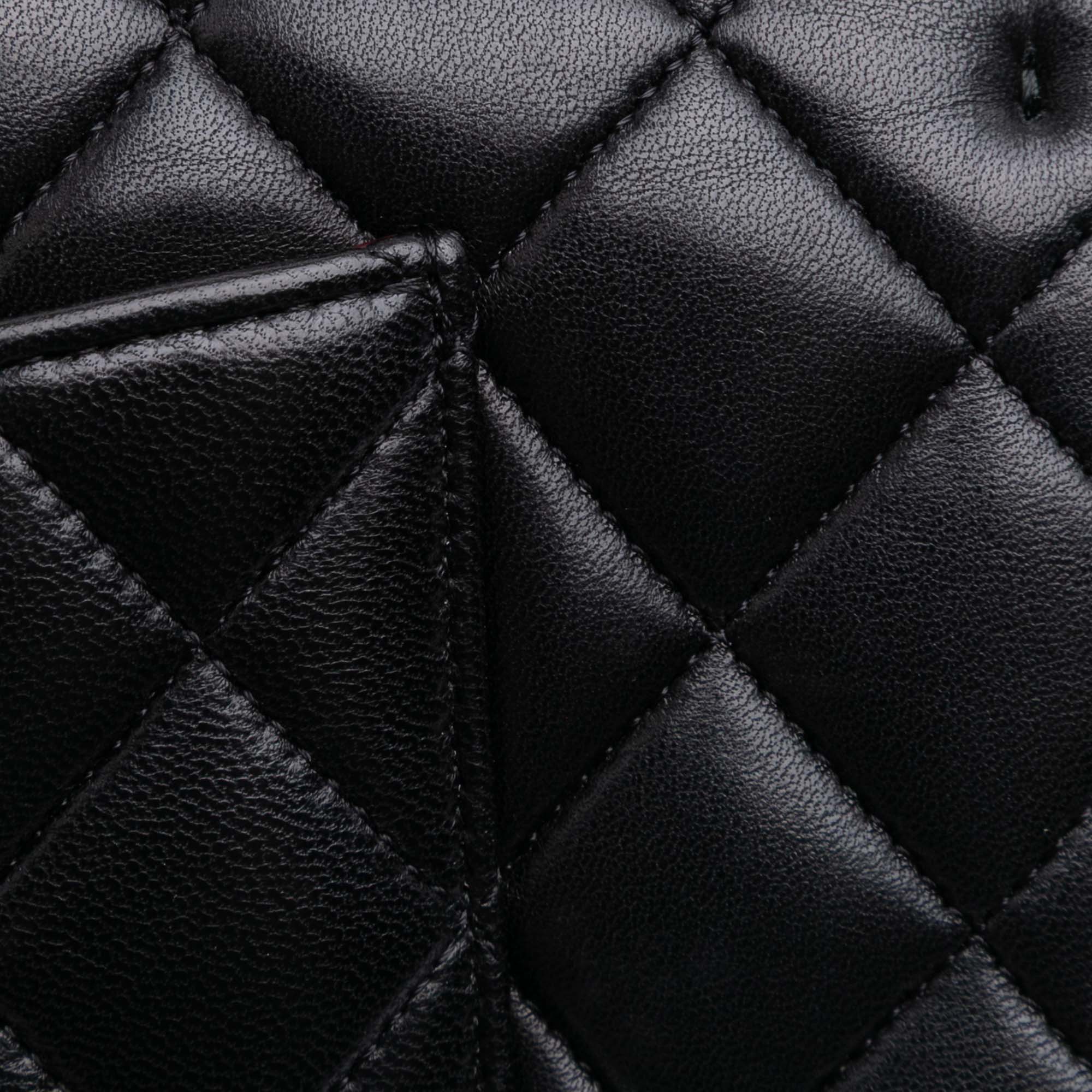 This shoulder bag features a quilted lambskin body, a back exterior slip pocket, leather woven chain straps, double front flaps with interlocking Cs and a twist lock closure, and interior zip and slip pockets. Inclusion: Dust bag. Retail Price: 10650.00
