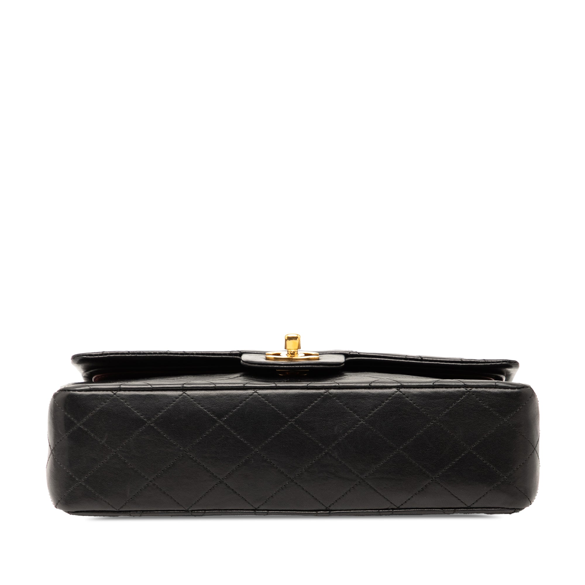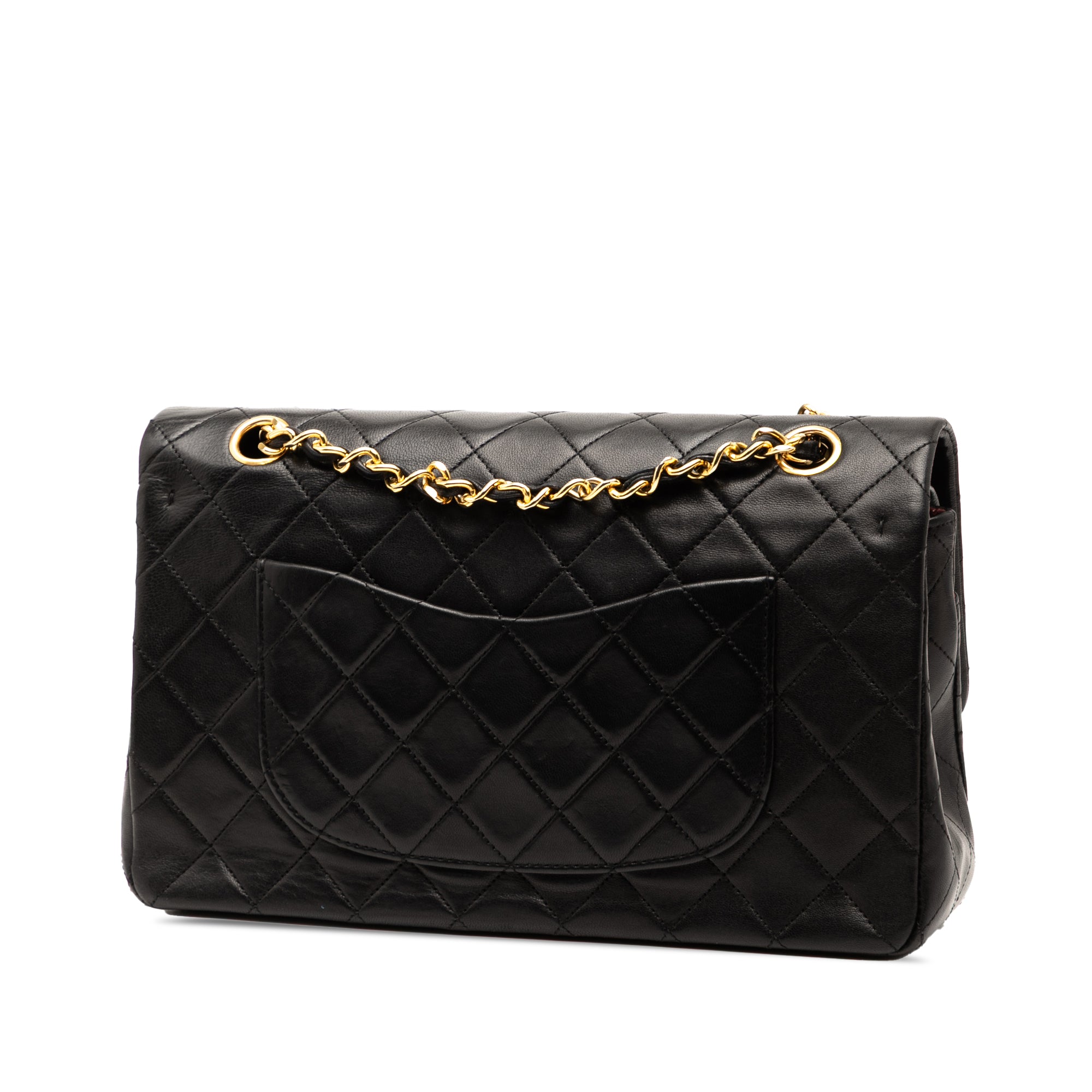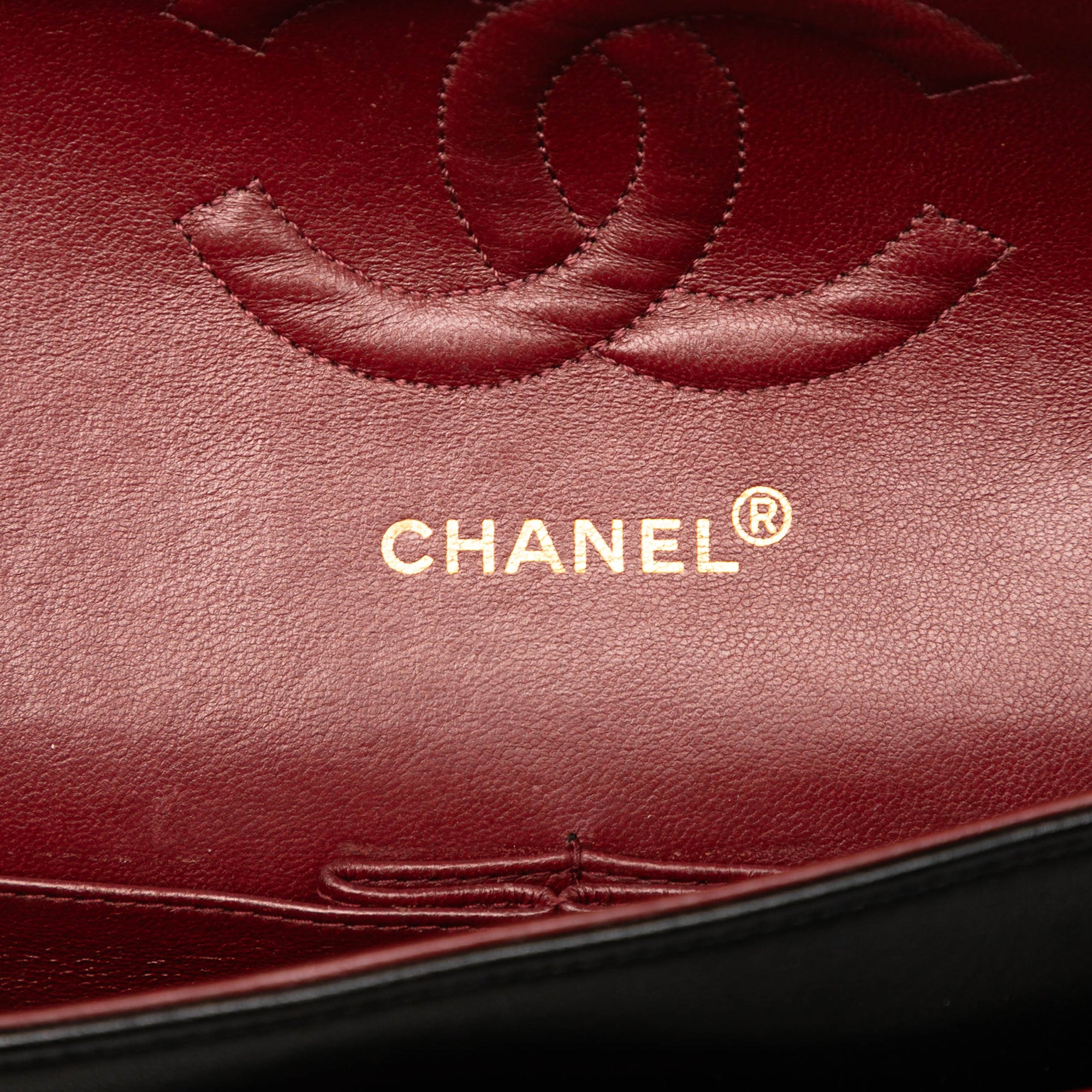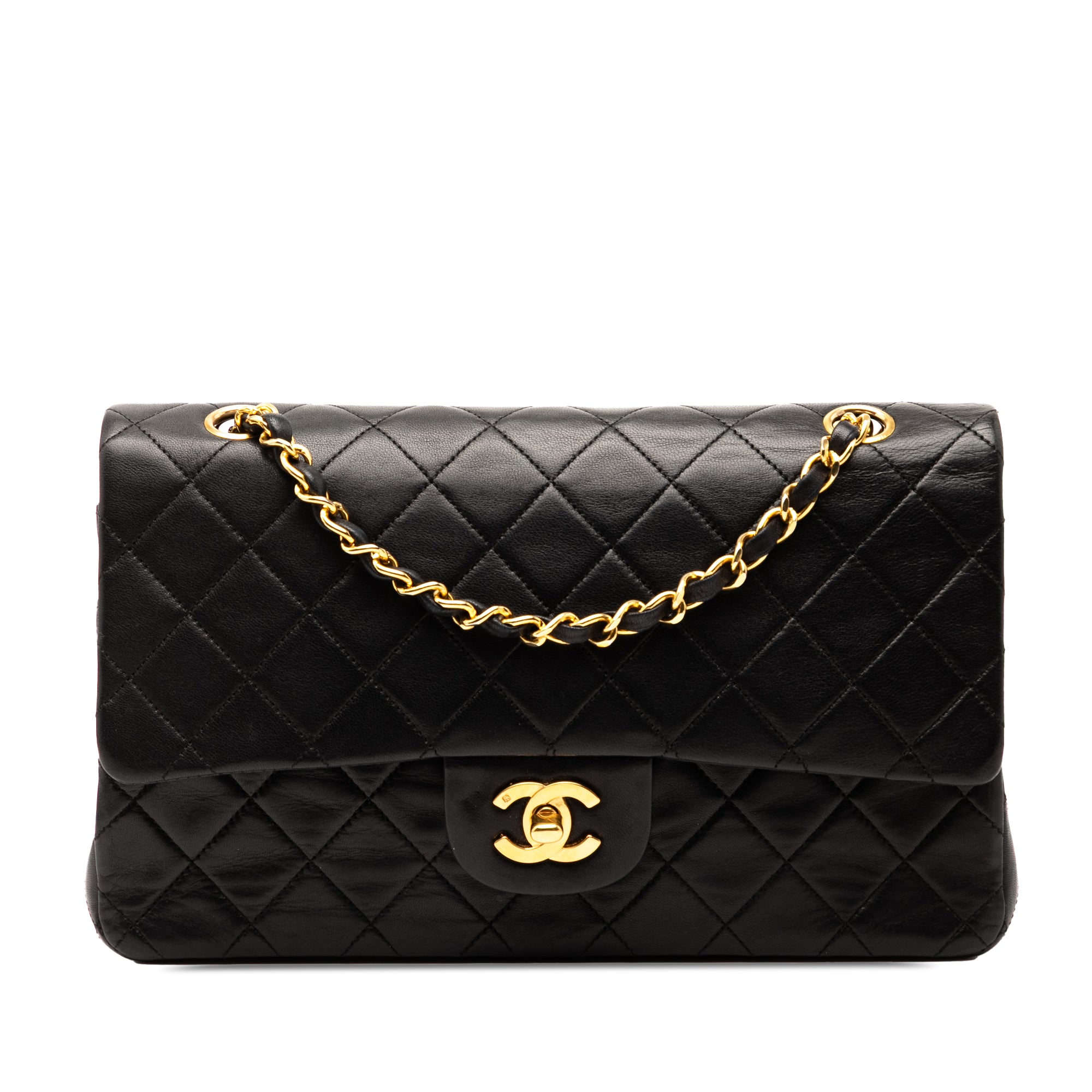 This shoulder bag features a quilted lambskin body, leather woven chain straps, double front flaps with interlocking Cs and a twist lock closure, an exterior back slip pocket, and interior zip and slip pockets. Inclusion: authenticity card. Retail Price: 10200.00
