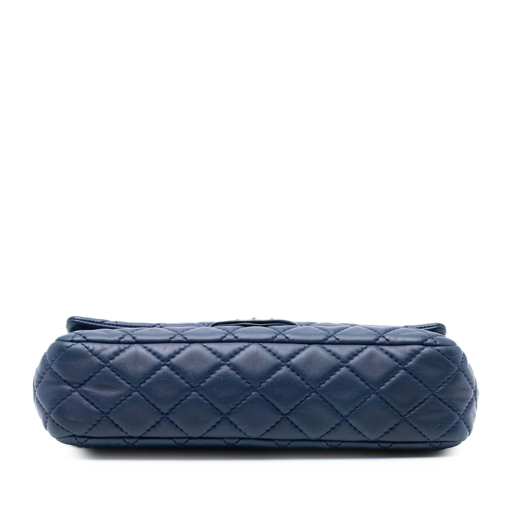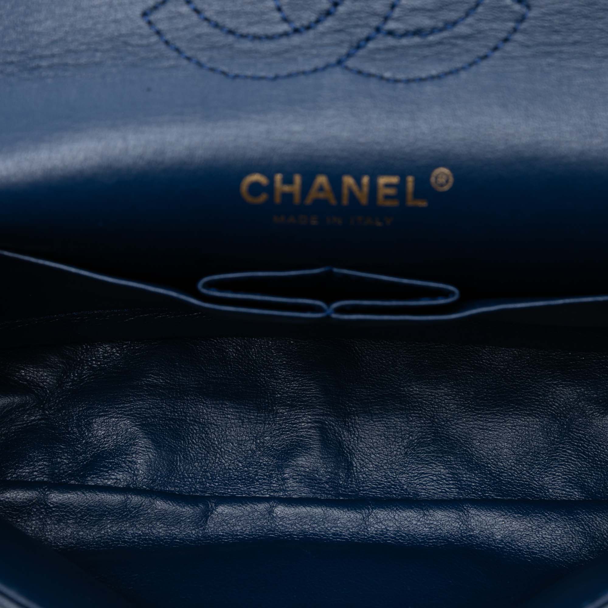This shoulder bag features a quilted lambskin body, leather woven chain straps, double front flaps with interlocking Cs and a twist lock closure, an exterior back slip pocket, and interior zip and slip pockets. Retail Price: 8800.00