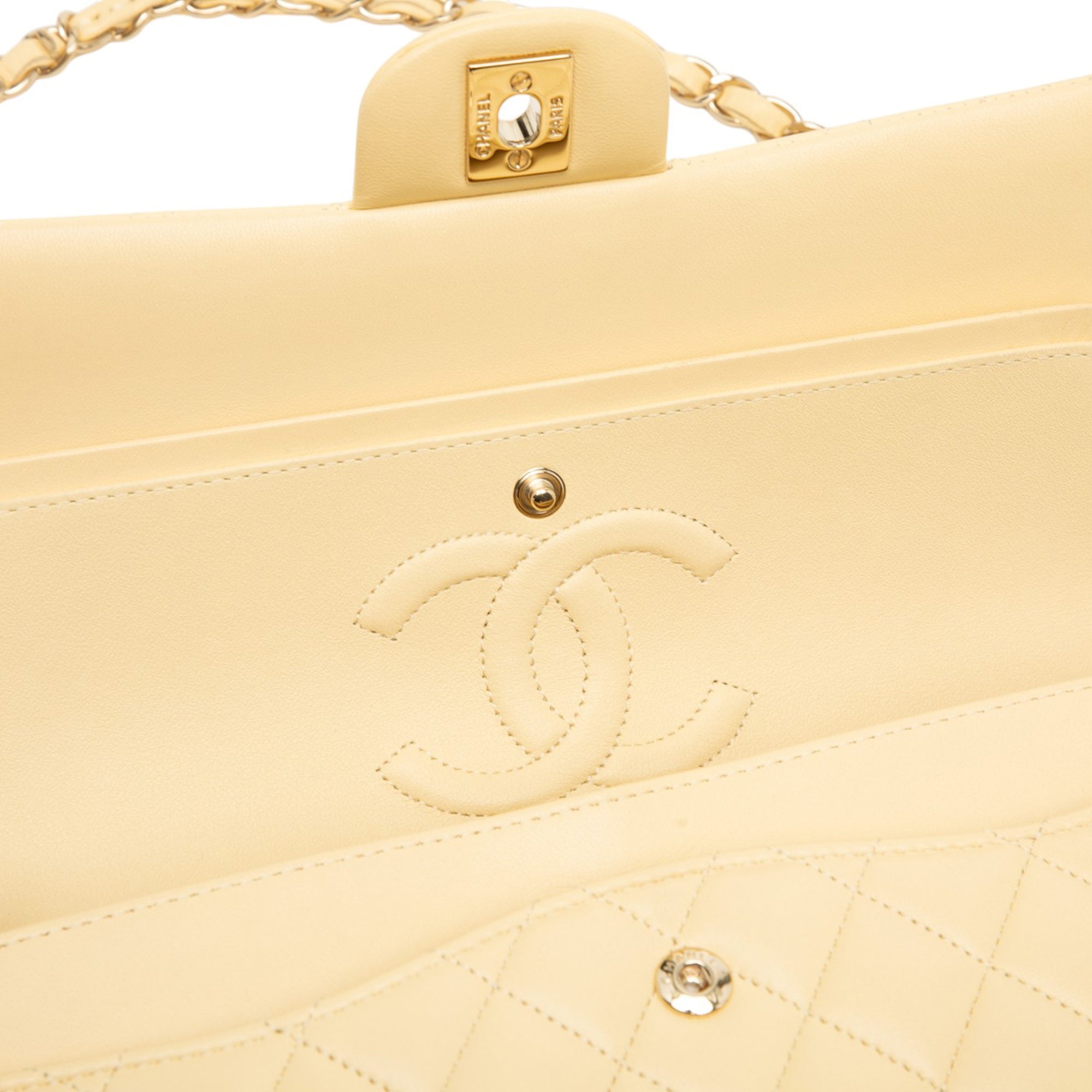 This shoulder bag features a quilted lambskin leather body, leather-woven chain straps, double front flaps with CC turn lock closure, an exterior back slip pocket, and interior zip and slip pockets. Inclusion: Dust bag. Retail Price: 10800.00