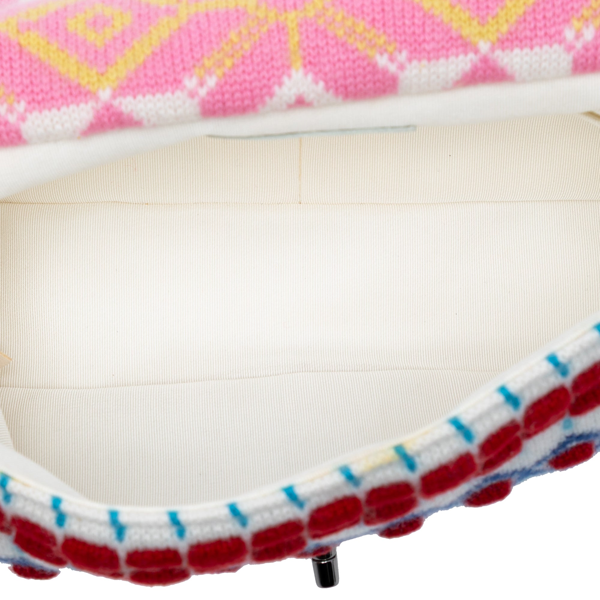 This Flap Bag features a cashmere wool knit body, leather woven chain link straps, a front flap with a CC turn-lock closure, and interior slip pockets. Inclusion: authenticity card. Retail Price: 4500.00