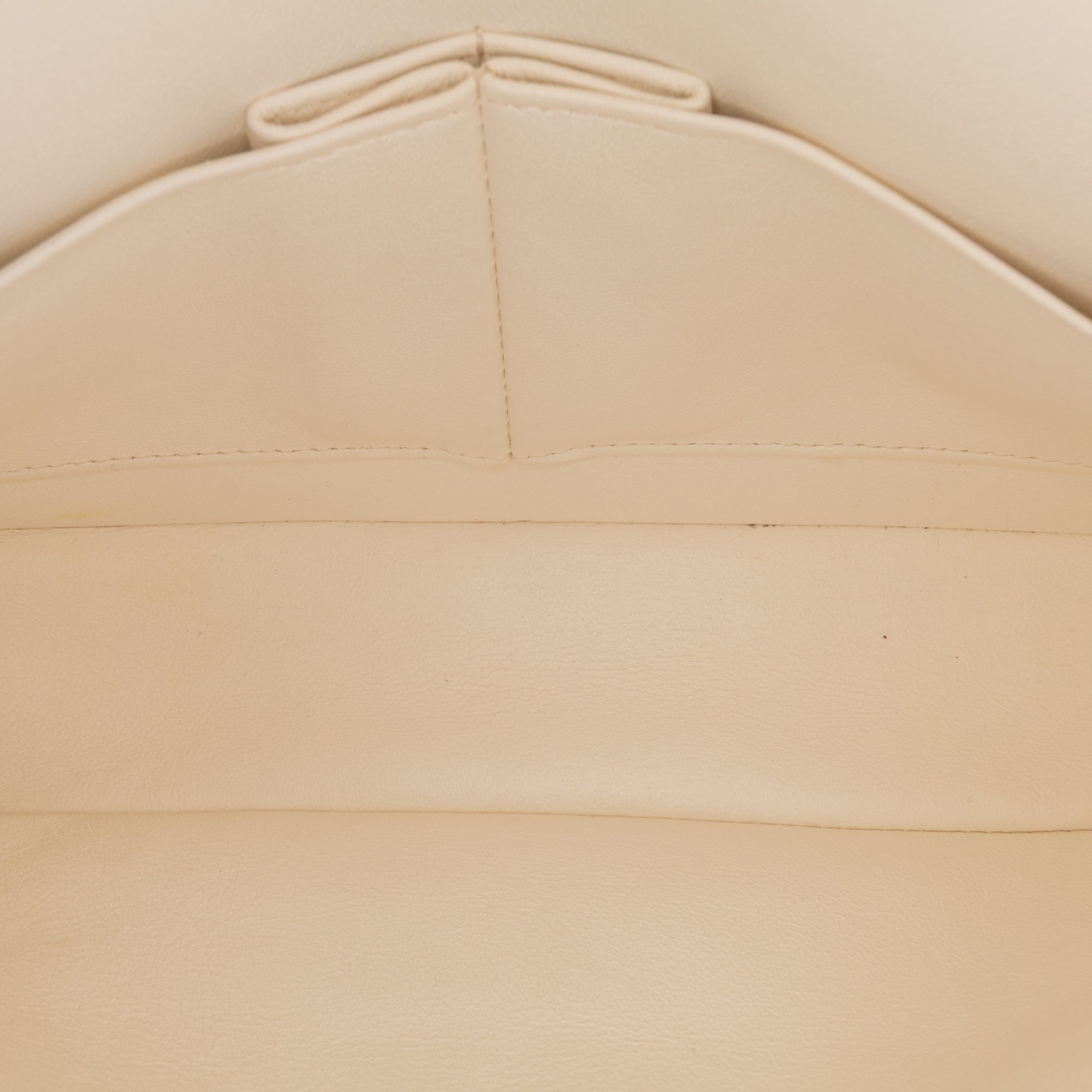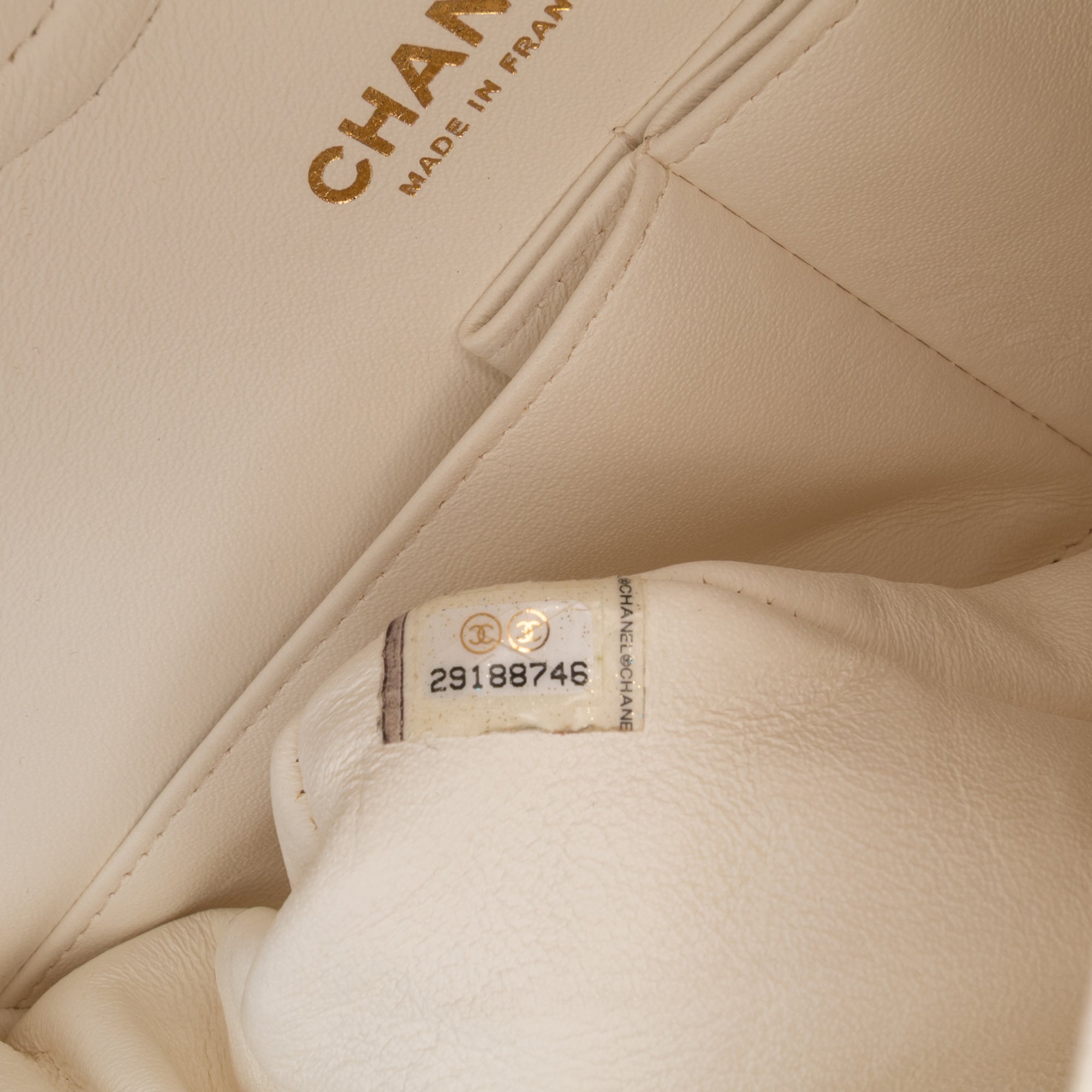 The Classic Flap Bag features a tweed body, leather woven chain link shoulder straps, double front flaps with CC turn-lock closure, an exterior back slip pocket, and interior zip and slip pockets. Inclusion: authenticity card. Retail Price: 8300.00